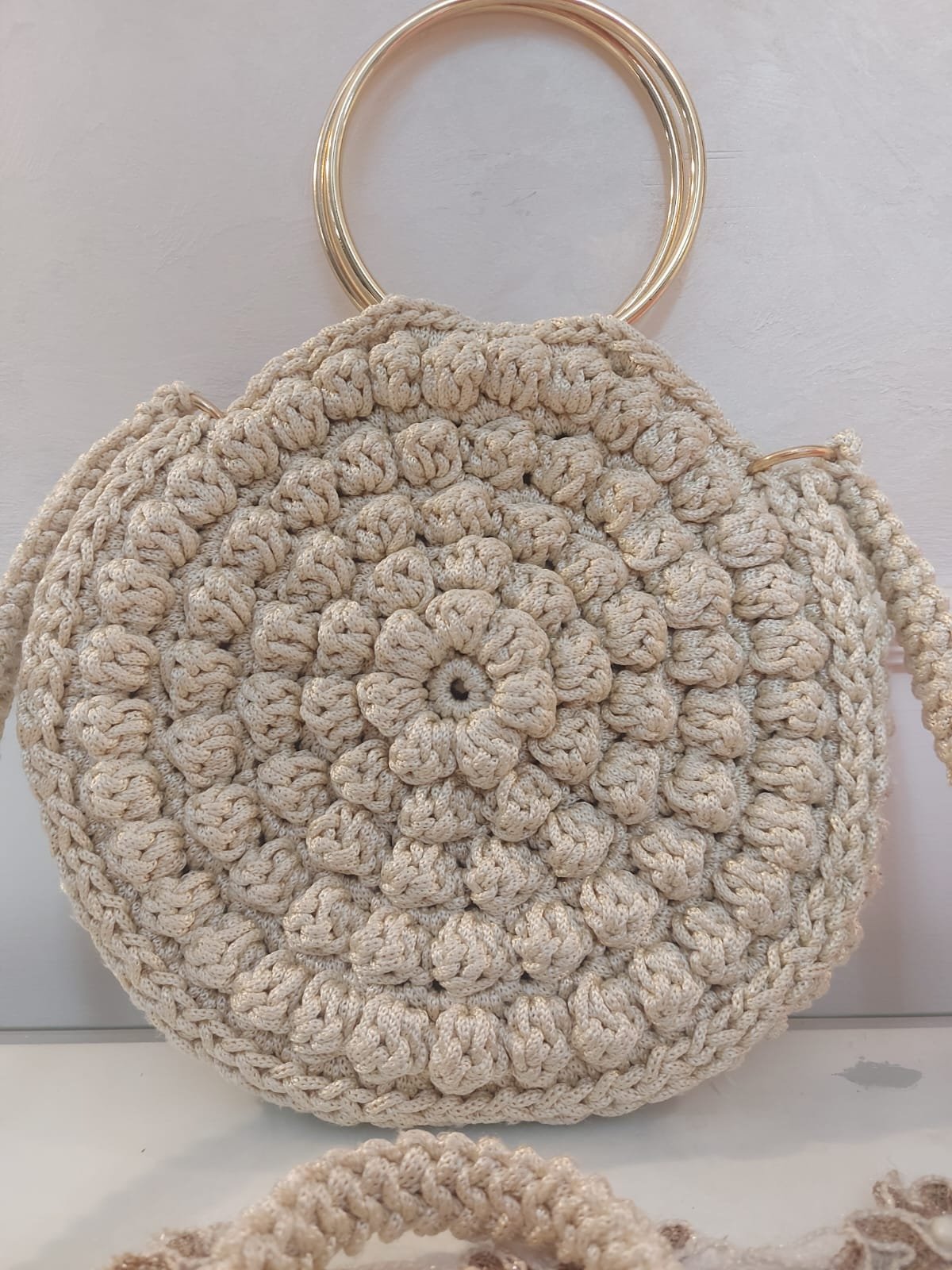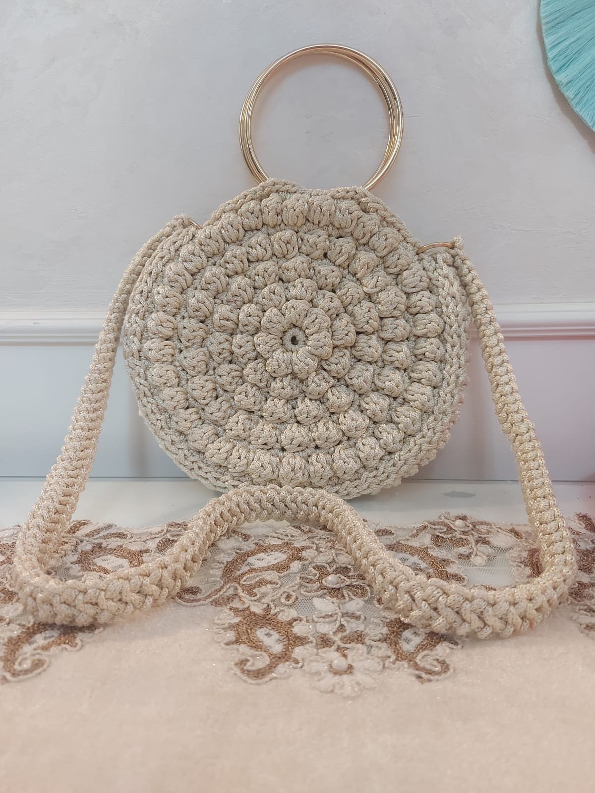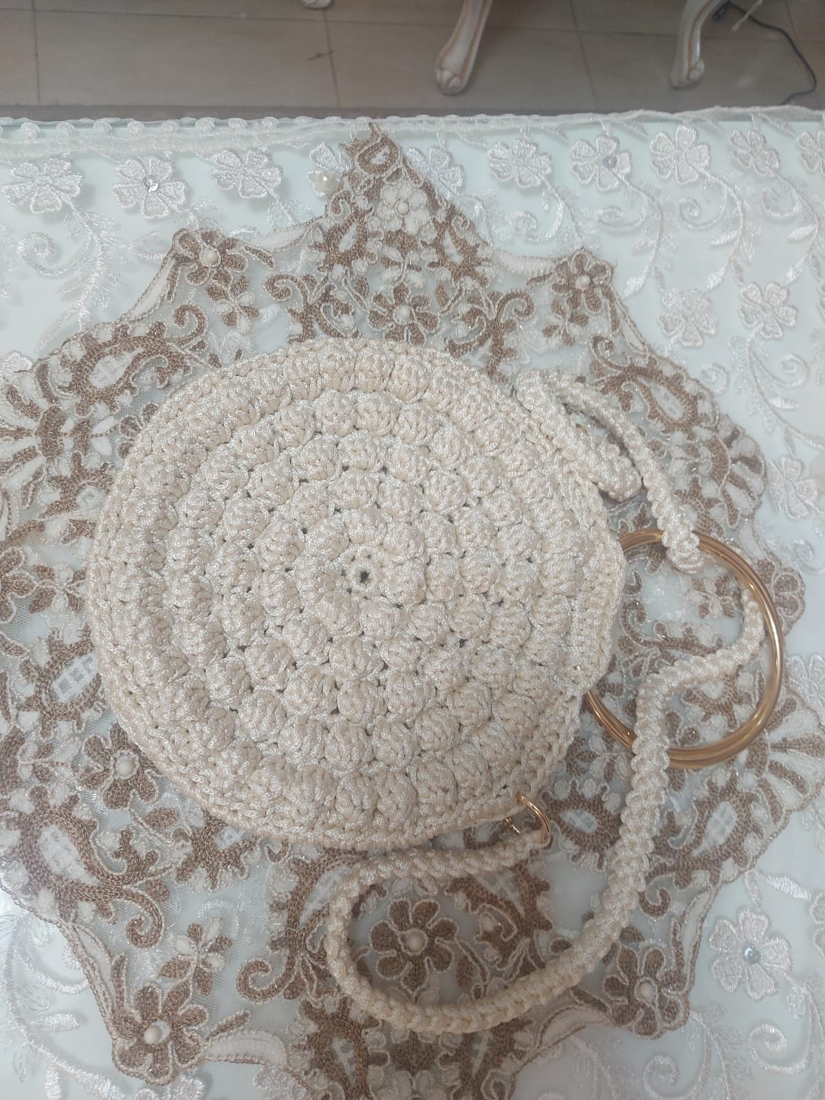 شنطه كروشيه بغرزه الفشار الجميله بيد معدن ومبطه بالكامل