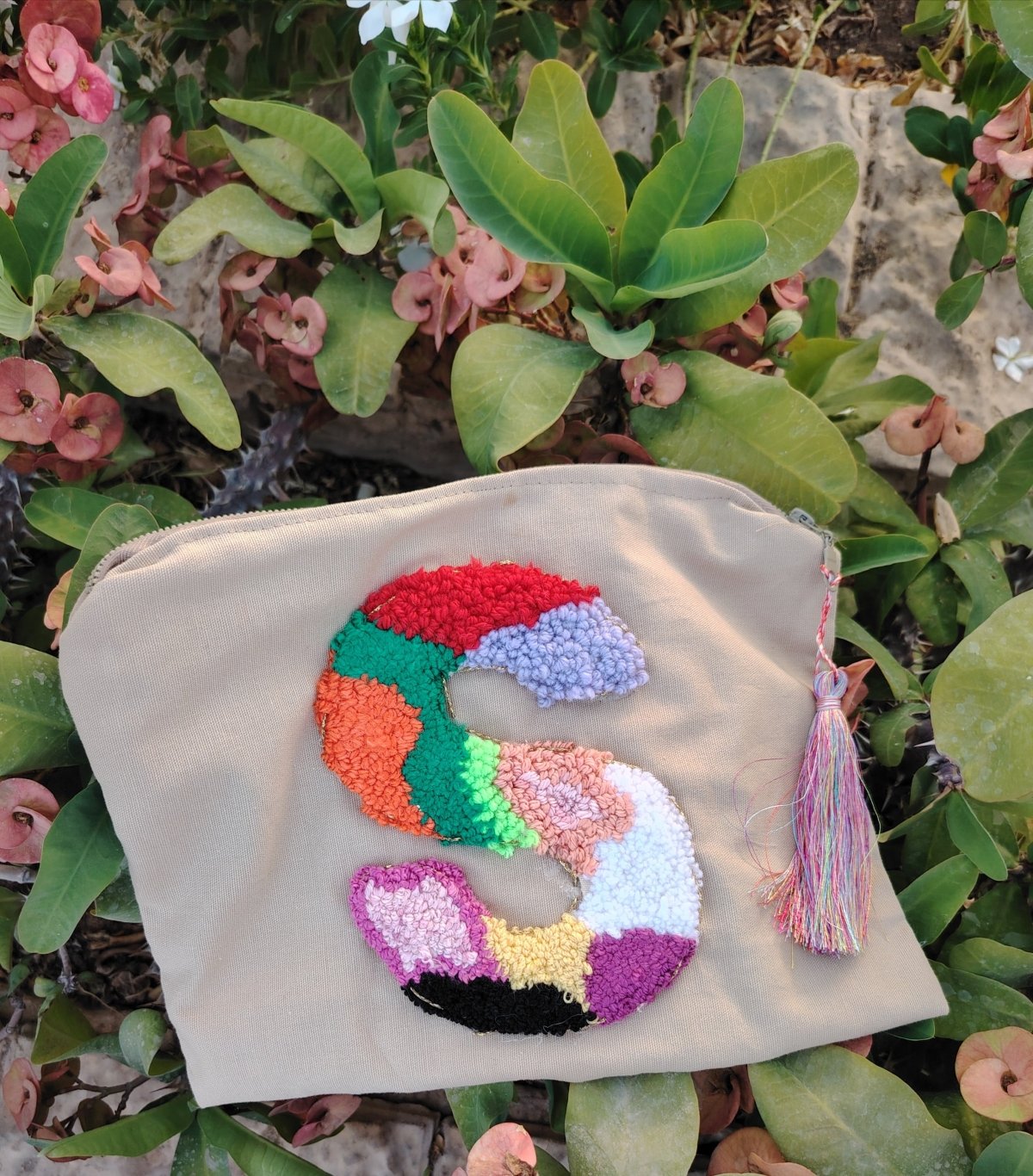 كلاتش هاند ميد تطريز يدوى تقدري تطلبي اى حرف يوجد سوستة و مبطنة من الداخل و يوجد جيب داخلى المقاس٢٥ *١٨ سم