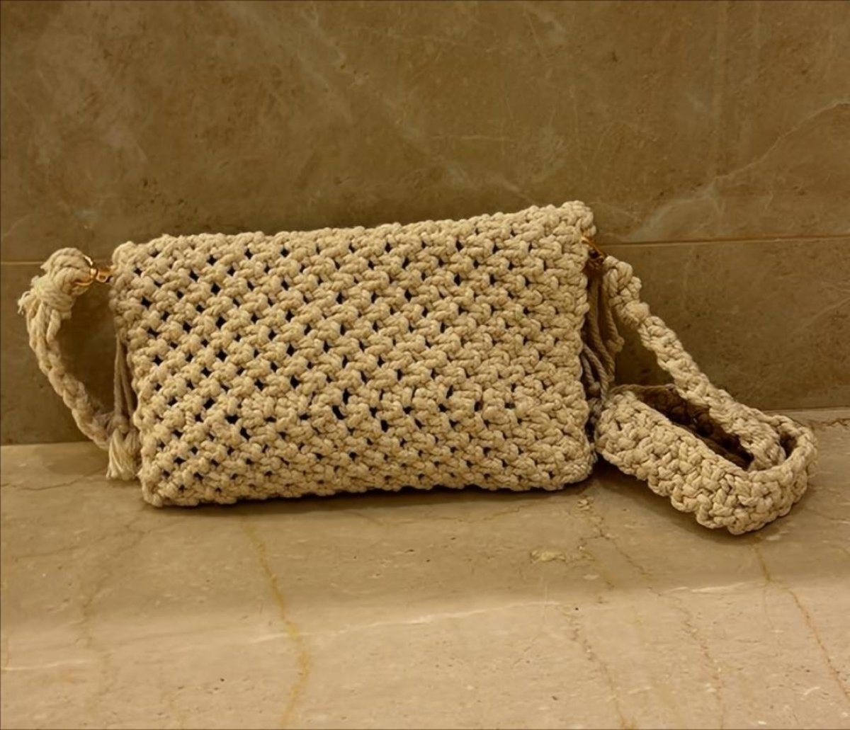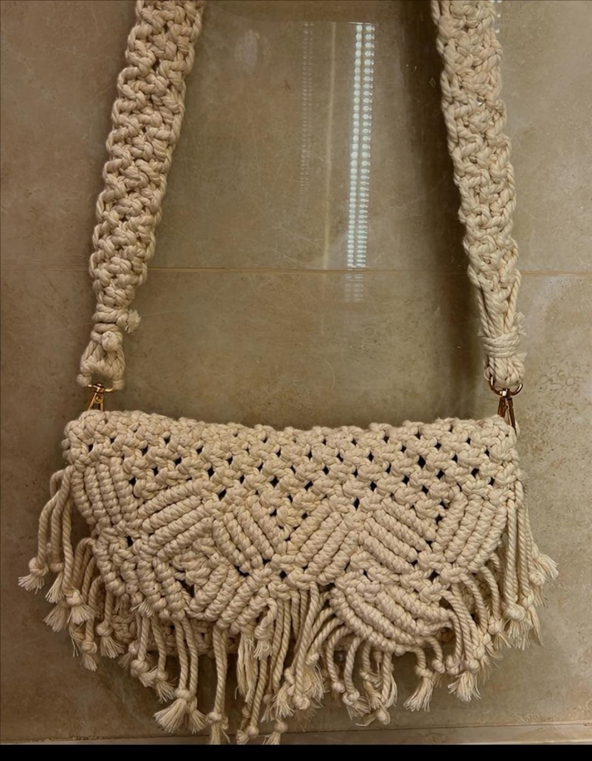 حقيبة يد مكرميه يدوية الصنع حقيبة أنيقة مصنوعة يدويا من خيوط المكرميه القطنية عالية الجودة، بتصميم متقن يجمع بين الطابع البوهيمي واللمسة العصرية. تتميز الحقيبة بنقشات زخرفية دقيقة وحواف مزينة بشرابات متناسقة تضيف لمسة حيوية وجذابة. مزودة بحمالة كتف عريضة مريحة تتيح سهولة الحمل والاستخدام اليومي، مما يجعلها مثالية للمناسبات غير الرسمية، والنزهات، والإطلالات الصيفية الشيك. الخامة: خيوط ماكرميه قطنية متينة. المقاس:٢٥سم عرض. ١٥سم ارتفاع اللون: بيج طبيعي. متاح تغيير اللون حسب رغبه العميل التصميم: زخارف يدوية مع شرابات أنيقة. الاستخدام: حقيبة يد أو كتف عملية وعصرية. قطعة فنية عملية تضيف لمسة أناقة طبيعية لكل إطلالة.