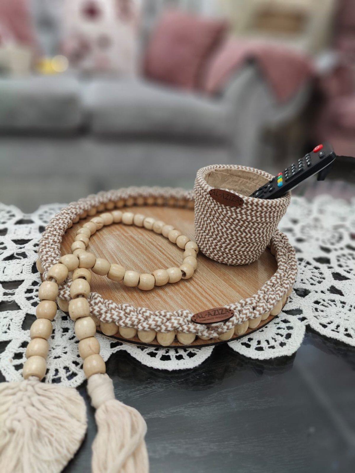 صينية خشبية يدوية بلمسة تراثية أنيقة أضف لمسة من الدفء والجمال إلى ديكور منزلك مع هذه الصينية الخشبية الرائعة. ✨ مصنوعة بعناية من الخشب الطبيعي عالي الجودة ✨ محاطة بحبل قطني سميك مزين بكُرات خشبية تمنحها طابعًا تقليديًا فاخرًا ✨ متعددة الاستخدامات – مثالية لتقديم الضيافة أو لتنسيق الزينة على الطاولات ✨ تصميم مميز يناسب الطراز العصري والشرقي 📏 الحجم: مناسب للطاولات المتوسطة والصغيرة 30 سم 🎁 قطعة ديكور رائعة أو هدية مميزة