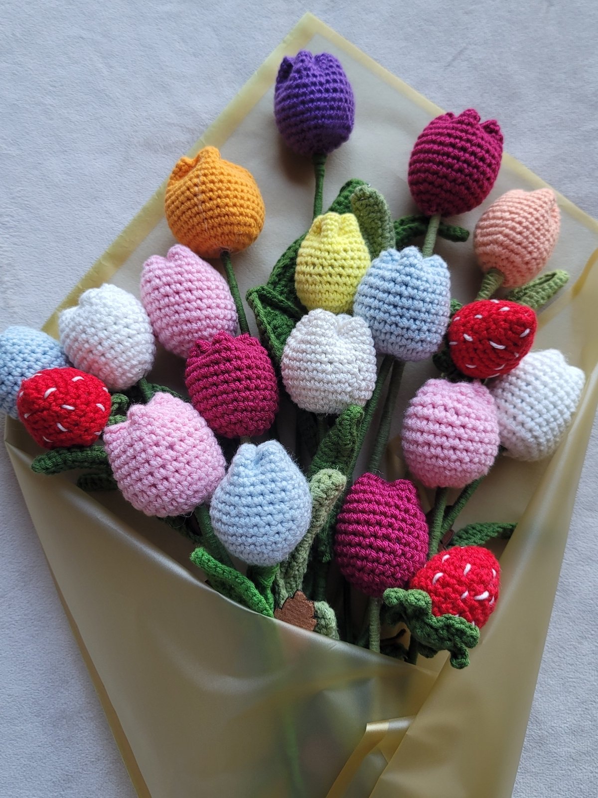 وردة رومانسية وناعمة، بألوانها المبهجة تضيف 🌷 جمال وبساطة لأي مناسبة. مثالية للهدايا أو تزيين البيت. طولها حوالى ٣٥سم. كل الزهور الكروشية متاحة بمختلف الألوان والأطوال، وممكن تتعمل منفردة أو في بوكيهات مميزة تناسب كل الأذواق والمناسبات.