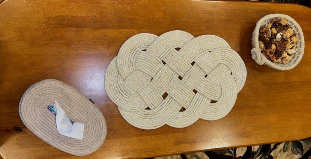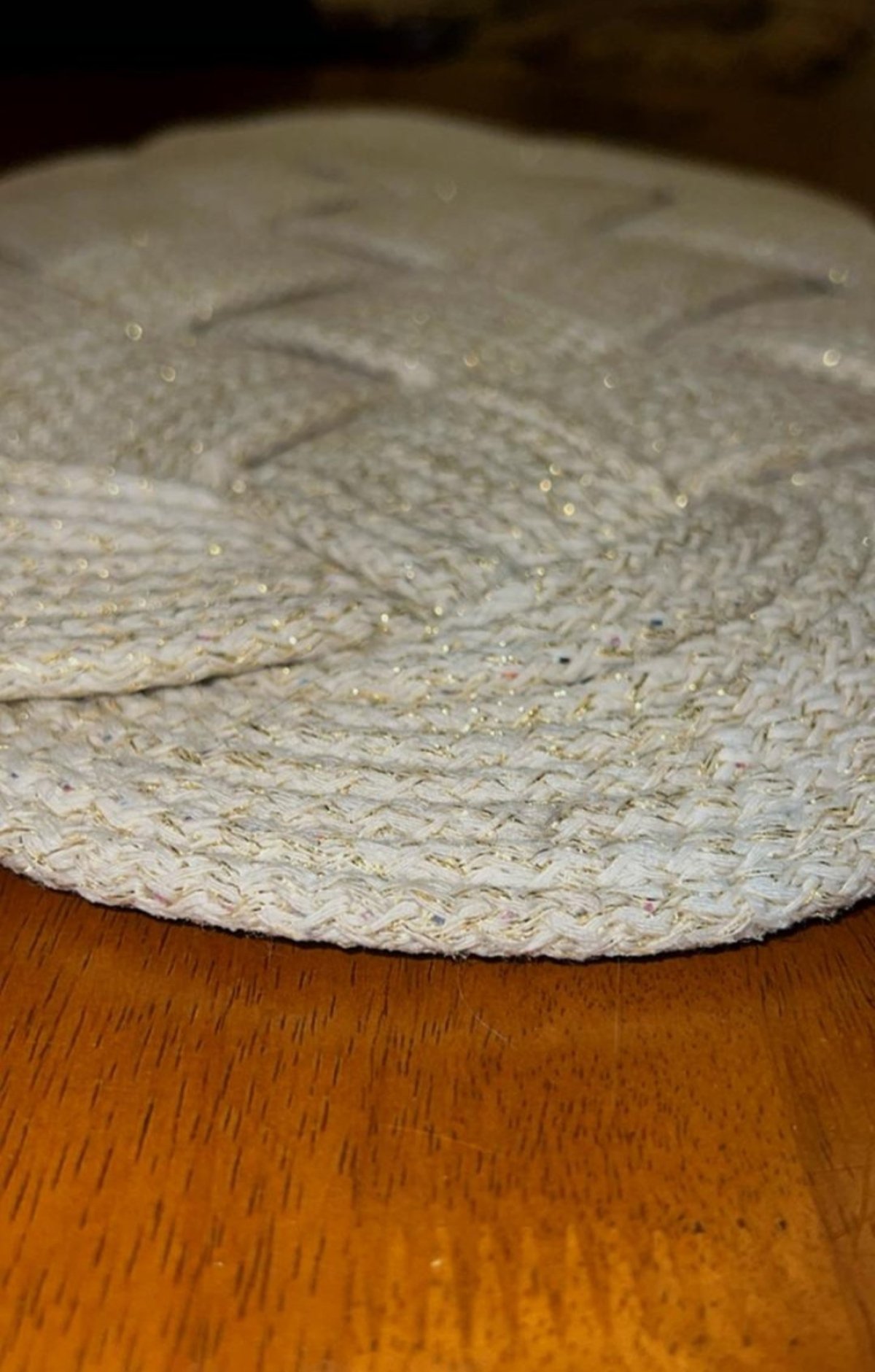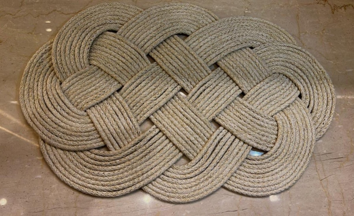 رانر أو مفرش يتميّز بتصميم يدوي أنيق مصنوع من خيوط المكرميه بلون بيج طبيعي مطعم بالسيرما. يتمحور شكله حول عقدة زخرفية متشابكة بأسلوب يشبه العقد البحرية أو المكرمية، ما يمنحه مظهرًا فنيًا متداخلًا يضيف لمسة من الأصالة والدفء للطاولة. خامته السميكة تمنحه ثباتًا وحماية لسطح الطاولة وهو مناسب للاستخدام اليومي أو كقطعة ديكور مميزة للمناسبات. المقاس 50سم * 35سم لمسه ديكوريه مميزه لبيت مميز متاح تعديل اللون والمقاس حسب رغبه العميل والاتفاق معنا