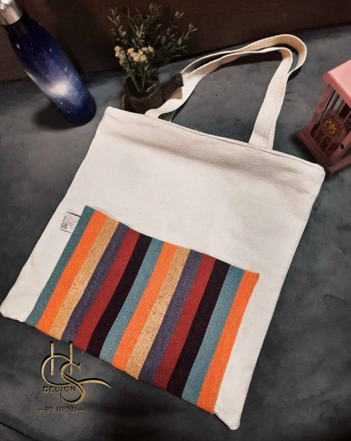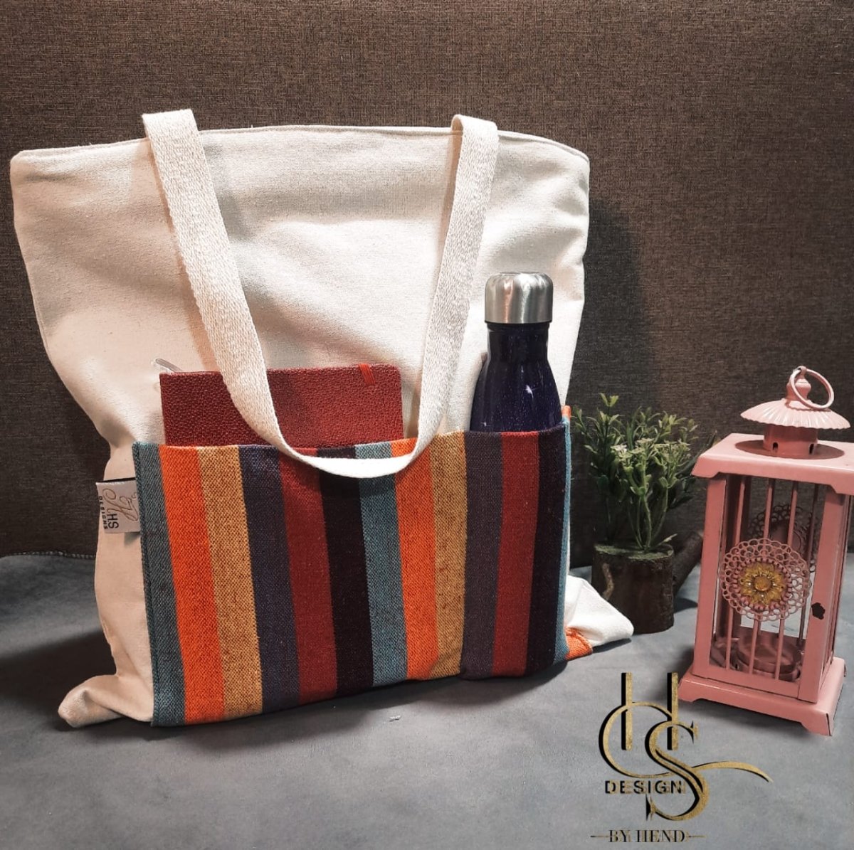 شنطة قماش مقاس ٤٠×٤٢ ، مبنى من الداخل بسوسته، ٢ جيب خارجى