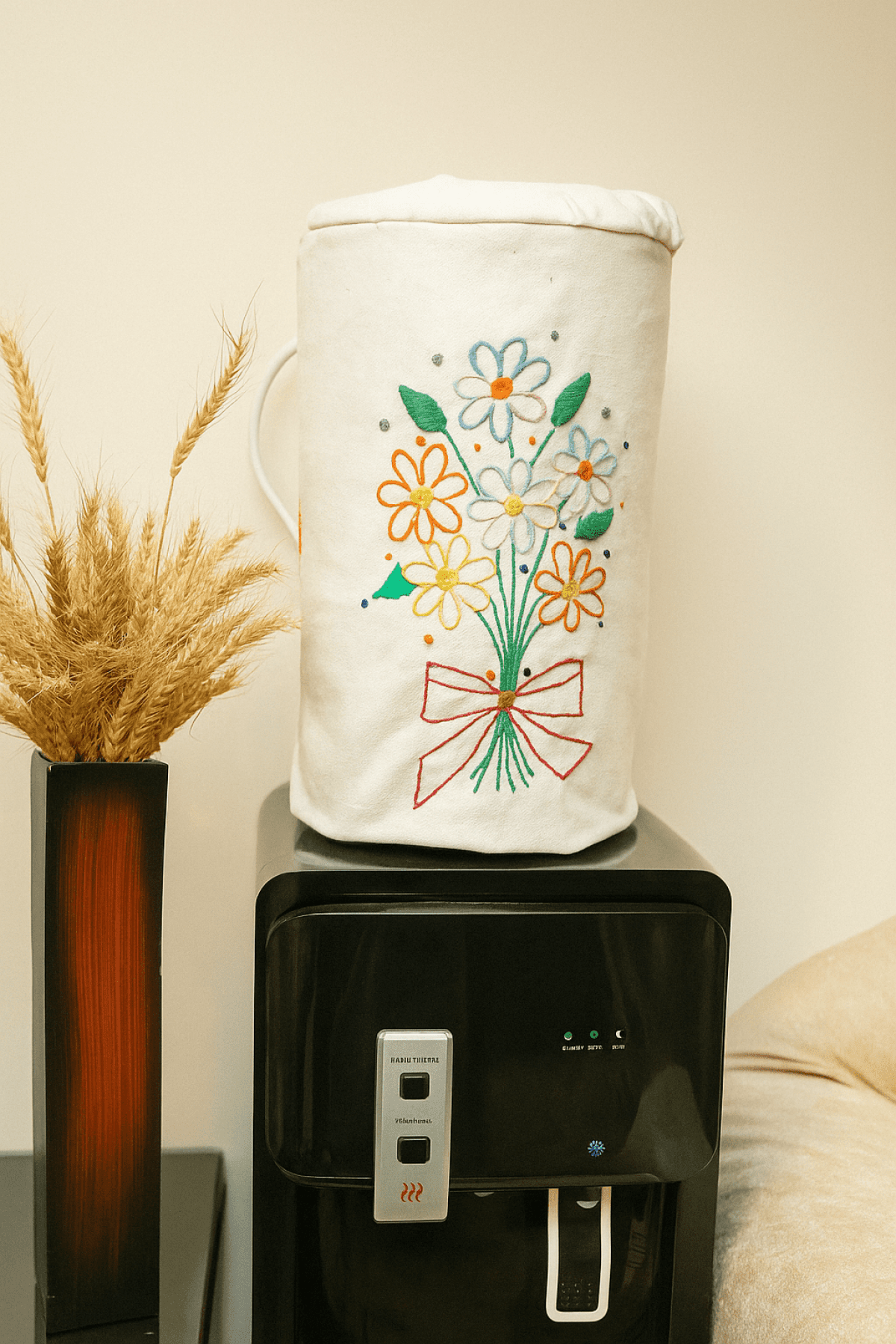 غطاء زجاجة المبرد مصنوع من قماش الدك و عليه تطريز يدوى