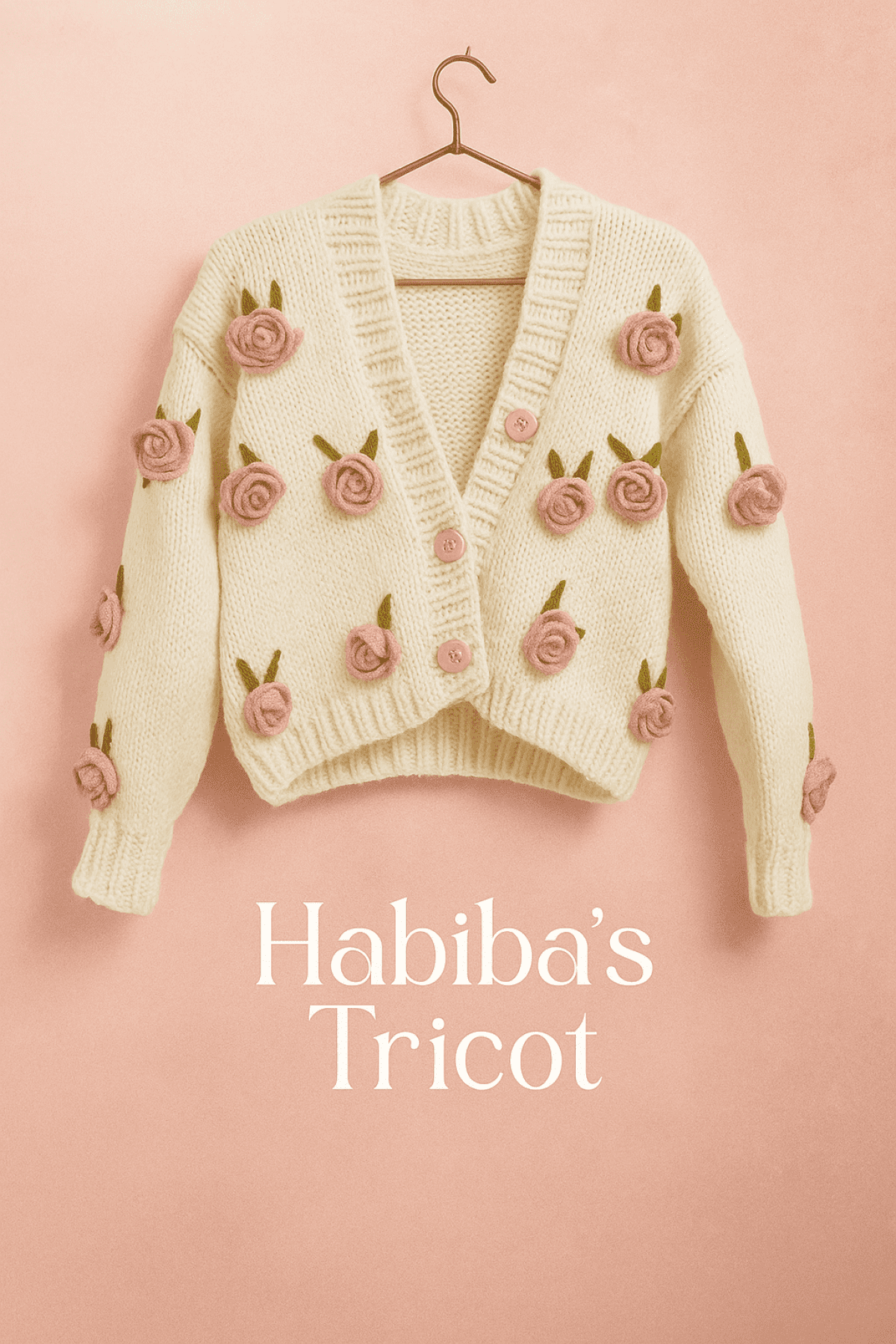 Knitting hand made cardigan with flowers. Photo Size ,/ medium, large Customized any colour and size