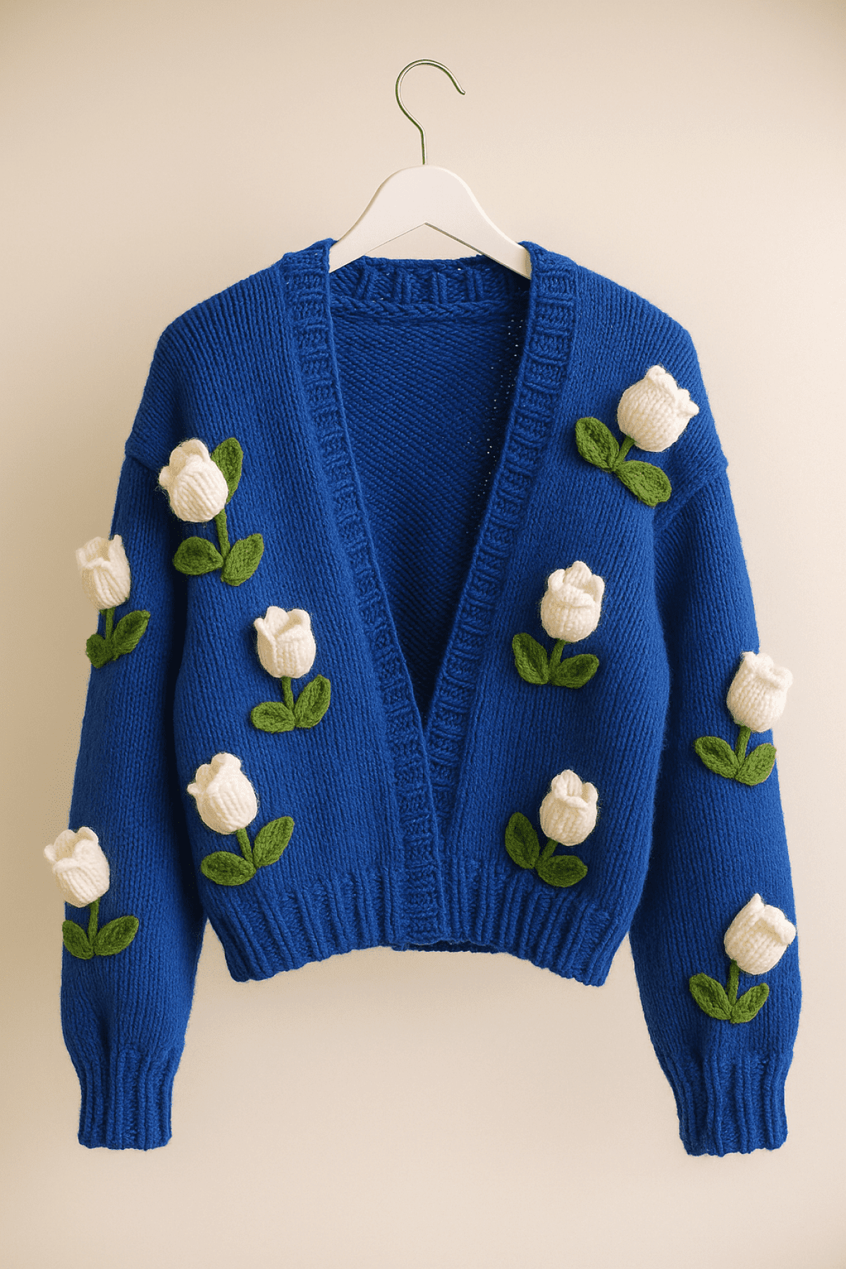 Knitting Tricot cardigan With flowers Photo size/ medium, large Cousmized to any colour wanted