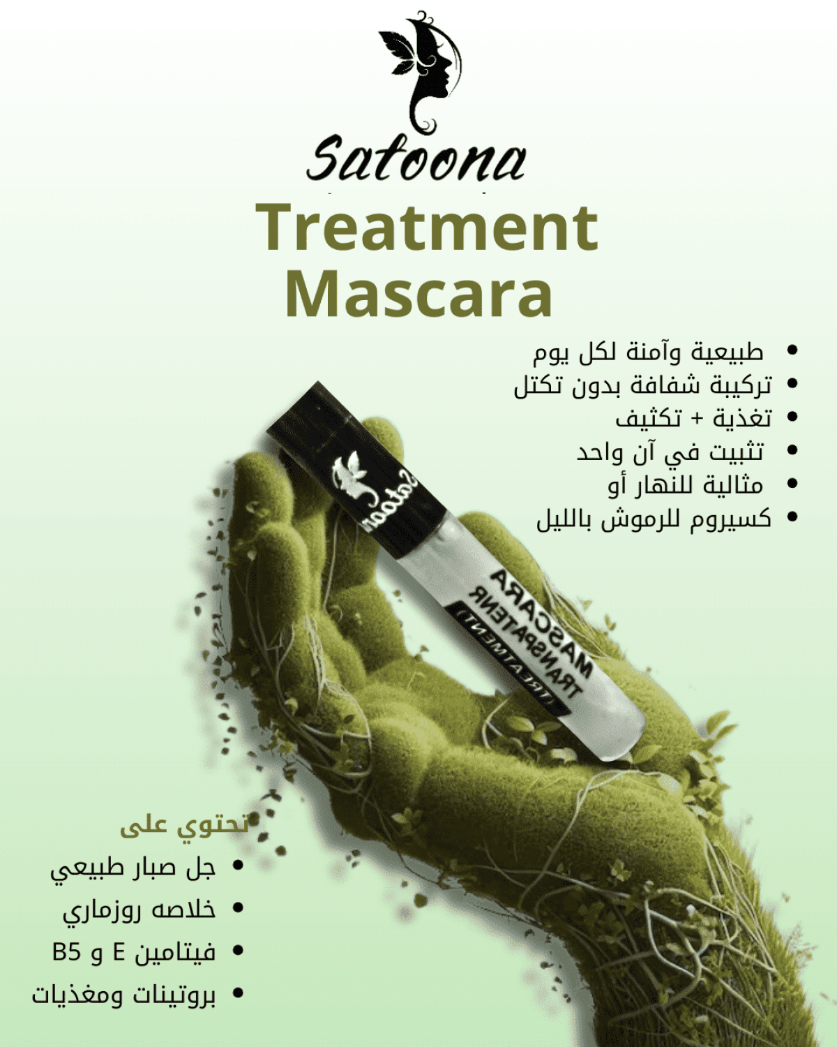 ماسكارا شفافة علاجية من Satoona 🌿 رموشك محتاجة تغذية؟ جربي الماسكارا الشفافة العلاجية من Satoona – لمسة طبيعية وآمنة لكل يوم! 💧✨ ✅ تحتوي على: جل صبار طبيعي 🍃 خلاصه روزماري فيتامين E و B5 بروتينات ومغذيات طبيعية تركيبة شفافة بدون تكتل 💥 تغذية + تكثيف + تثبيت في آن واحد 💎 مثالية للنهار أو كسيروم للرموش بالليل