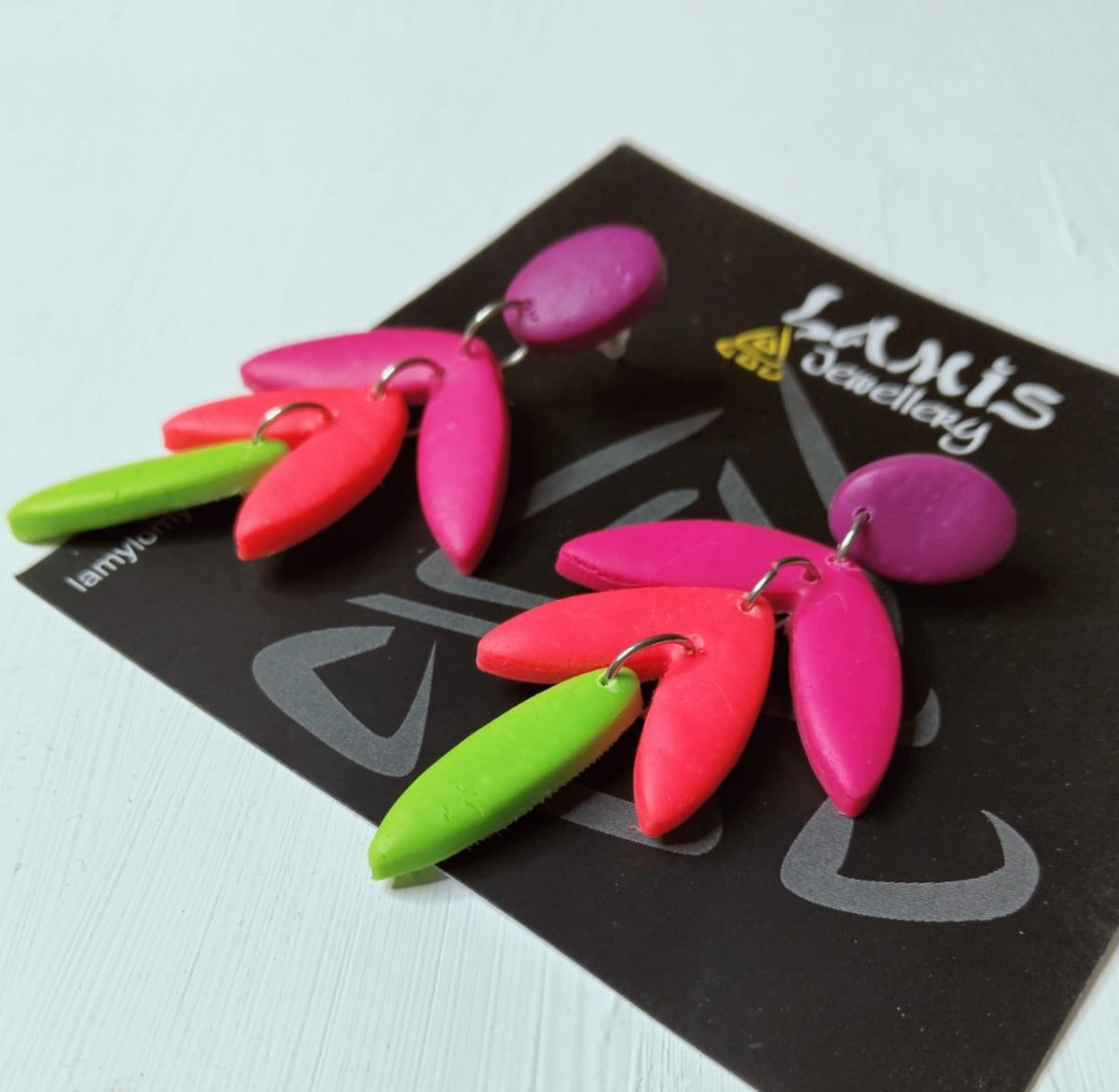 أقراط مميزة مصنوعة يدويًا من الصلصال الحراري بجودة عالية. خفيفة، مرحة، وتضيف لمسة فريدة لإطلالتك. ✨ خامات آمنة تصميم إبداعي هاند ميد بكل حب