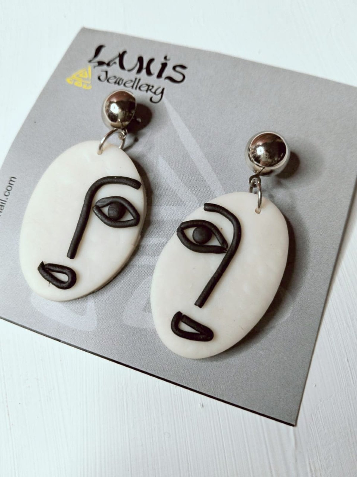 أقراط مميزة مصنوعة يدويًا من الصلصال الحراري بجودة عالية. خفيفة، مرحة، وتضيف لمسة فريدة لإطلالتك. ✨ خامات آمنة تصميم إبداعي هاند ميد بكل حب