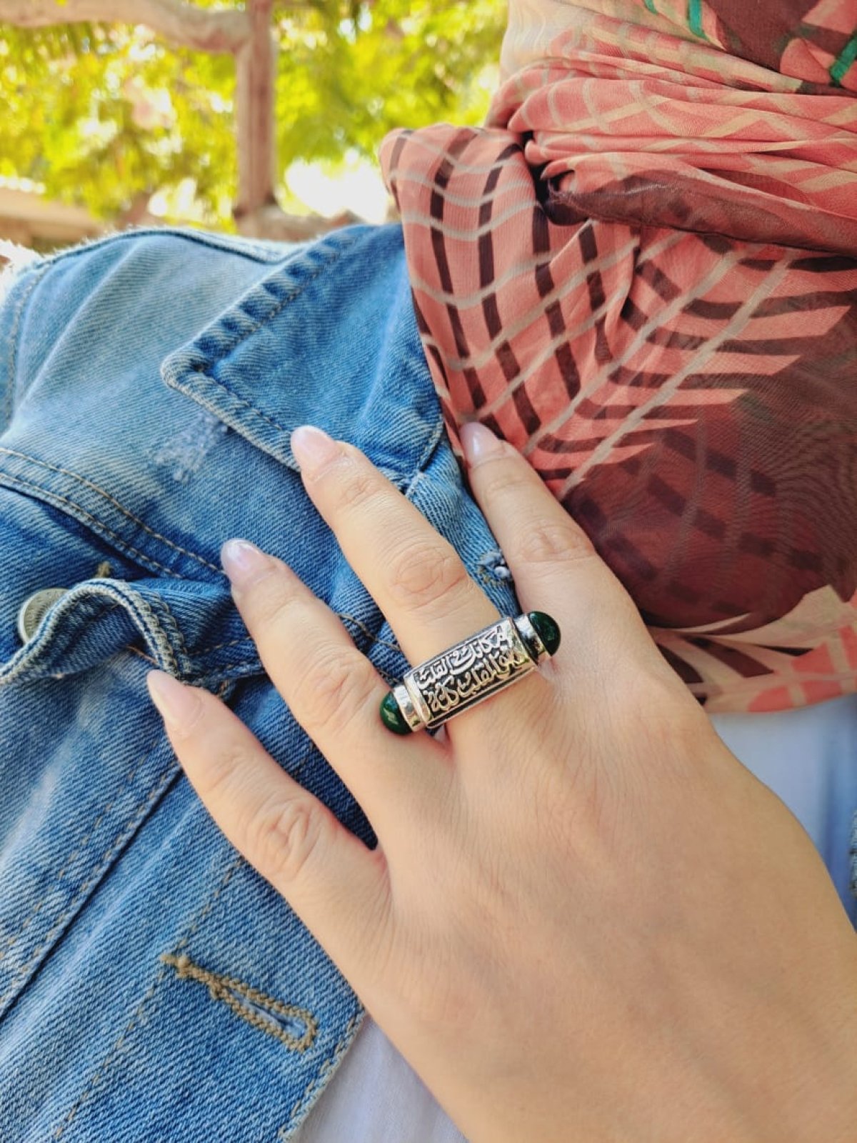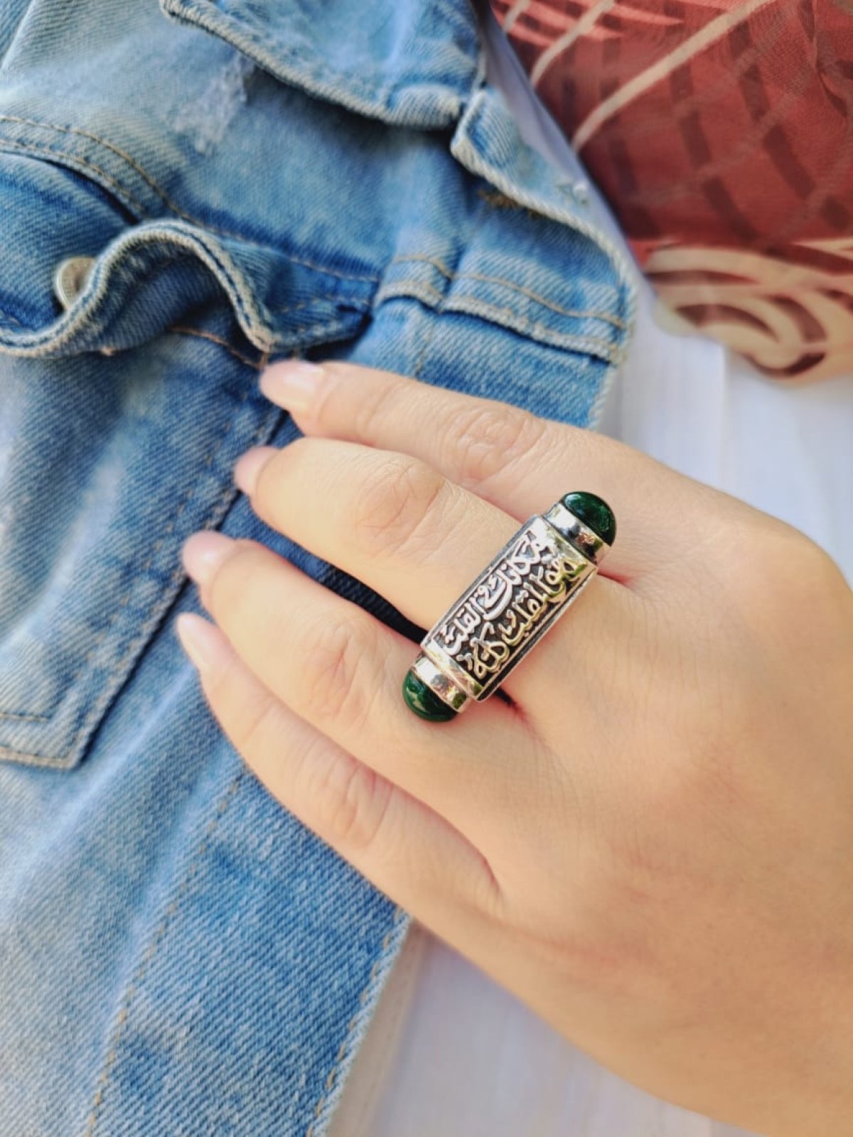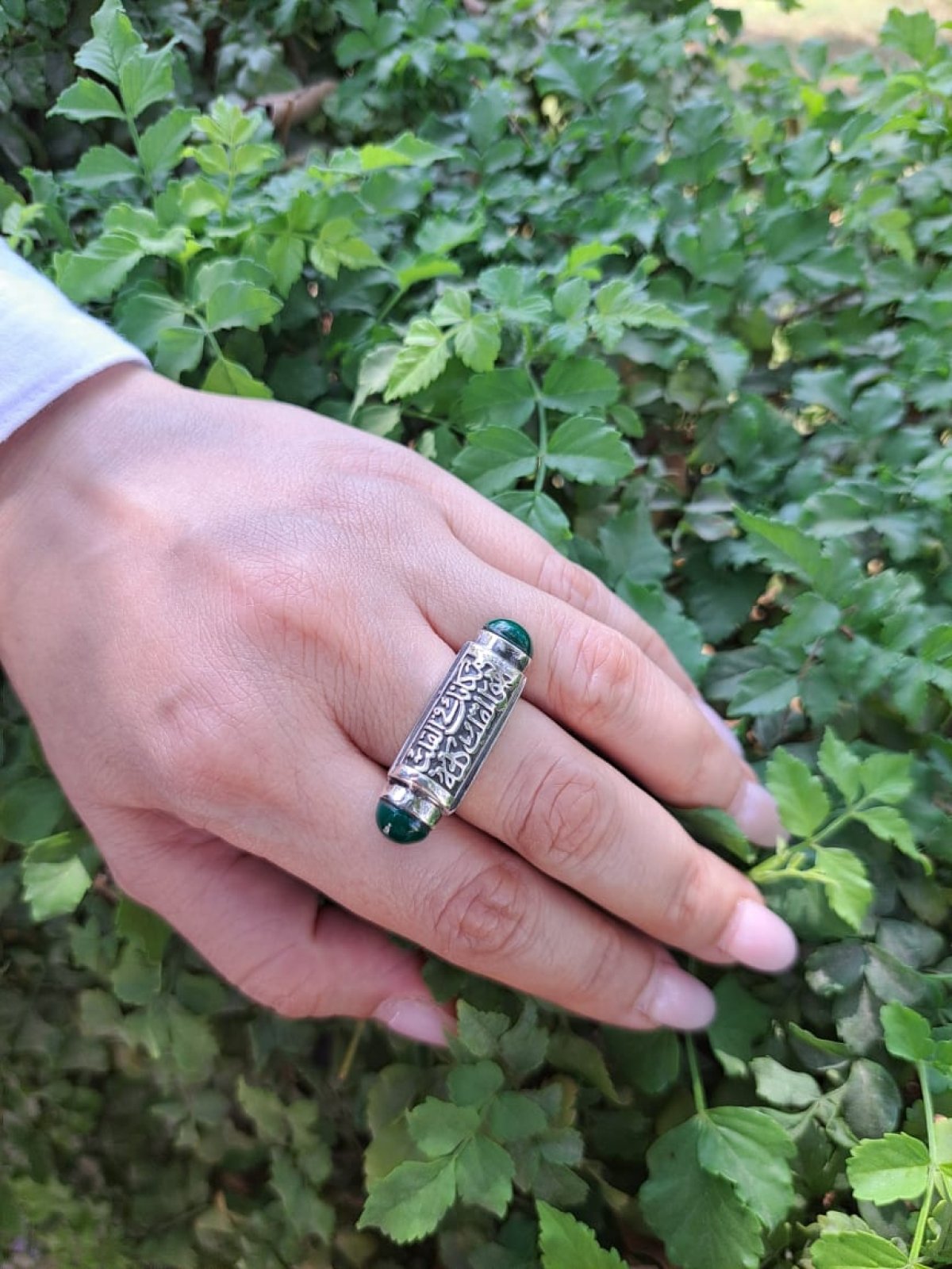 خاتم فضه عيار ٩٢٥ تصميم عربي مع حجر العقيقي الاخضر