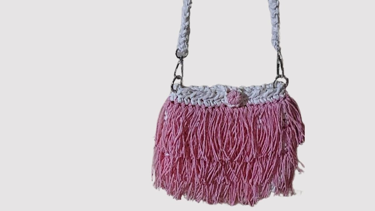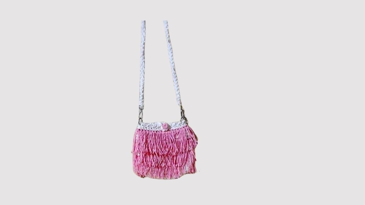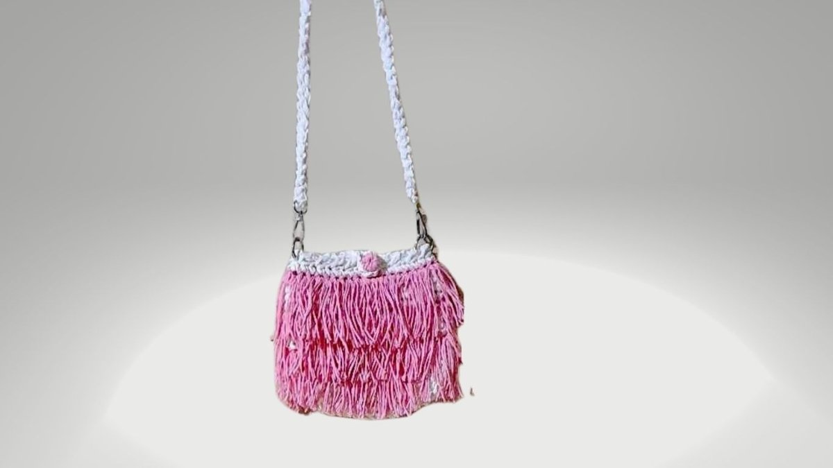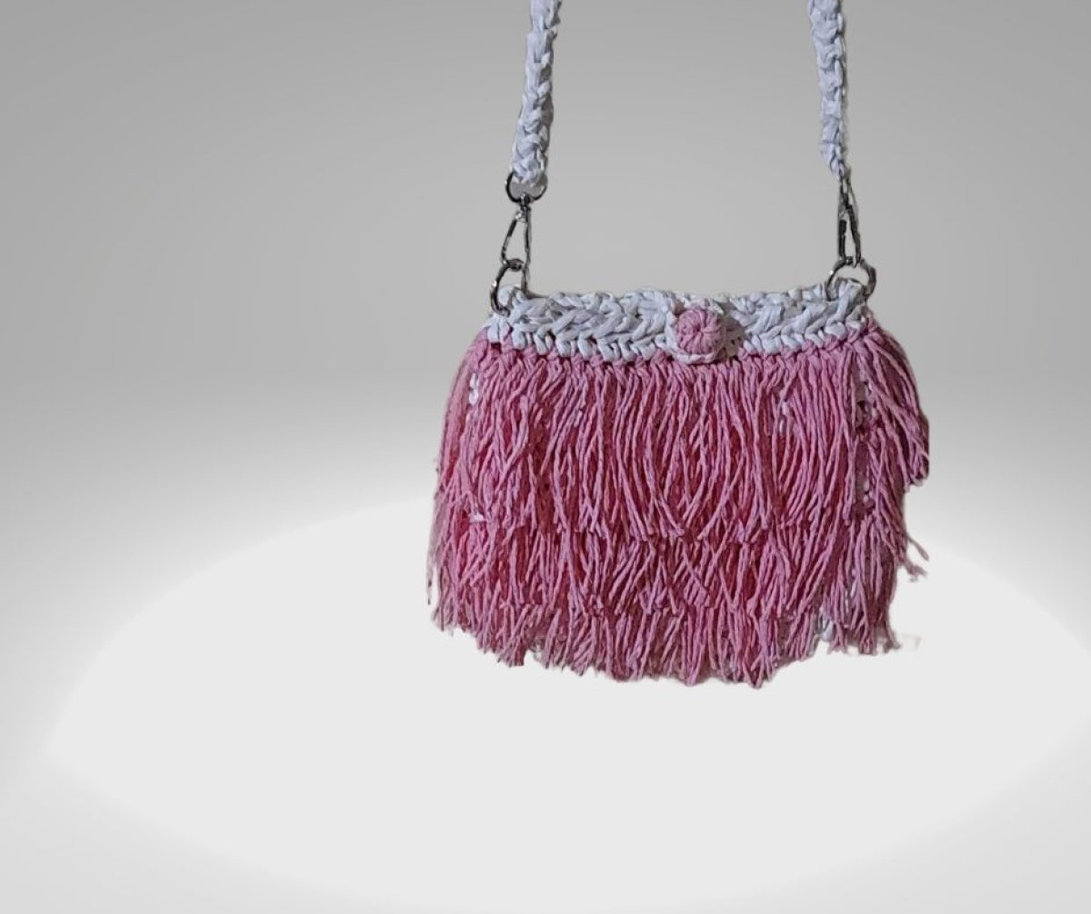 حقيبة كروس صغيرة بالكروشيه اللون: وردي، البعد 15 × 15 سم الحقيبة مصنوعة من خيط الرافيا