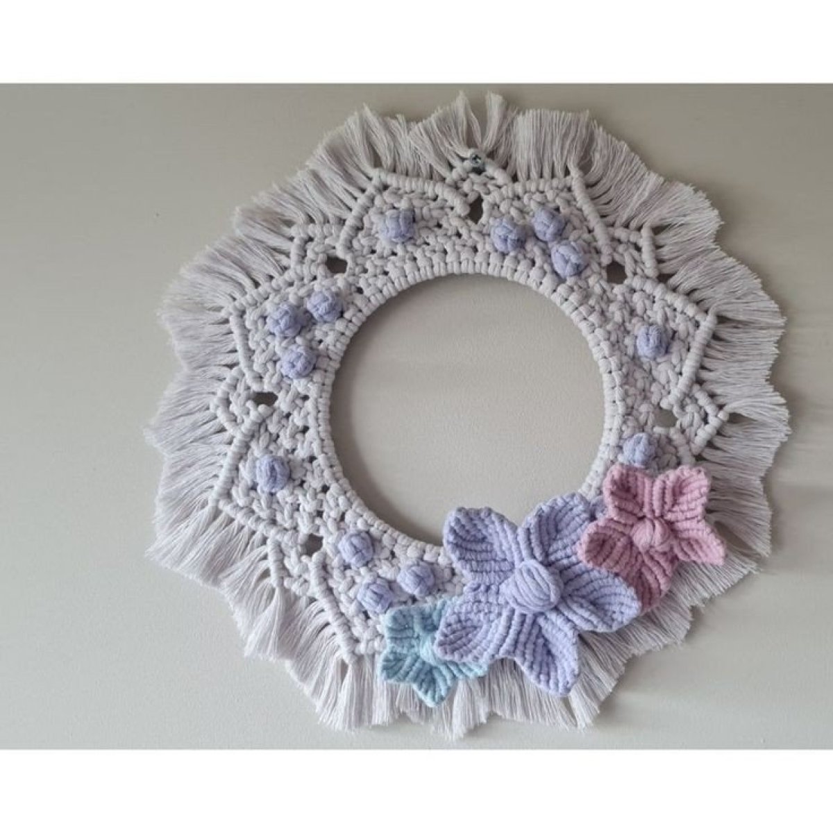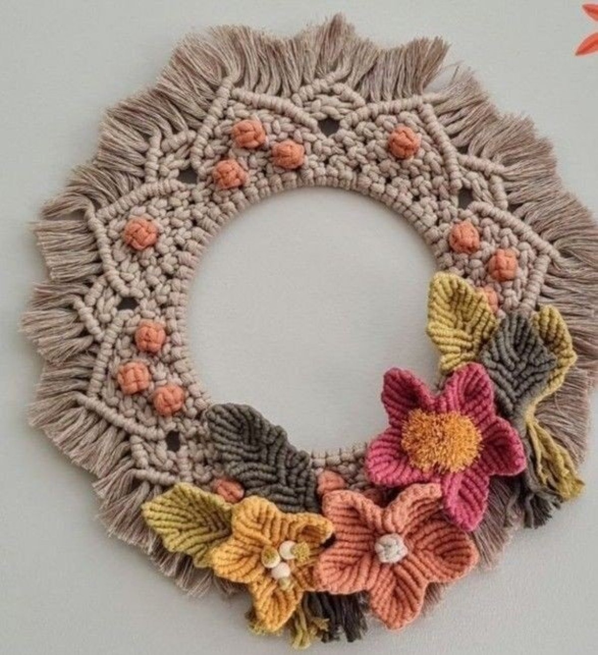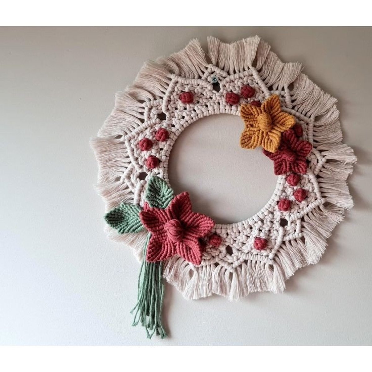 مراة حائط معلقة دائرية لديكور الشقة، مزينة باشكال من الورد و ورق شجر مصنوع يدويا مقاس 32/32 متوفر طلب المقاس المناسبة لك