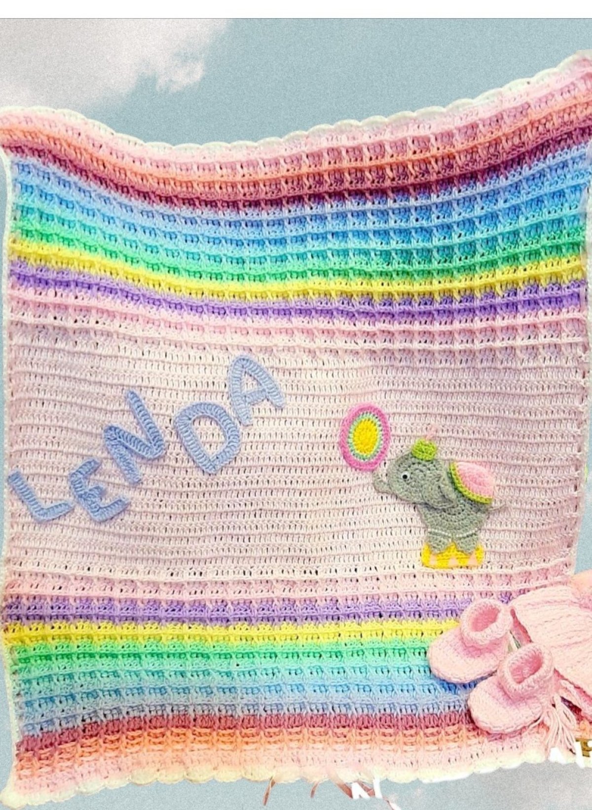 بطانية بيبي خيوط قطن ١٢٠ ×١٠٠ سم متاح كتابة اسم البيبي متاح تغيير مقاس البطانية