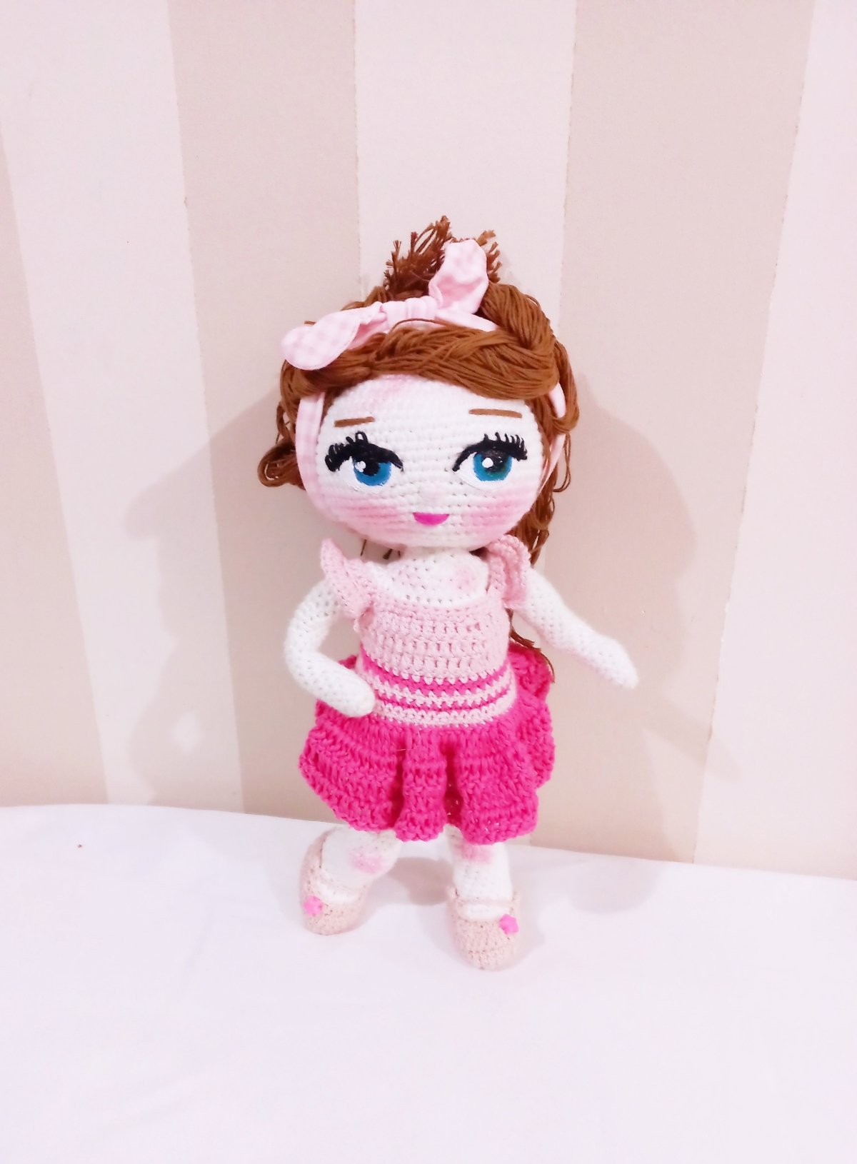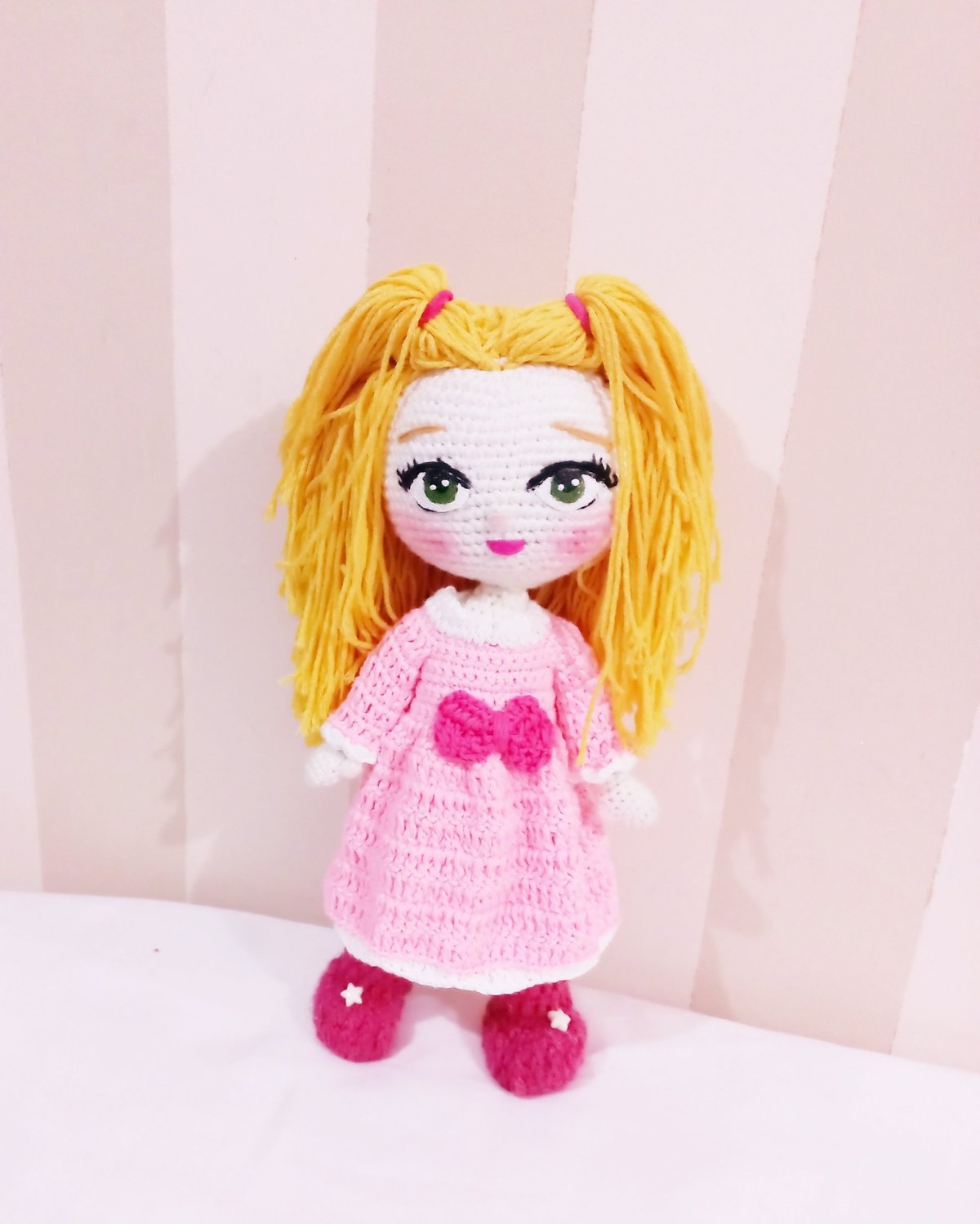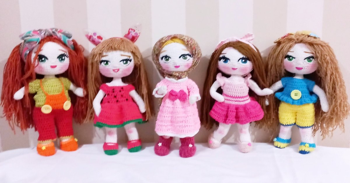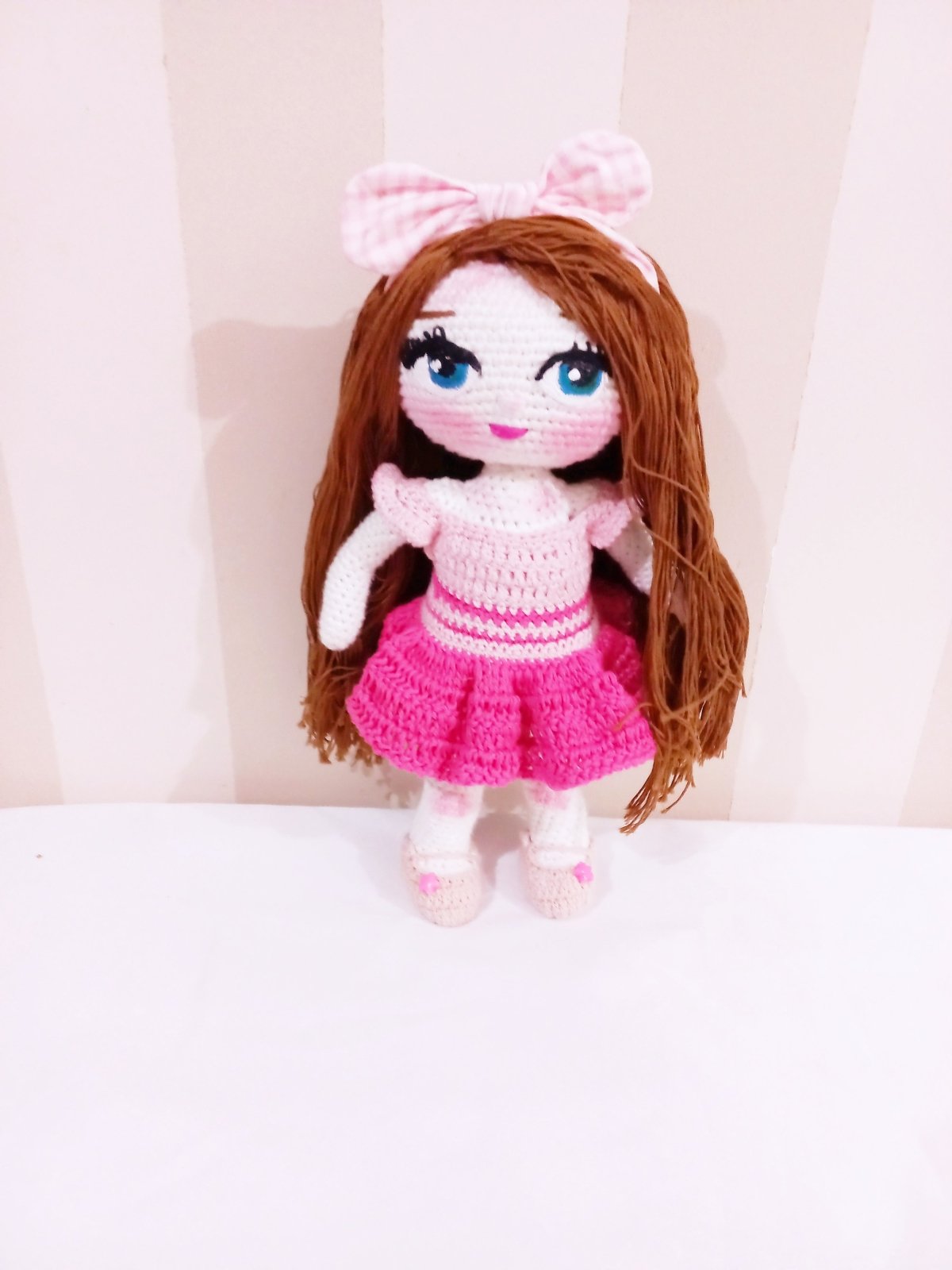 عروسة كروشية كيوت. مدعمه بسلك داخلي لسهوله الحركة خيوط ناعمة شعر خيط لبس منفصل ٣٥ سم