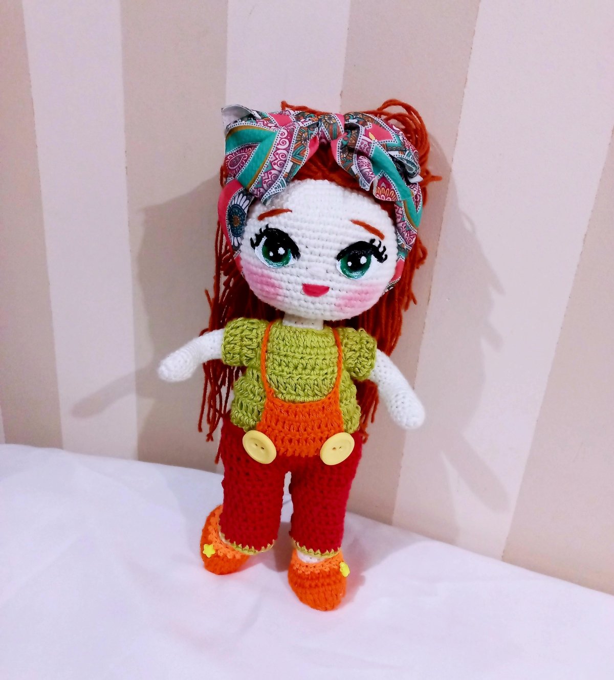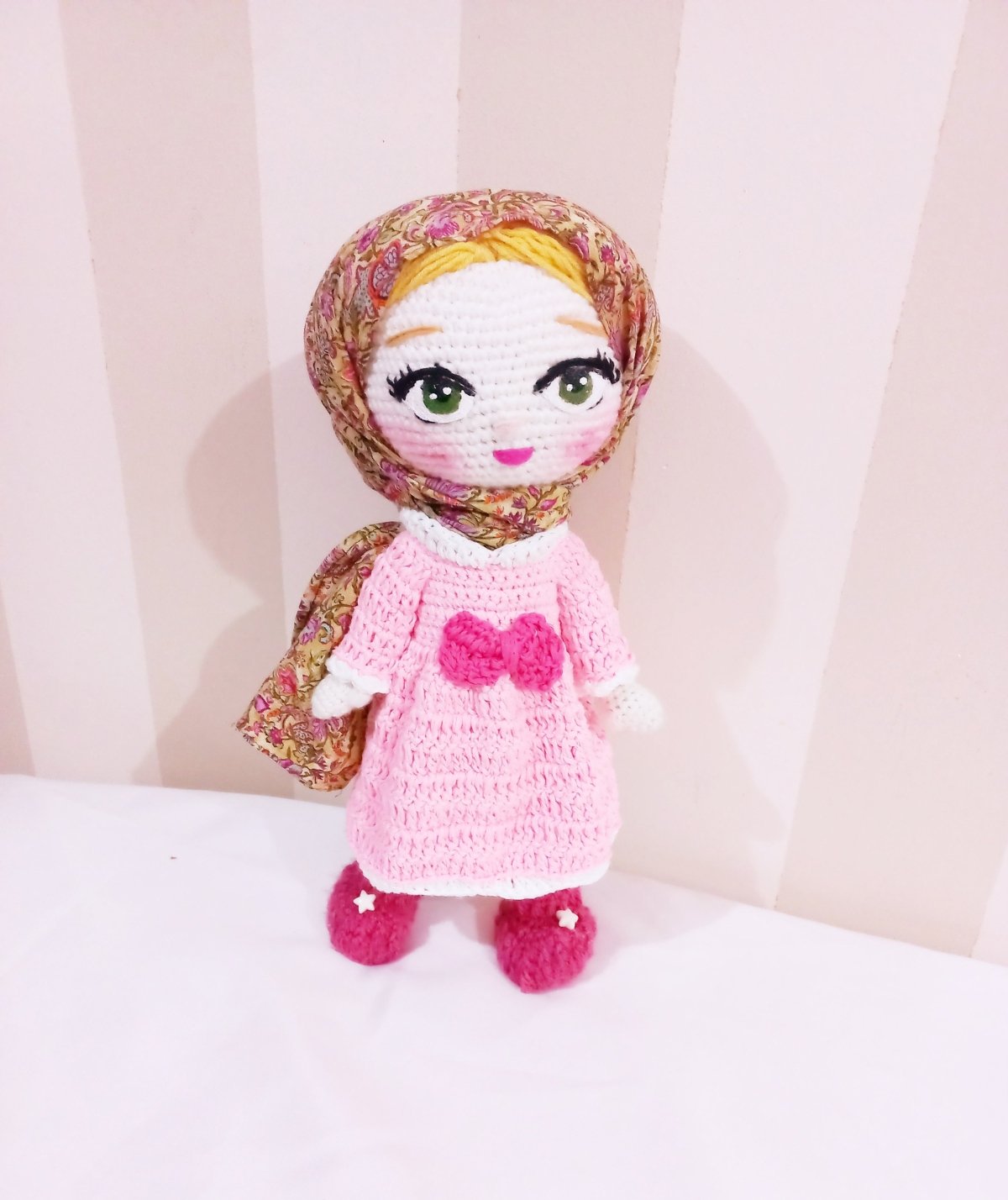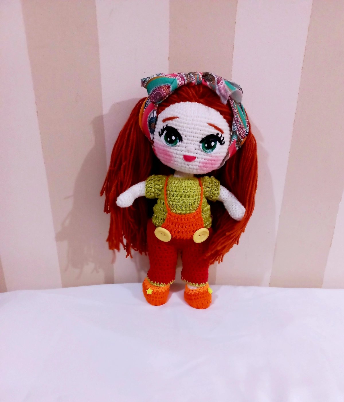عروسة كروشية كيوت. مدعمه بسلك داخلي لسهوله الحركة خيوط ناعمة شعر خيط لبس منفصل ٣٥ سم