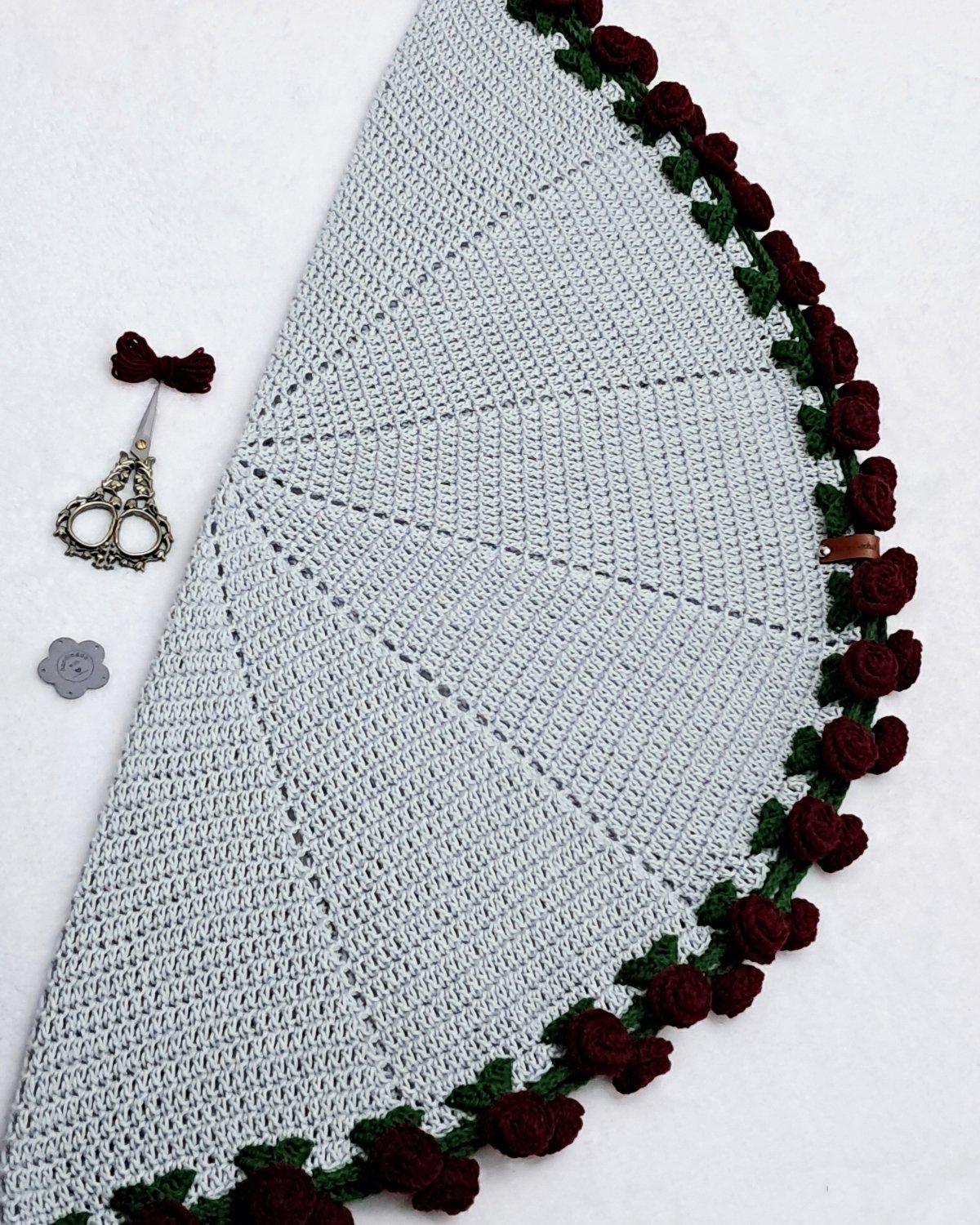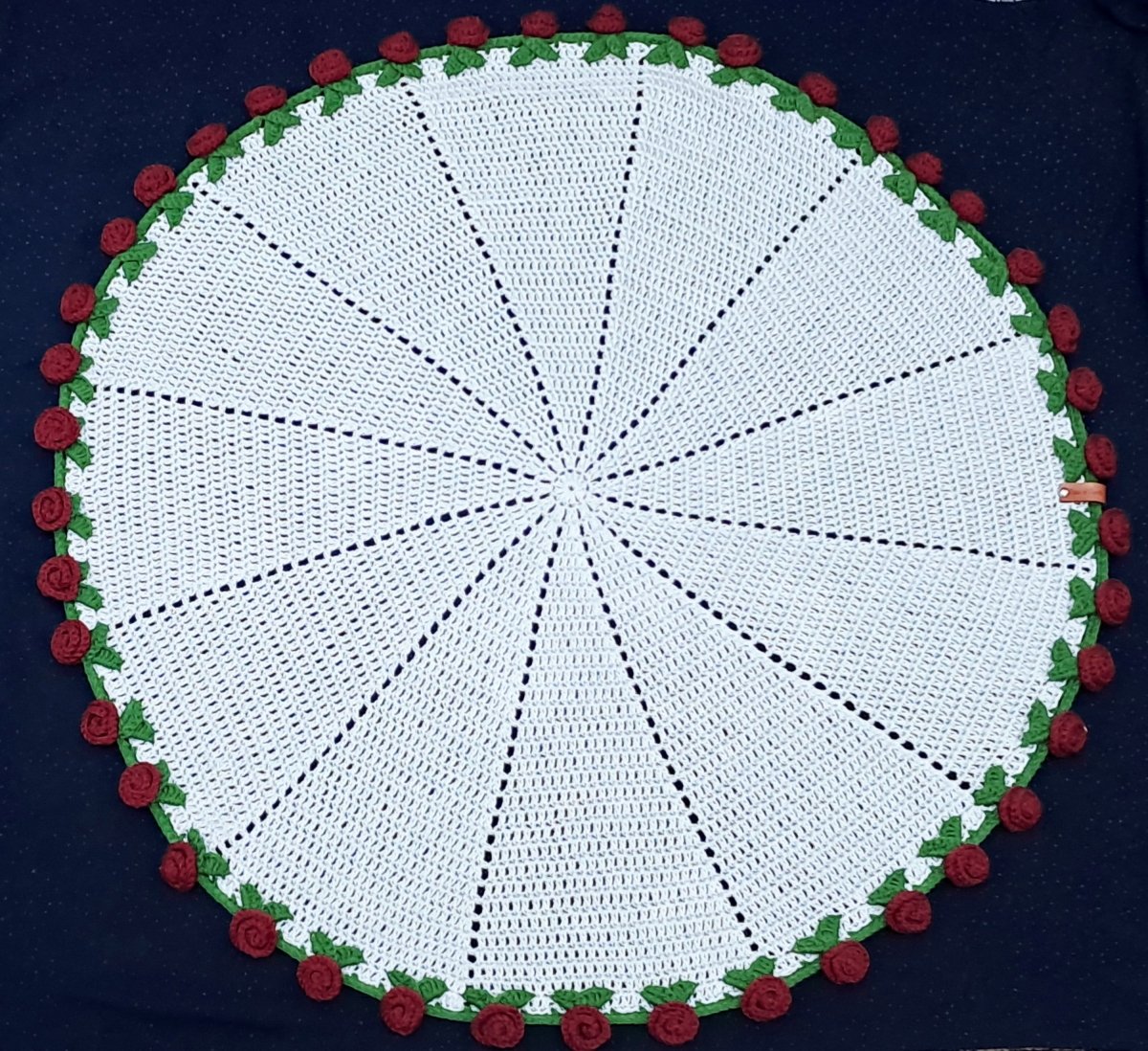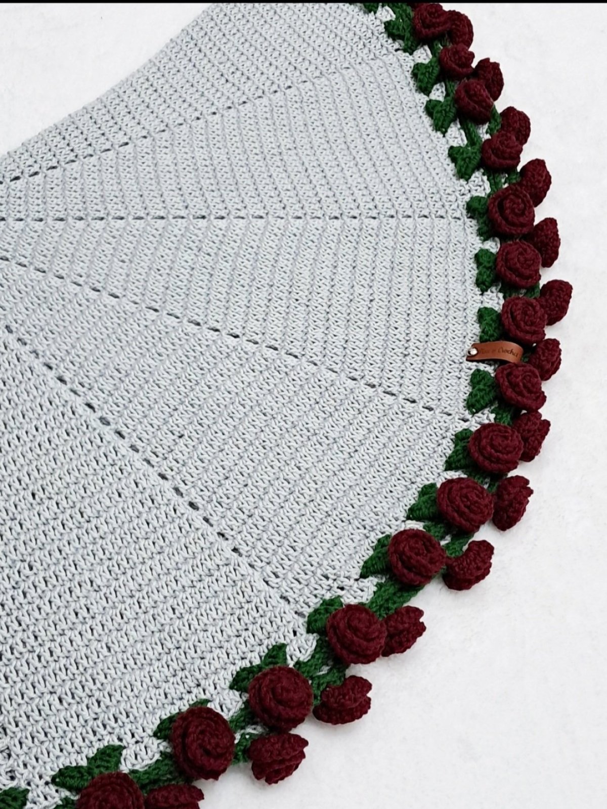 مفرش بوكية الورد مشغول بخيوط قطن ١٠٠% جودة ممتازة . المفرش قطرة ٨٠ سم . متاح تنفيذة بأى مقاس حسب الطلب وكمان متاح شغل الورد بأى لون