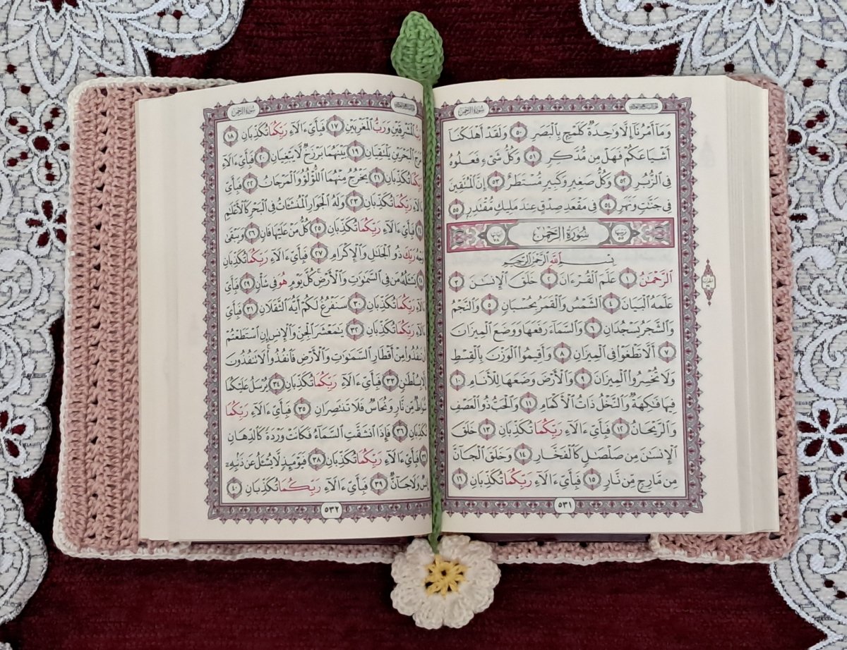 جراب المصحف أو الكتاب مشغول بخيوط تركية عالية الجودة . مقاسه الطول ٢٠ سم والعرض ١٤ سم . متاح تنفيذة بأى لون أو مقاس حسب الطلب .