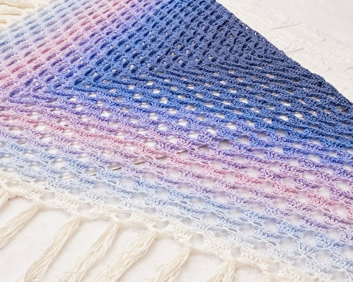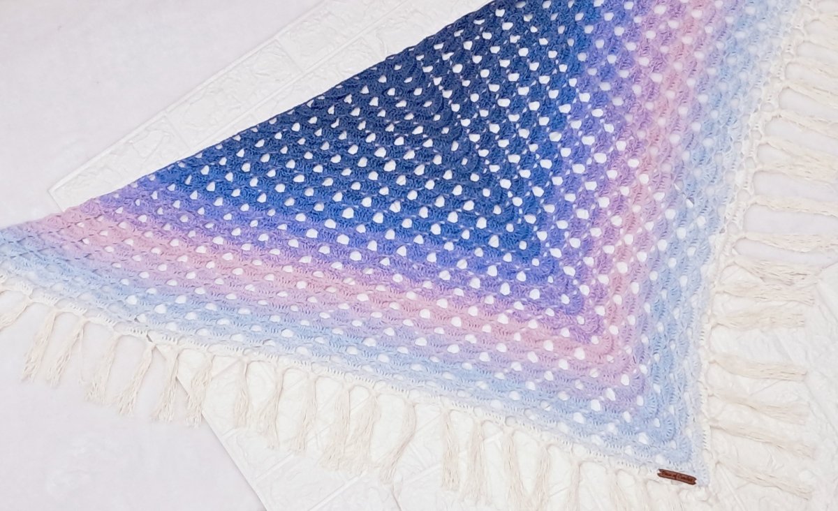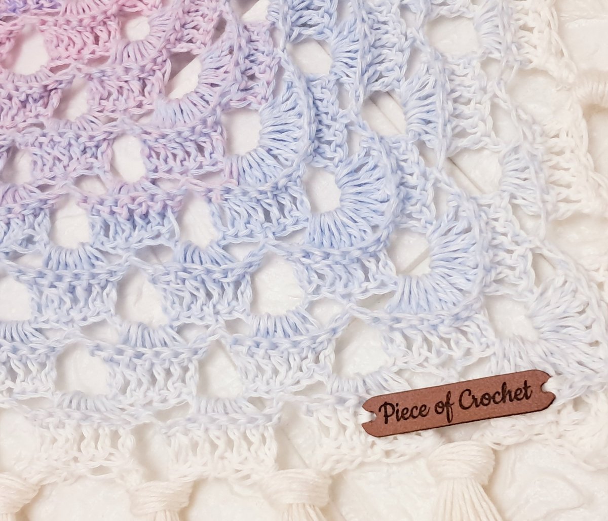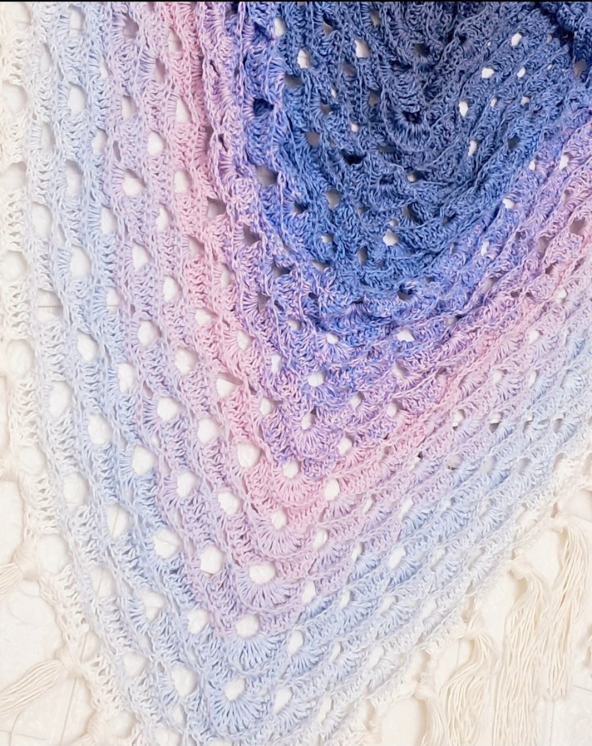 شال مشغول بخيط تركى قطن ١٠٠% لاصحاب البشرة الحساسة . الشال مناسب لجميع فصول السنة . مقاس الشال بالعرض من اطراف الشال ١٧٠ سم وارتفاع الشال من المنتصف لزاوية الشال في المنتصف بدون شرايب ٨٠ سم والارتفاع بالشراشيب ٩٢ سم