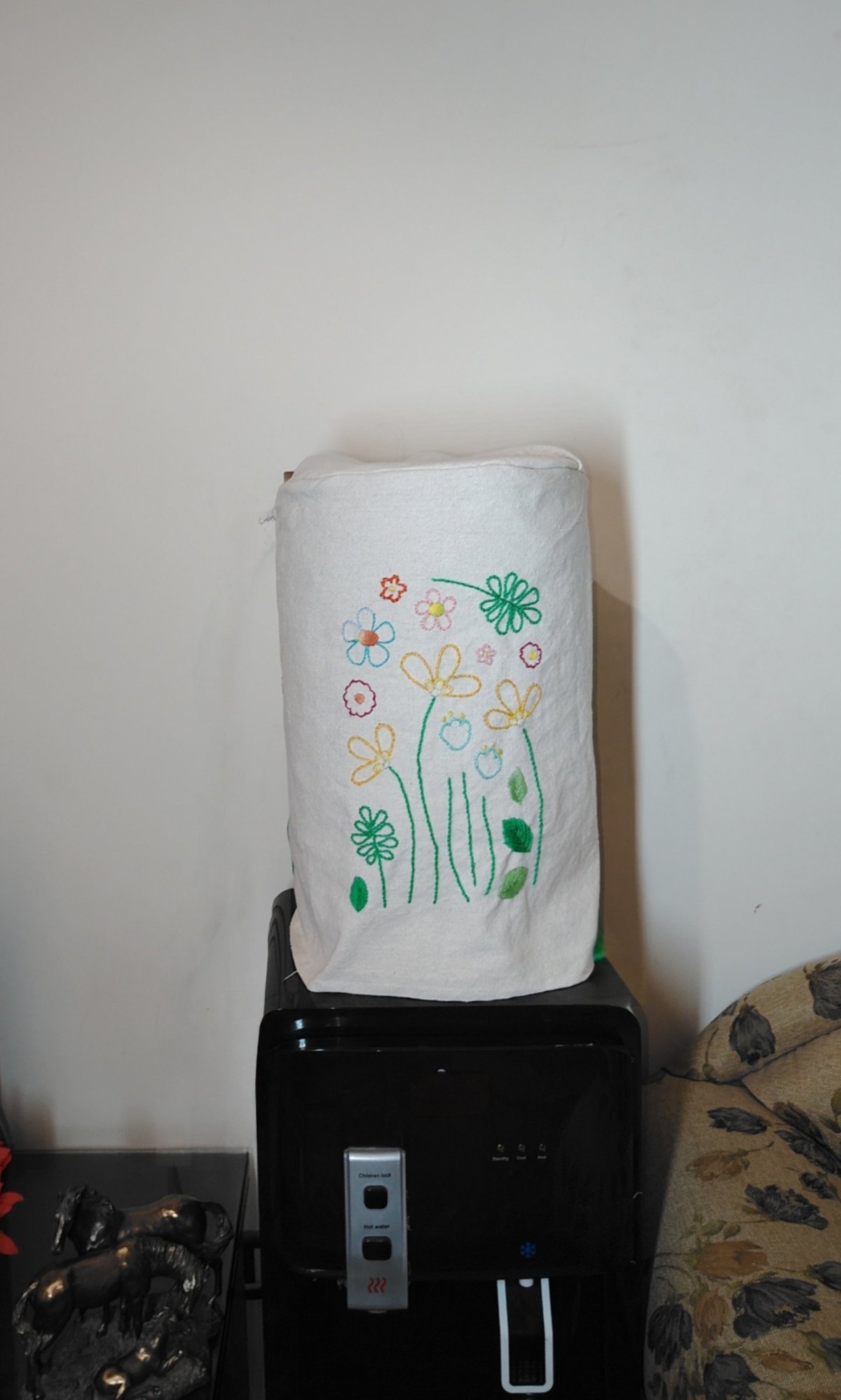 غطاء قارورة مبرد الماء مصنوع من قماش الدك و تطريز يدوى