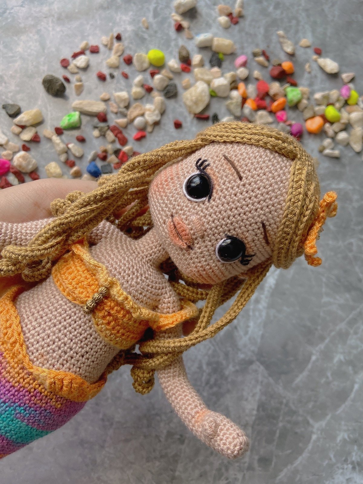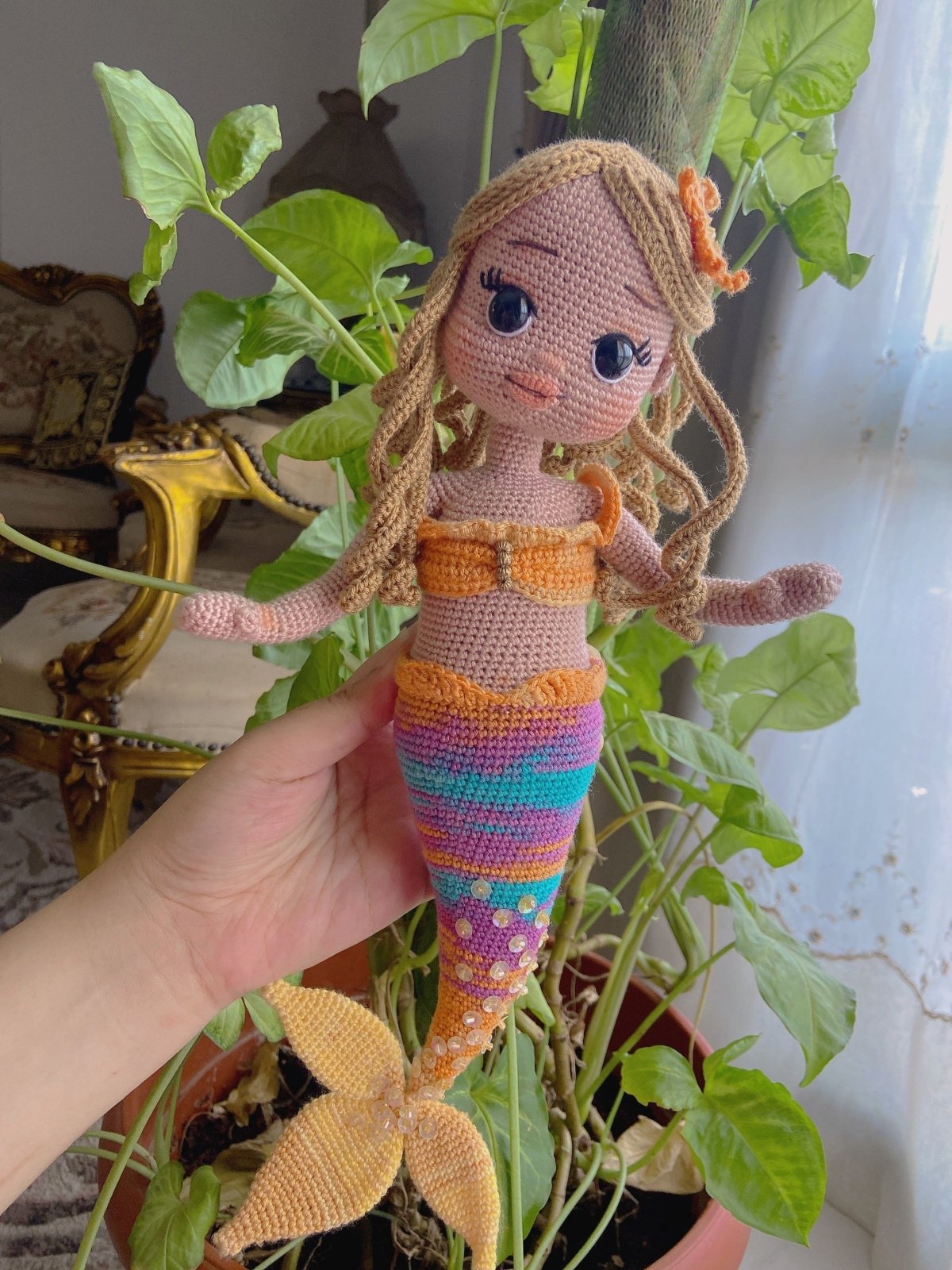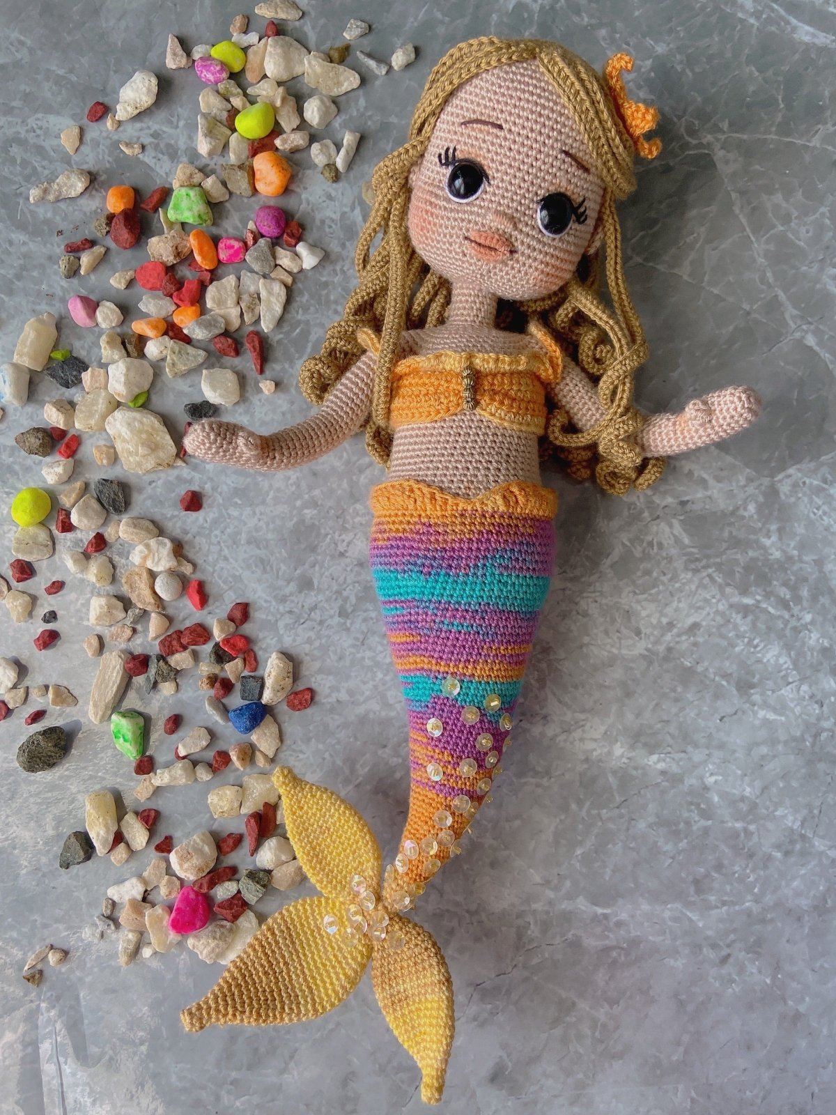 عروسة بحر اميجرومي مصنوعة من خيوط القطن التركي الذراع والرأس مدعمين بسلك لسهولة الحركة متاح تغيير الألوان المقاس : ٣٠ سم
