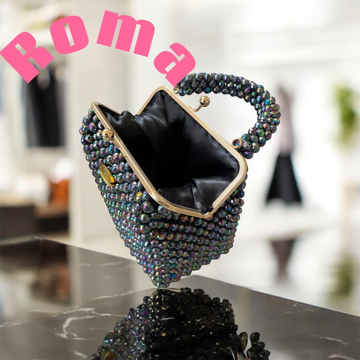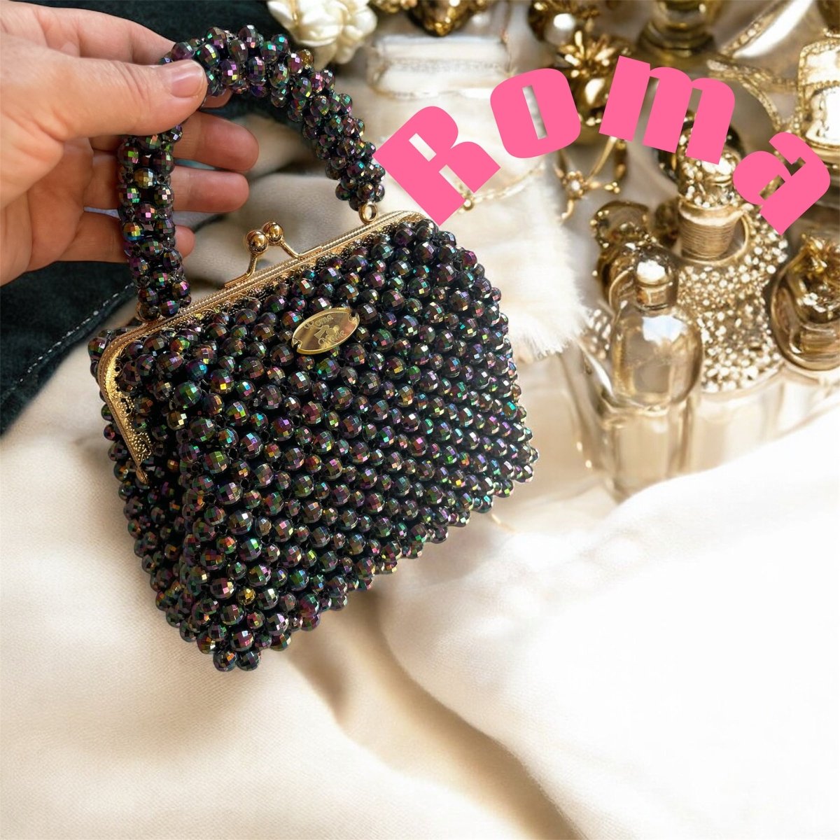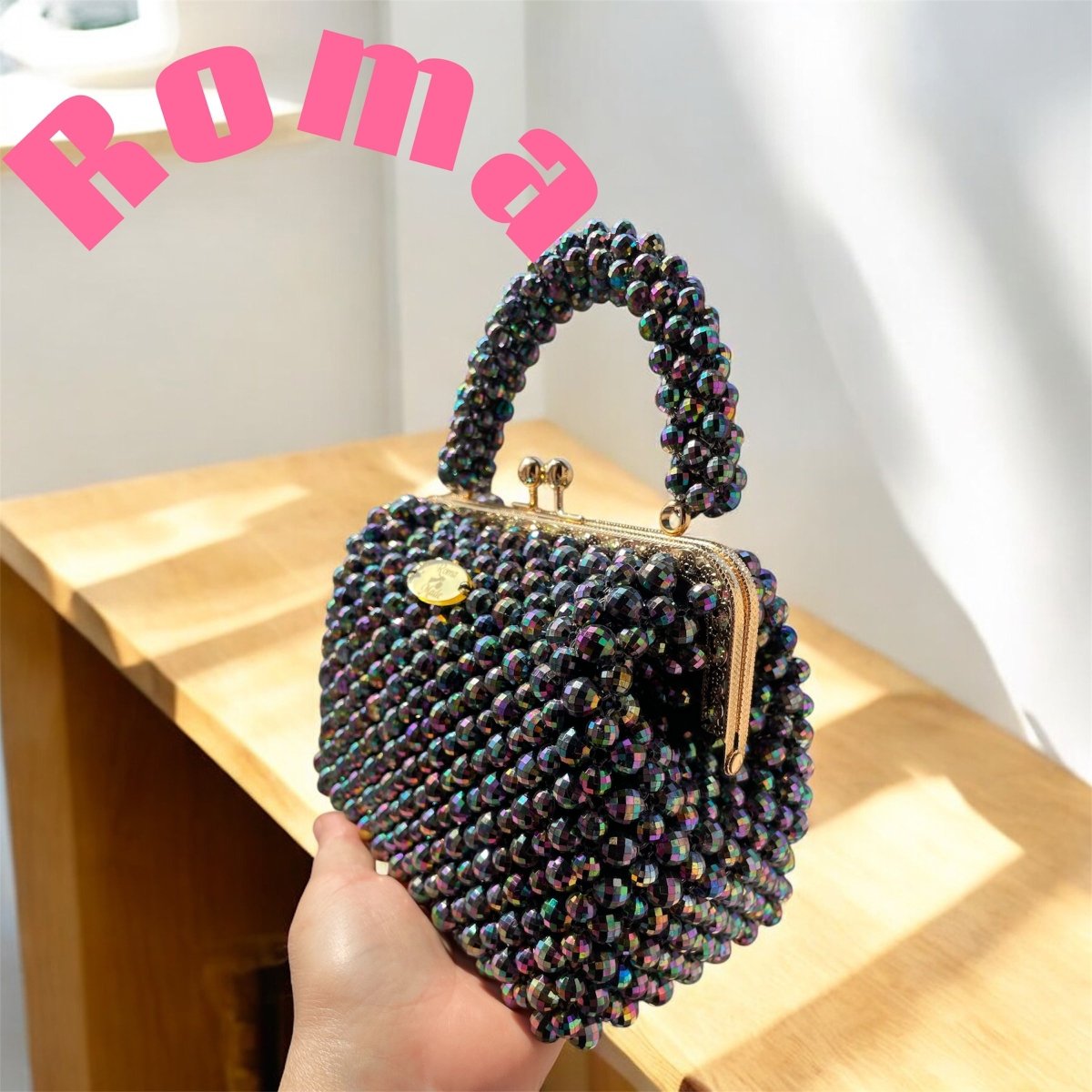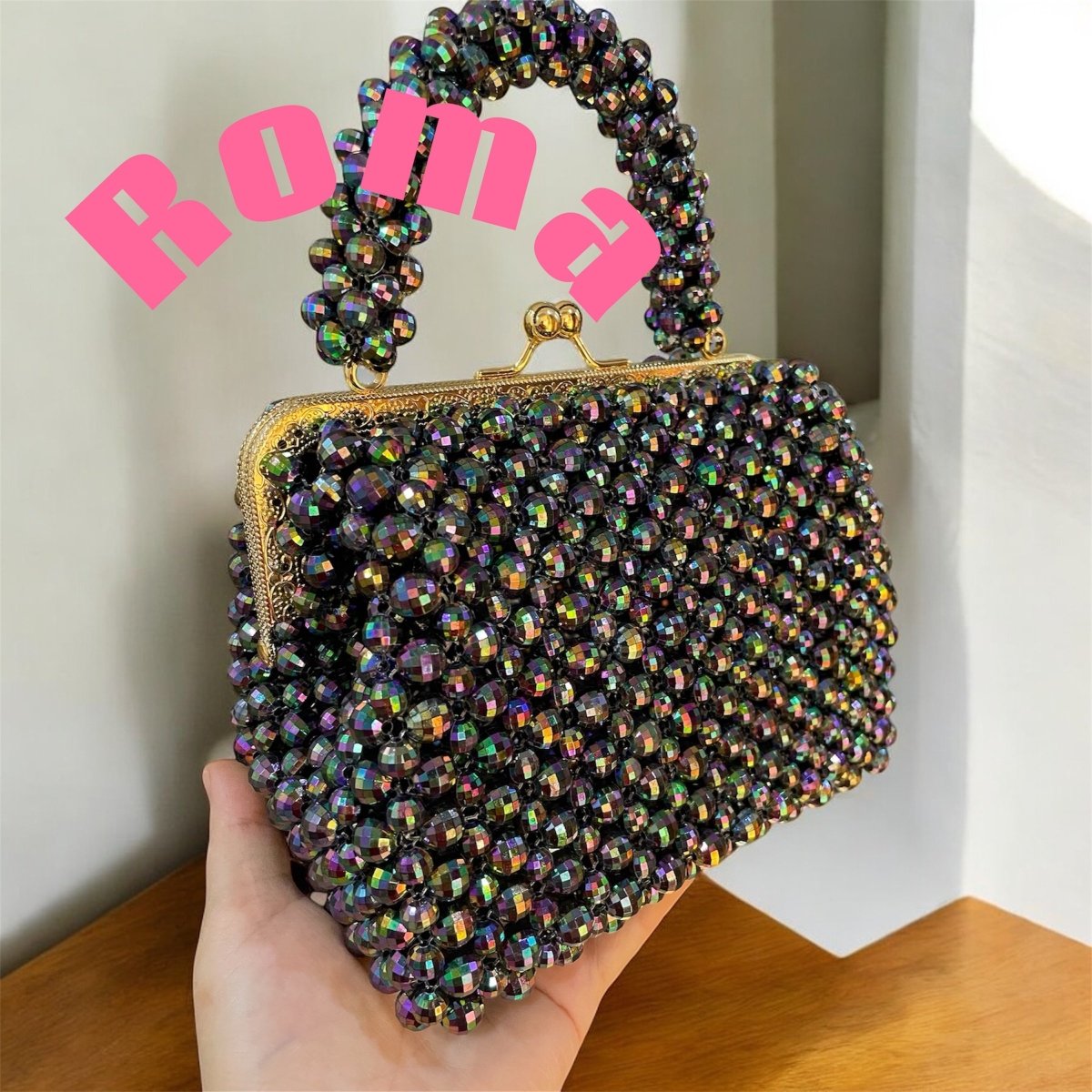 شنط خرزصنعت يدويا من خرز الكريستال الجنجاالمستورد ذات لمعه قويه لها بطانه من الداخل مقاس الفريم ١٦