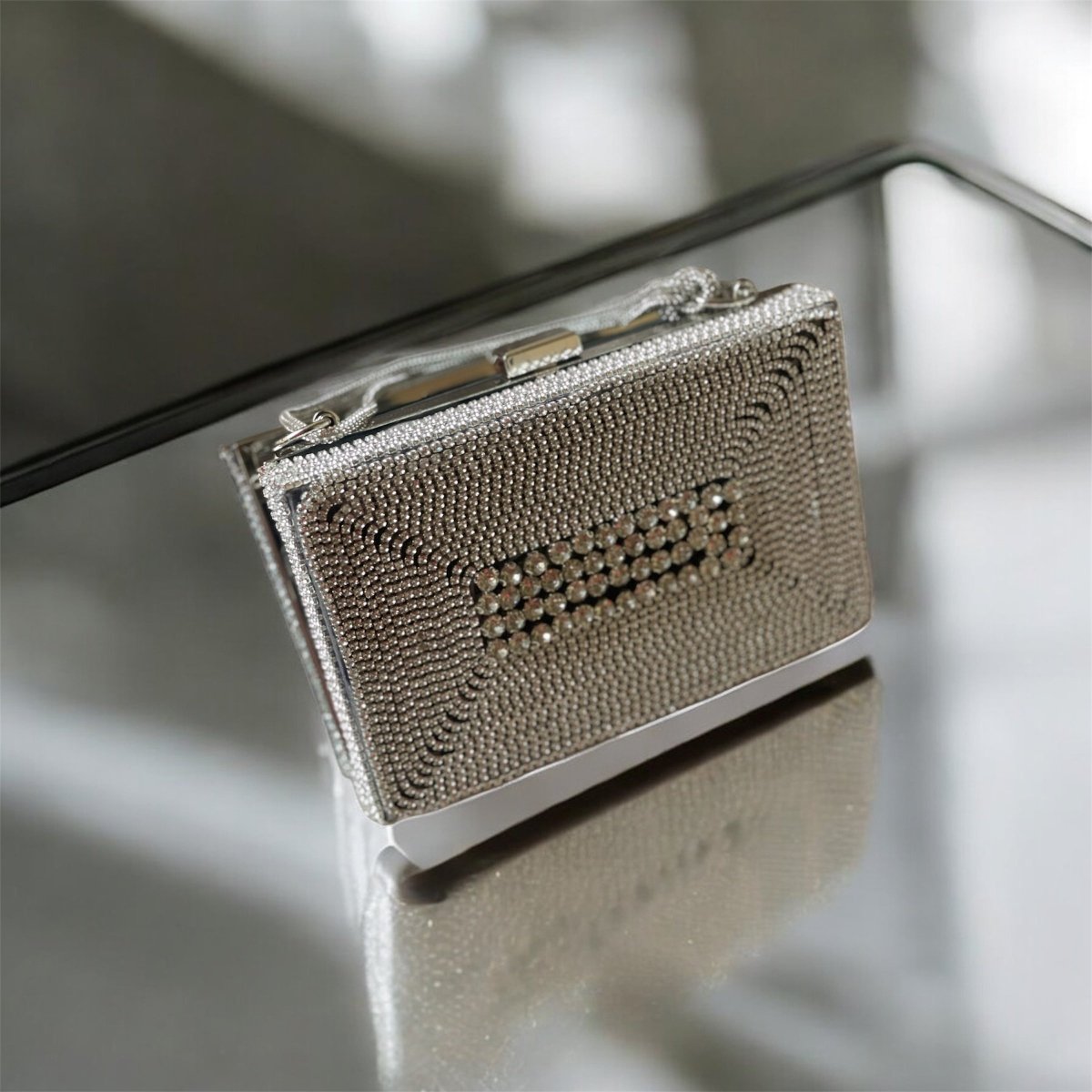 ملحوظات حقيبه سواريه صنعت يدويا من فريم مستورد مزين بالاستيرس وفصوص الماظ مستورد بطانه داخليه مقاس ٢٠ ملحوظات