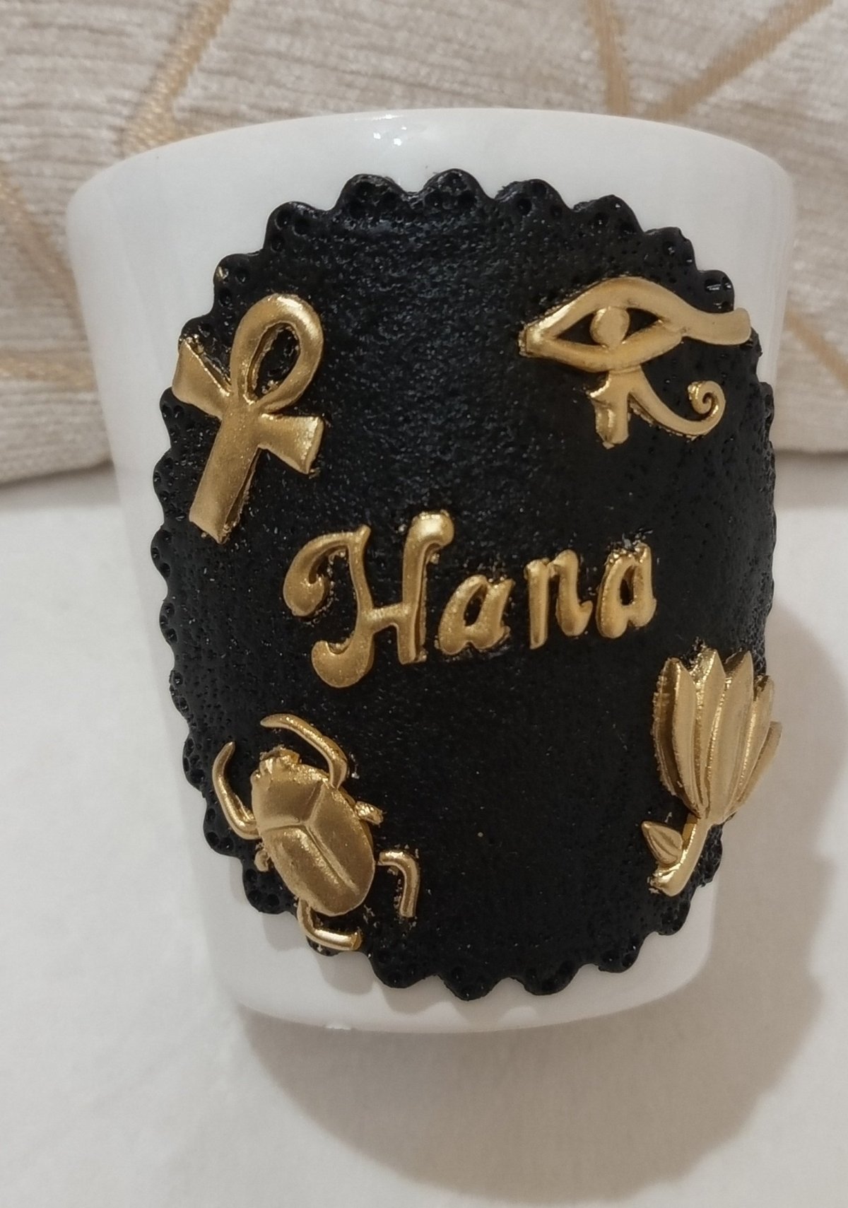 مج ذات تصميم مصنوع من الصلصال الحرارى ومتاح تغيير الالوان لا يدخل الميكروويف ولا غسالة الاطباق ولا ينفع فى الماء