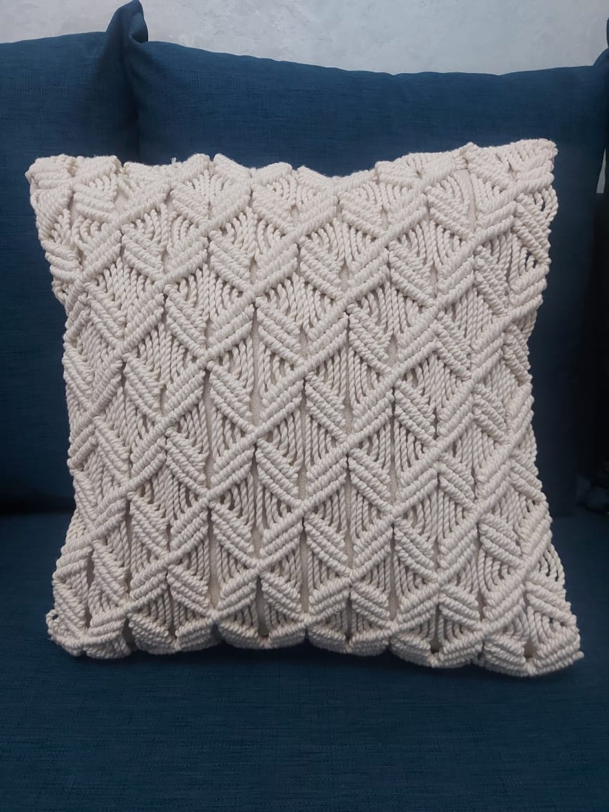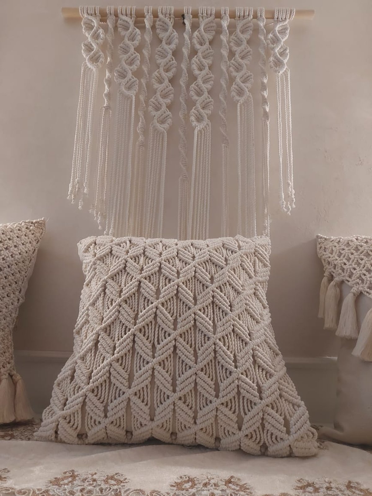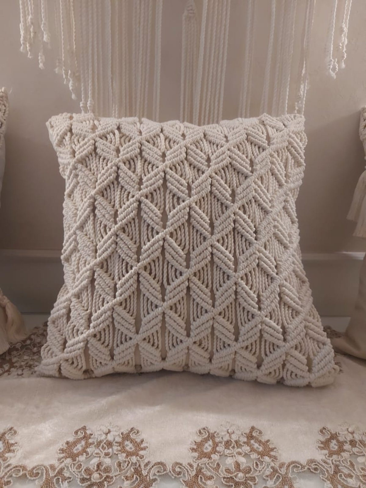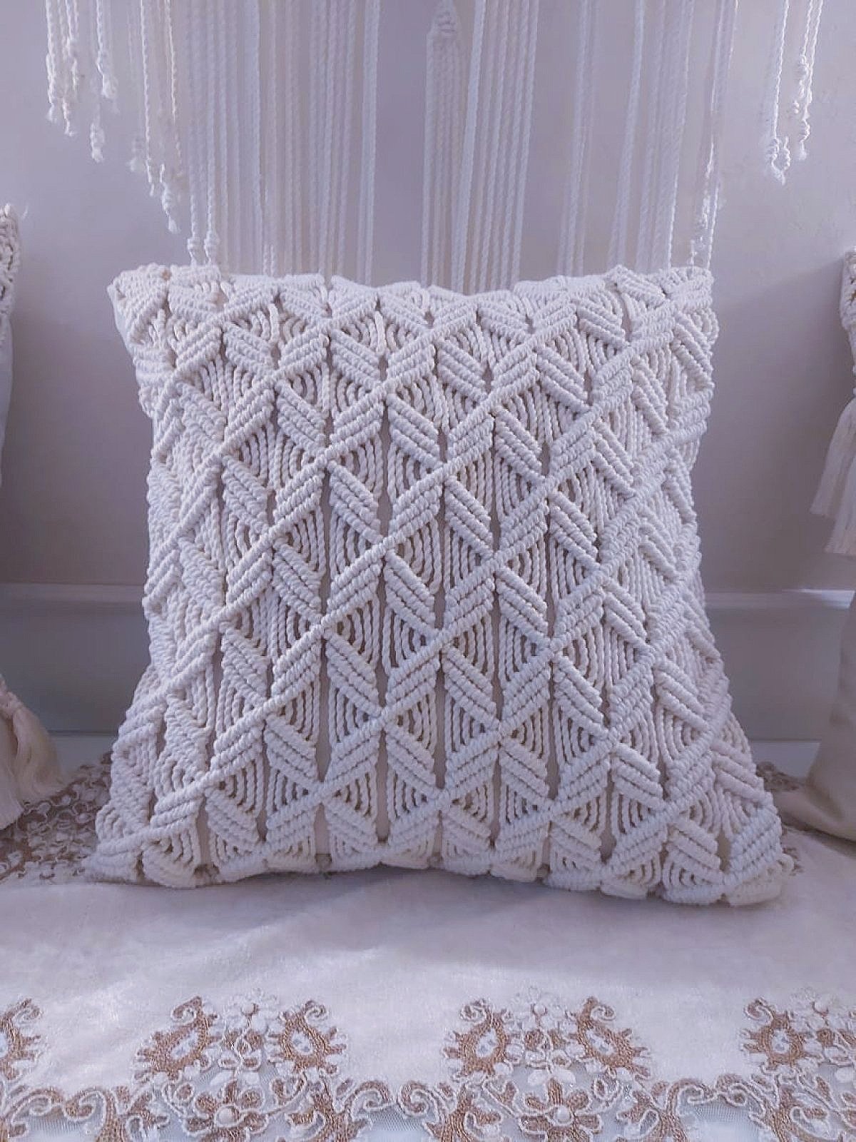 كوشن بعقد المكرمية للديكور وتستحمل الاستخدام سهله الغسيل شامله حشو فيبر