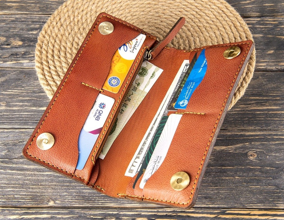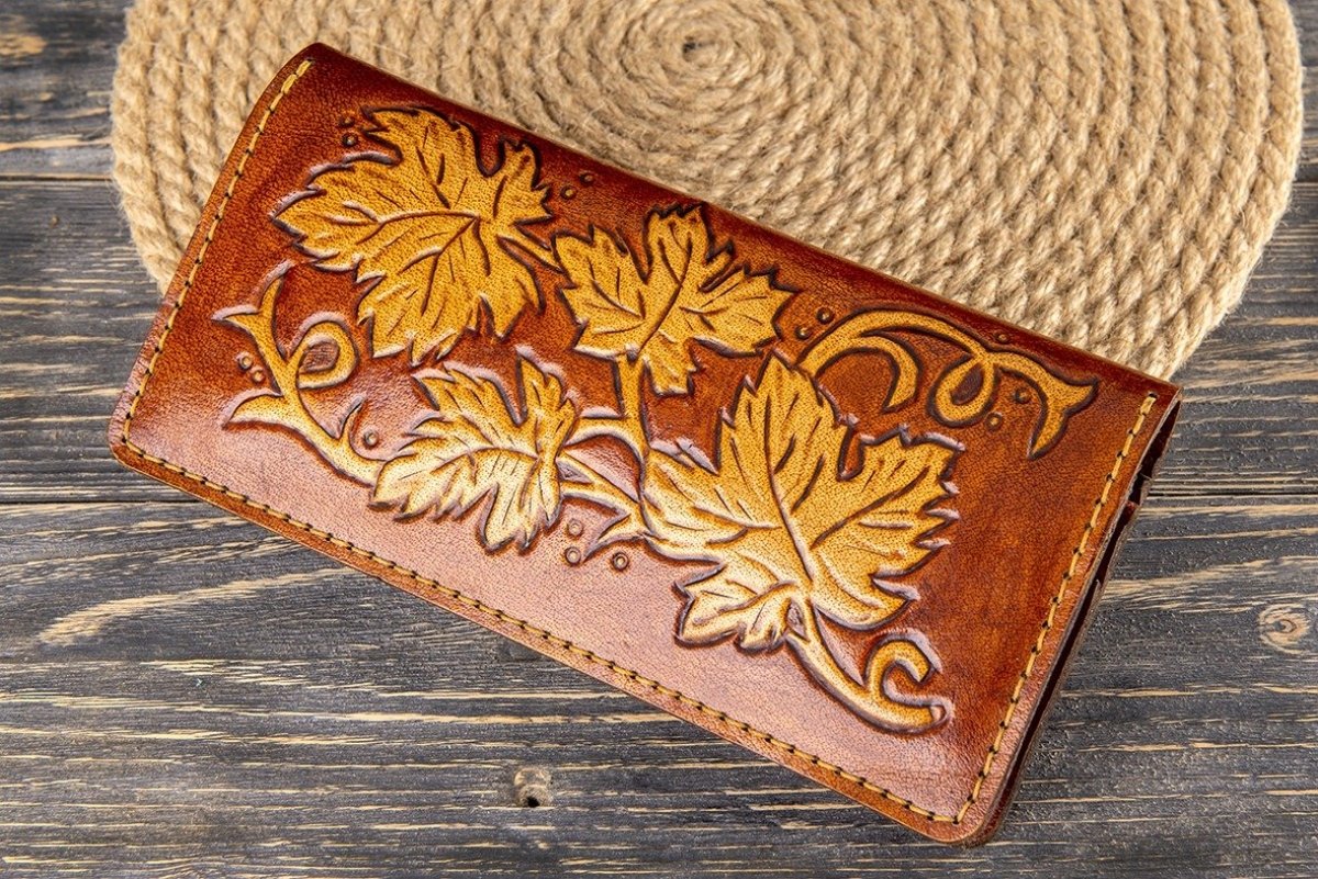 Genuine leather freehand carving Dimensions 20*11 6 card pockets 2 paper pockets 1 zipper pocket