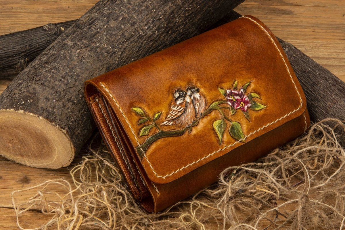 Handmade Genuine Vegetable-Tanned Leather Wallet – Unique Hand-Carved Design Elevate your style with this handcrafted wallet made from premium vegetable-tanned genuine leather, free of chrome and environmentally friendly. The wallet is decorated with exquisite hand-carved and hand-painted details, finished with a protective coating to preserve the vibrant colors and keep them looking new. It features a smart and functional design including: 7 card slots 1 magic pocket 1 zipper pocket for coins 2 slip pockets for papers 1 full bill compartment Dimensions: 15 × 10 cm More than just a wallet – this is a timeless piece of art combining elegance, durability, and functionality.