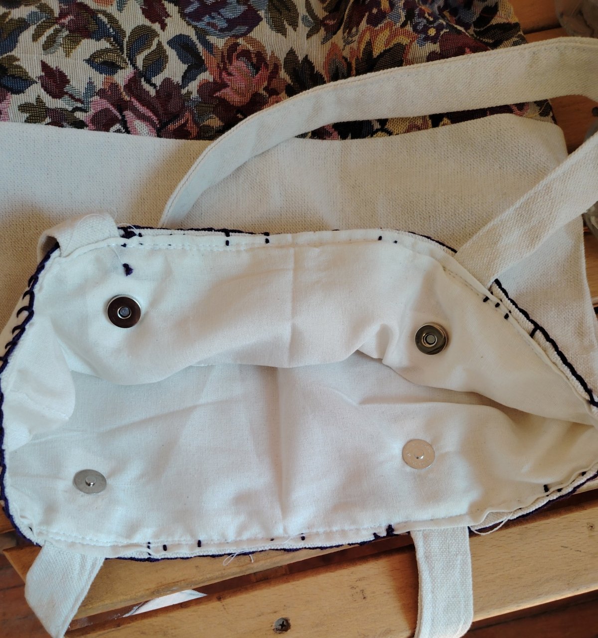 شنطة قماش مقاس ٤٠*٣٥ سم يوجد بطانة من الداخل و جيب داخلى