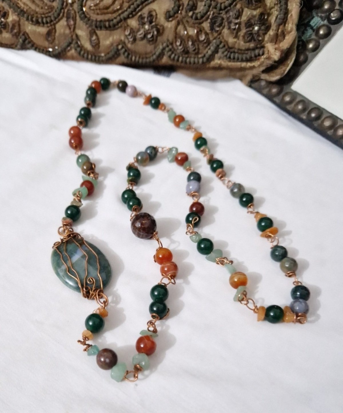 💚🧡💚عقد من النحاس المطعم بأحجار الجاسبر والكارنيليان و موسى جاد