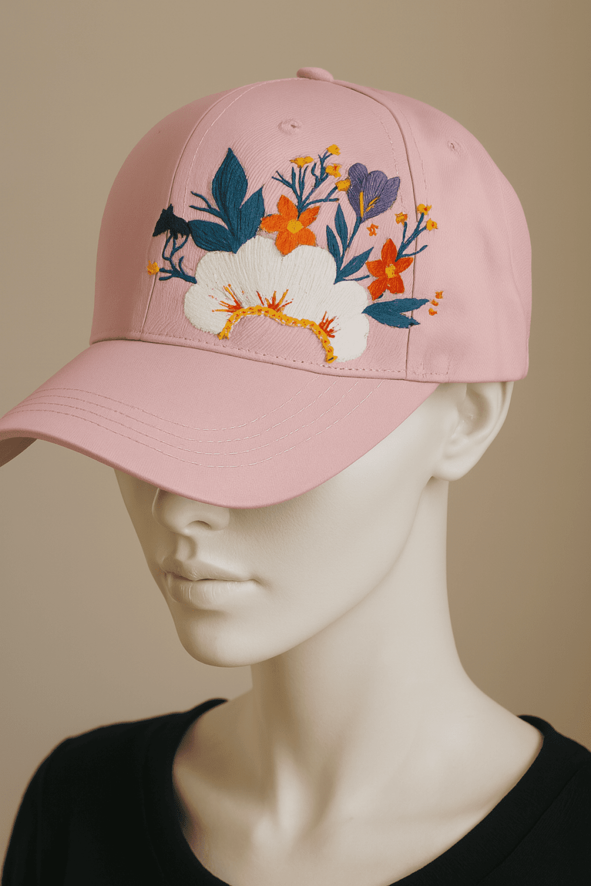 كاب روز مطرز تطريز يدوى بورود مختلفه الألوان والتى يمكن تغييرها لتلائم ذوقك مناسب جدا هديه عيد ميلاد او مناسبه تميز صاحبه الكاب Hand embroidered rose cap with multi-colored flower that can be customized to match your taste.very suitable asa birthday or special occasion gift distinguished the owner of the cap