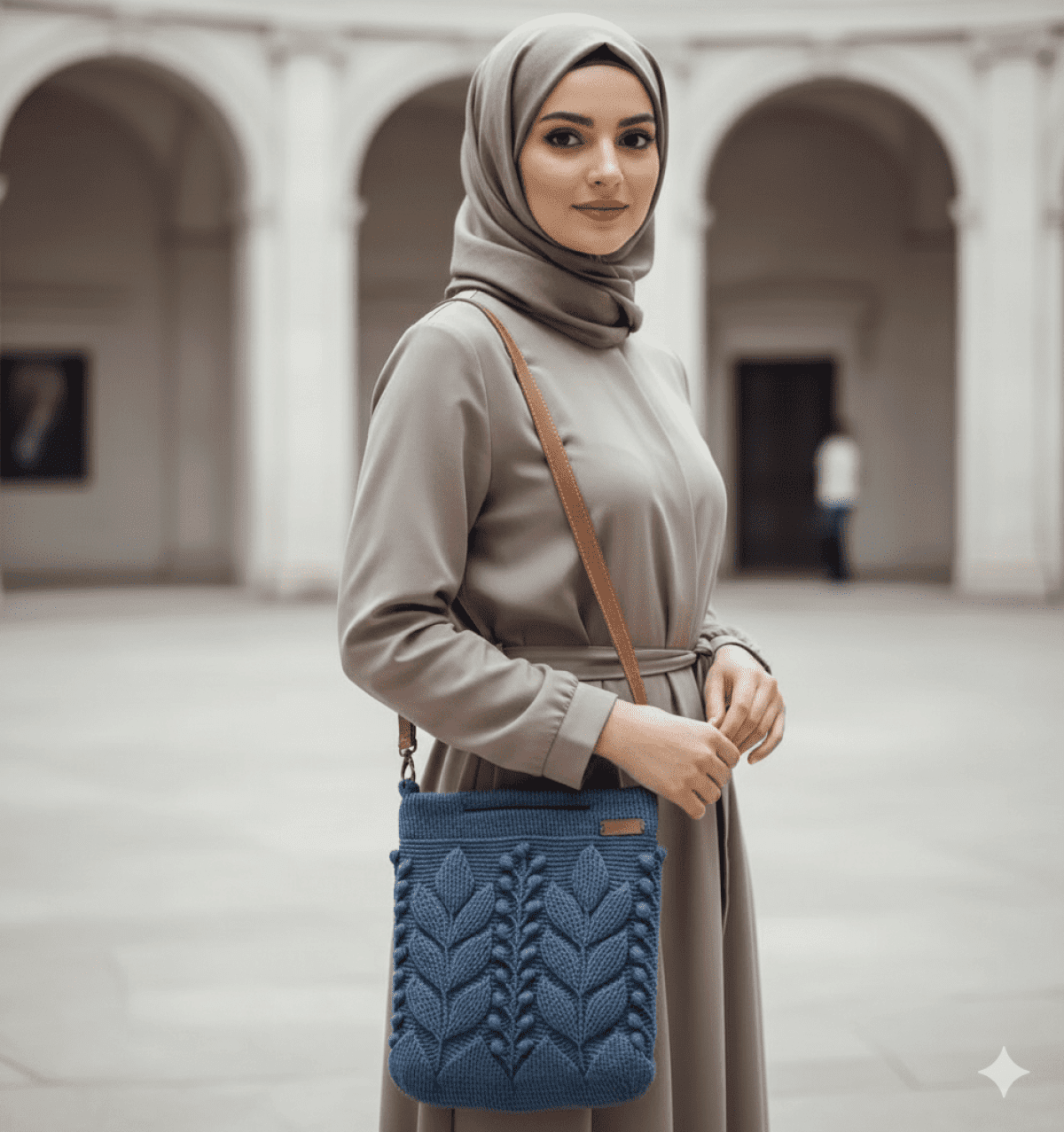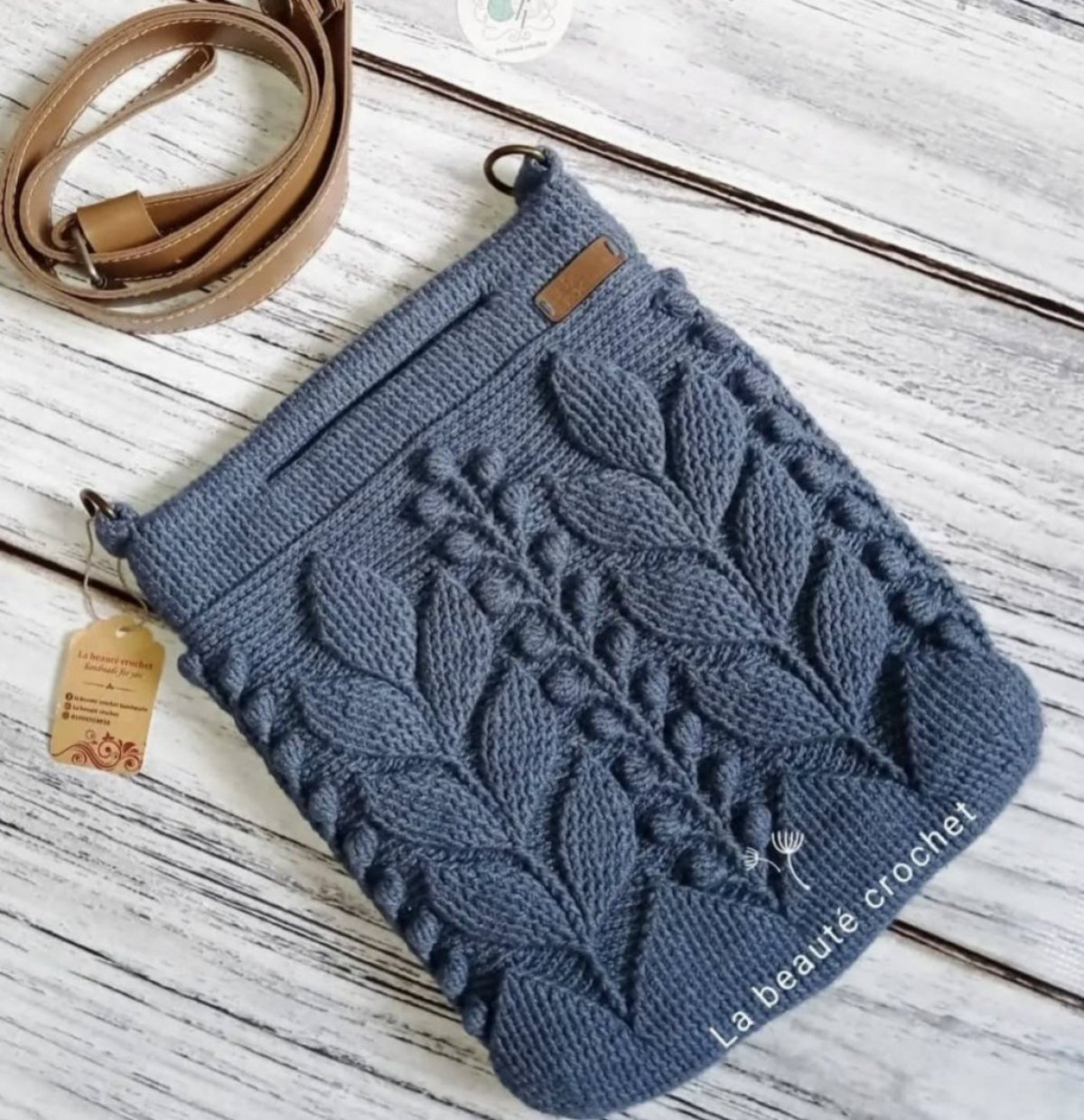 شنطة ثلاثية الأبعاد مصنوعة من أجود خيوط القطن التركية والتى تتميز بثبات الألوان يد كروس من أجود أنواع الجلود اكسسوارات اوكسيديه مبطنة من الداخل شمواه لها جيب بسوستة واخر بدون سوستة مقاس 32*28سم اللون الازرق الجينز