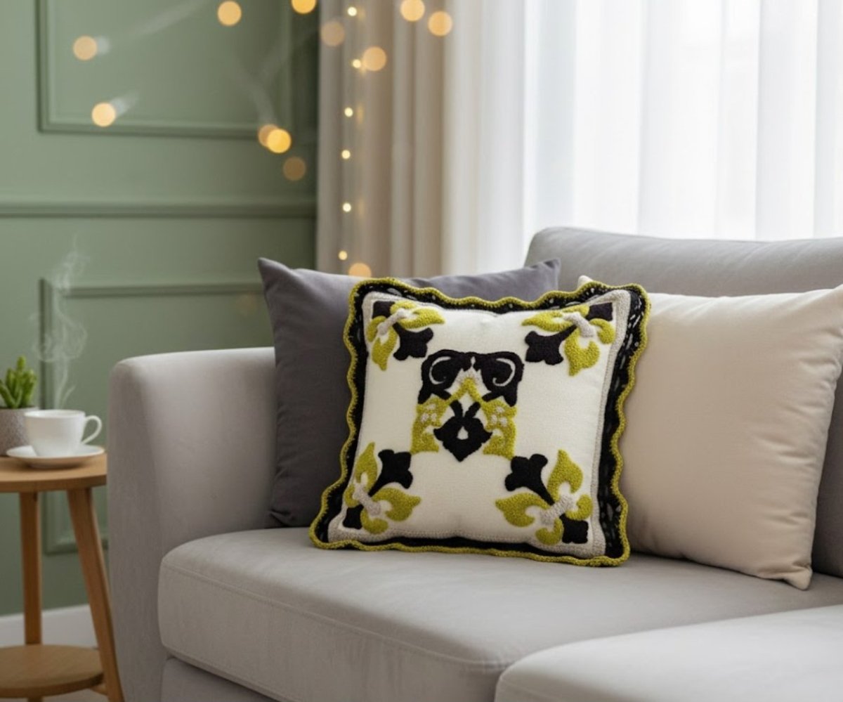 كوشنز من البانش تيدل و اطار من الكروشيه مقاس 40*40سم