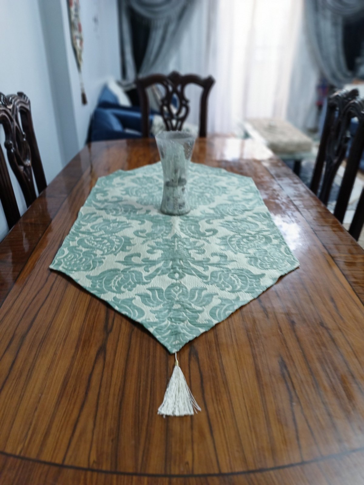 رنر طرابيزة سفرة مقاس 130 × 60 شيك ومختلفة بشراشيب اوف وايت