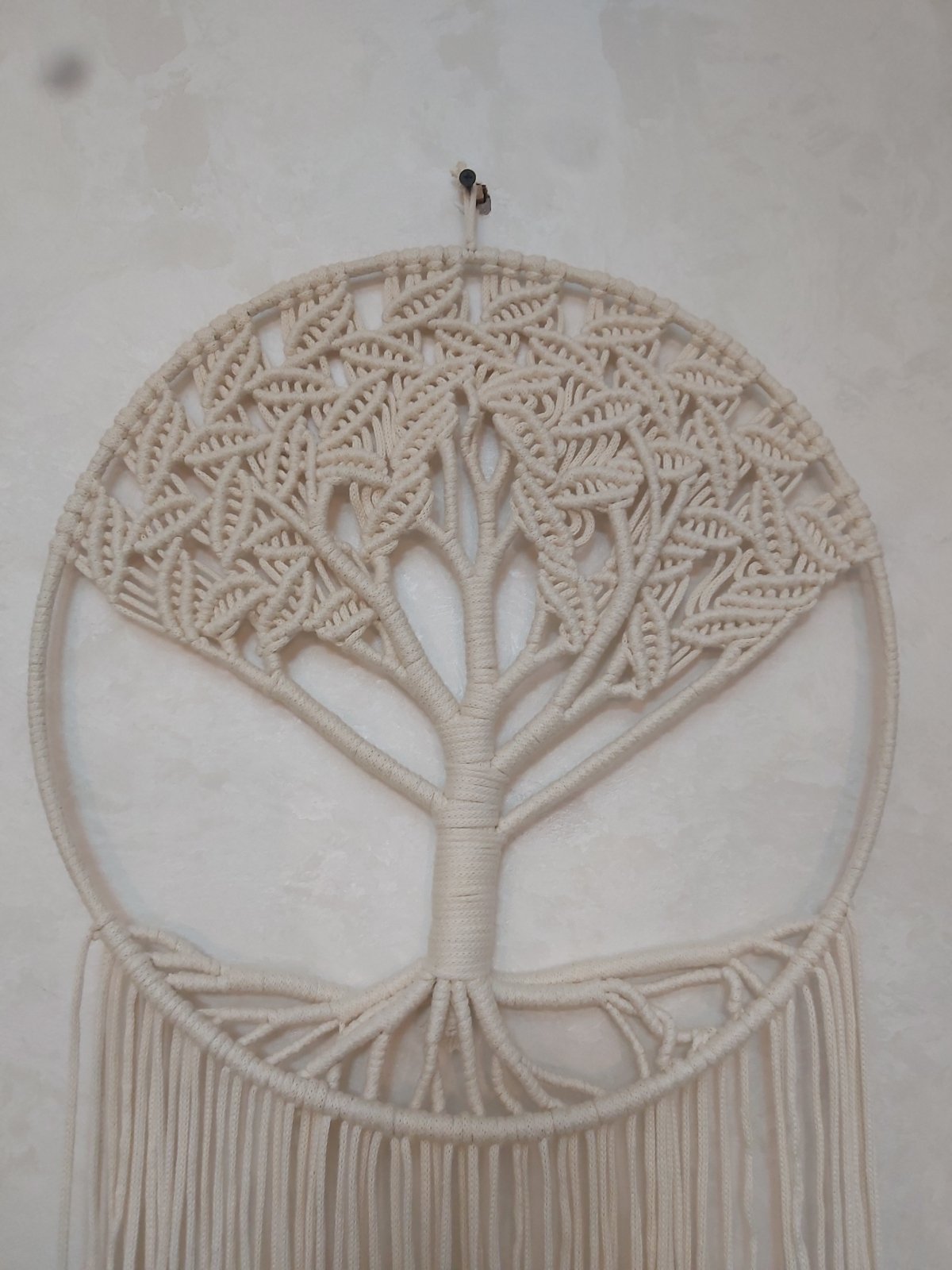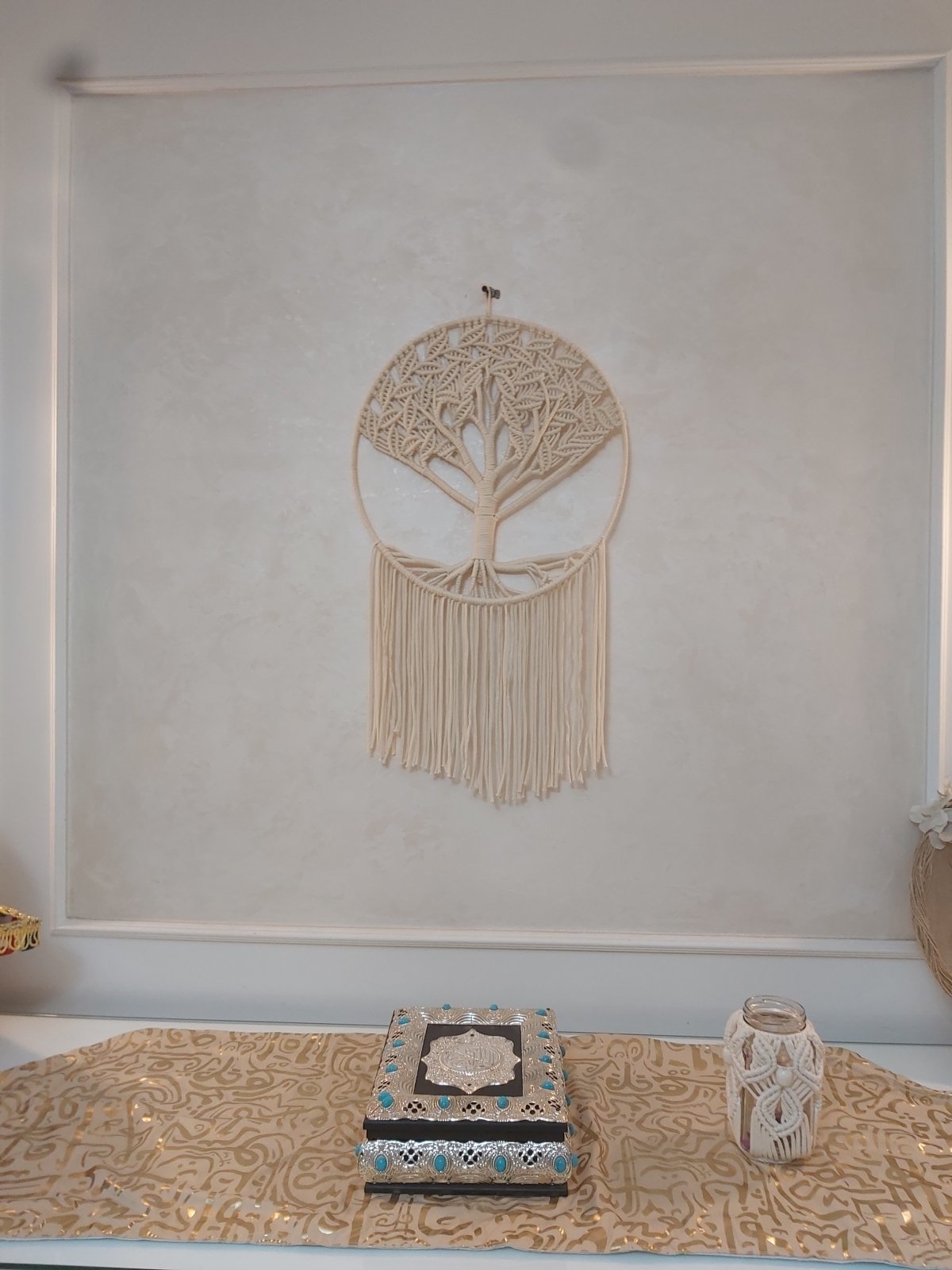 معلقه دائرية بشكل شجره الحياه من خيوط المكرمية لصور العائله وديكور جميل
