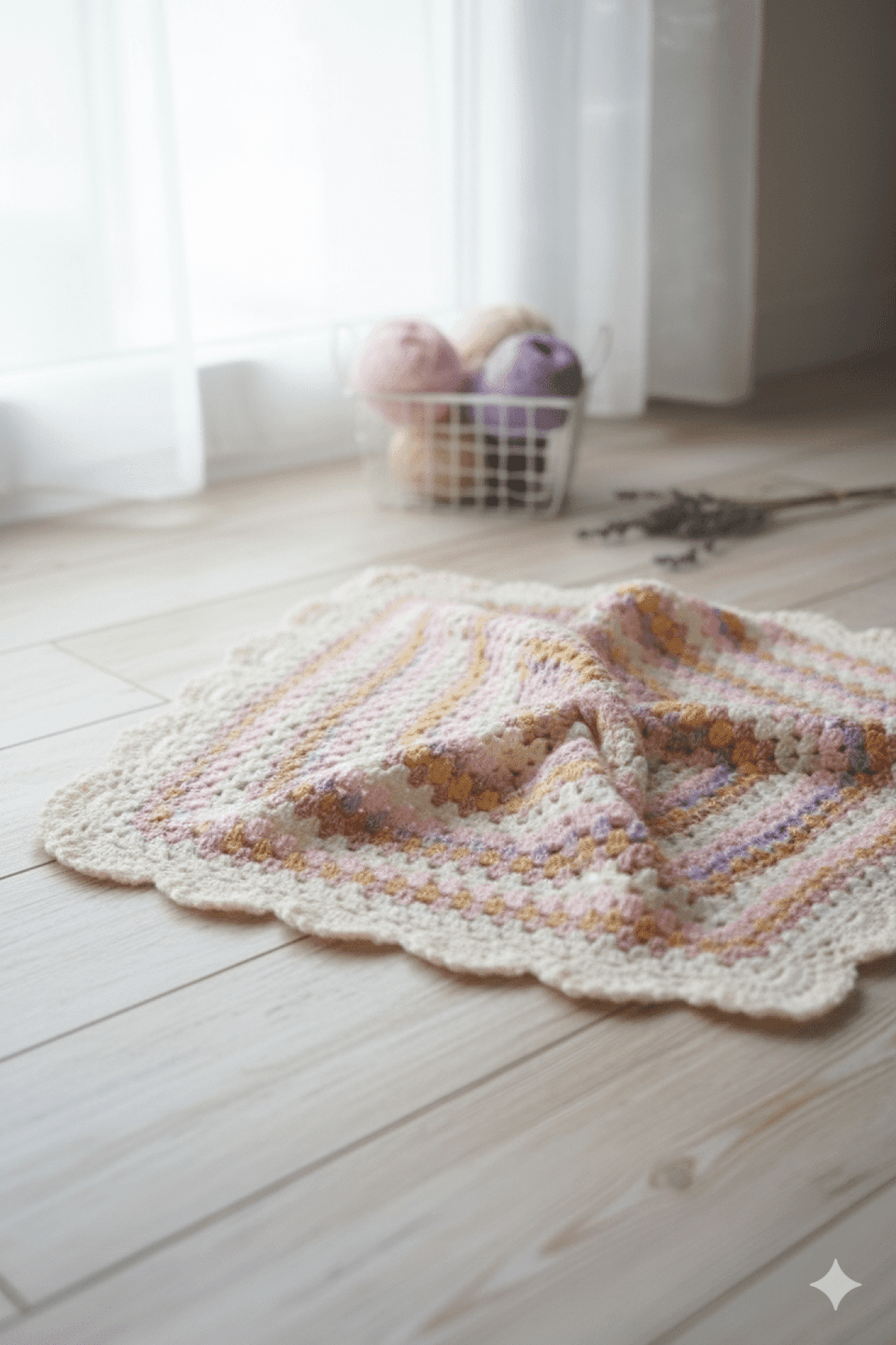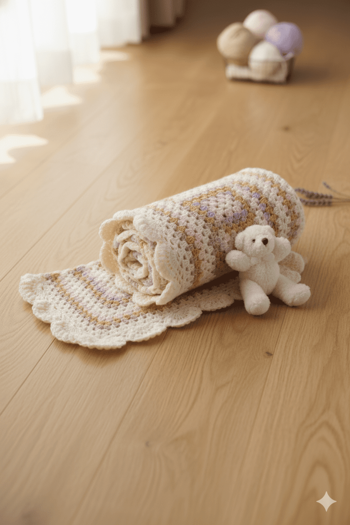 بطانيه بيبى بألوان هادئه مناسبه اذا كان الطفل ولد او بنت مقاس ٩٠*٩٠سم الخامه صوف غرزه جرانى Baby blanket insoft,in gender- neutral colors,suitable for both boys and girls. Size90*90cm.made of wool using the classic granny stitch.