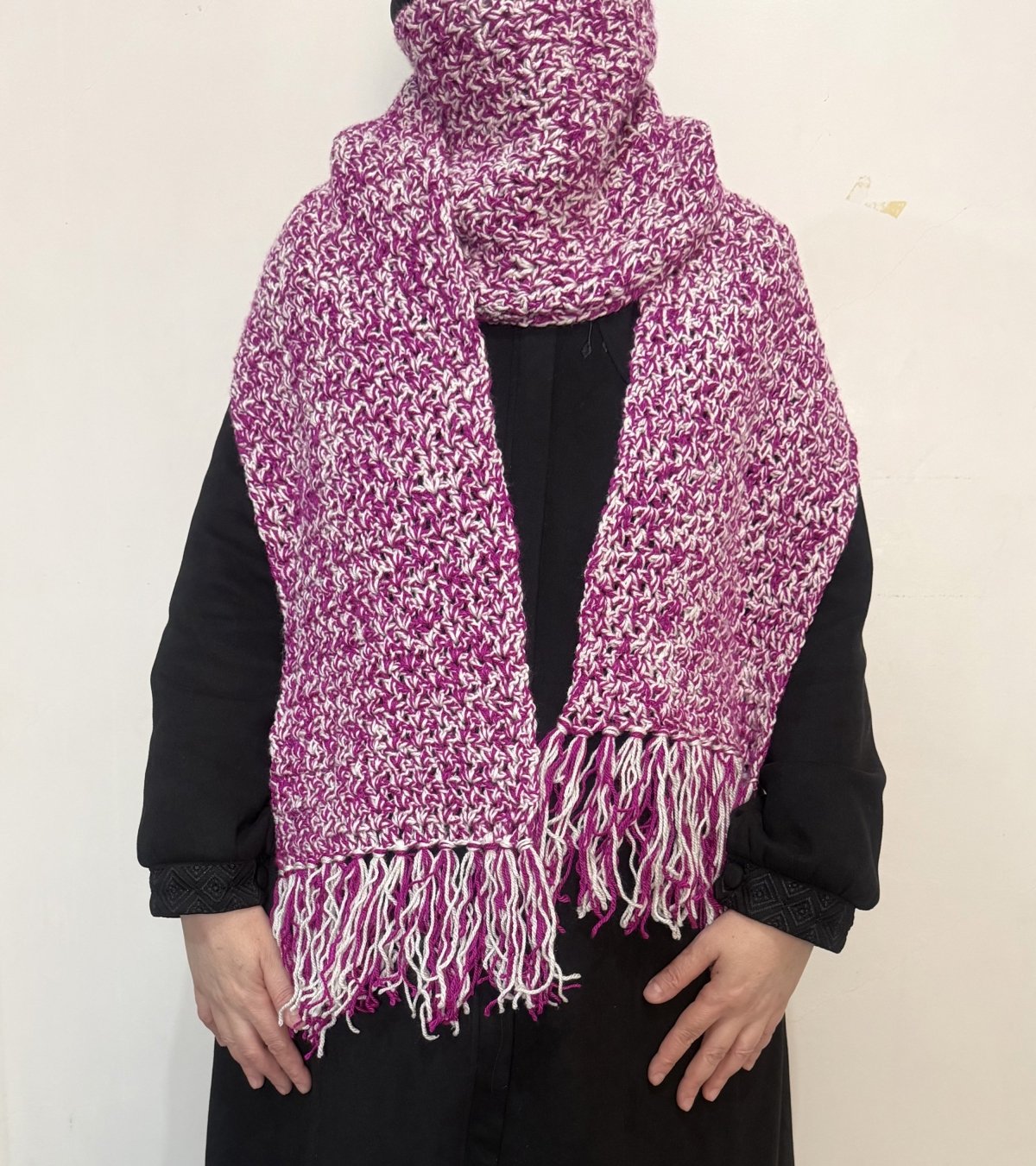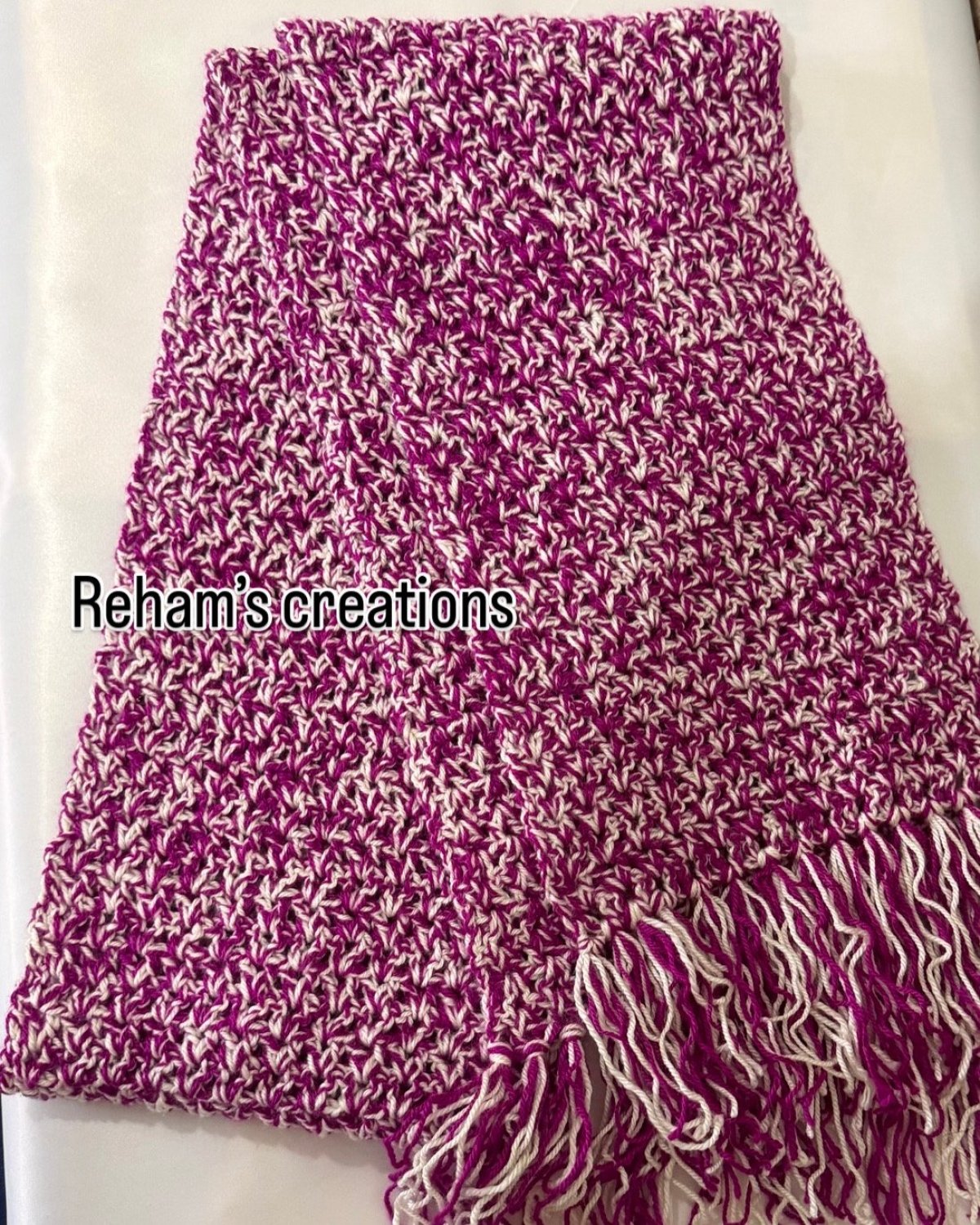 كوفيه من الخيط التركى الناعمة الغرزة الرقيقة طويلة جدًا و عريضه و ثقيله للتدفئة العالية الطول ٢٢٥ سم بالشراشيب و العرض ٢٤سم