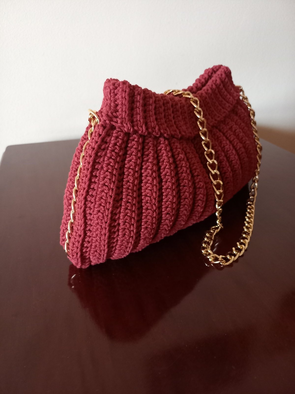 شنطة كروشية نبيتي بيد سلسلة ذهبي ارتفاع ١٩ سم عرض ٣٠ سم بالبطانة