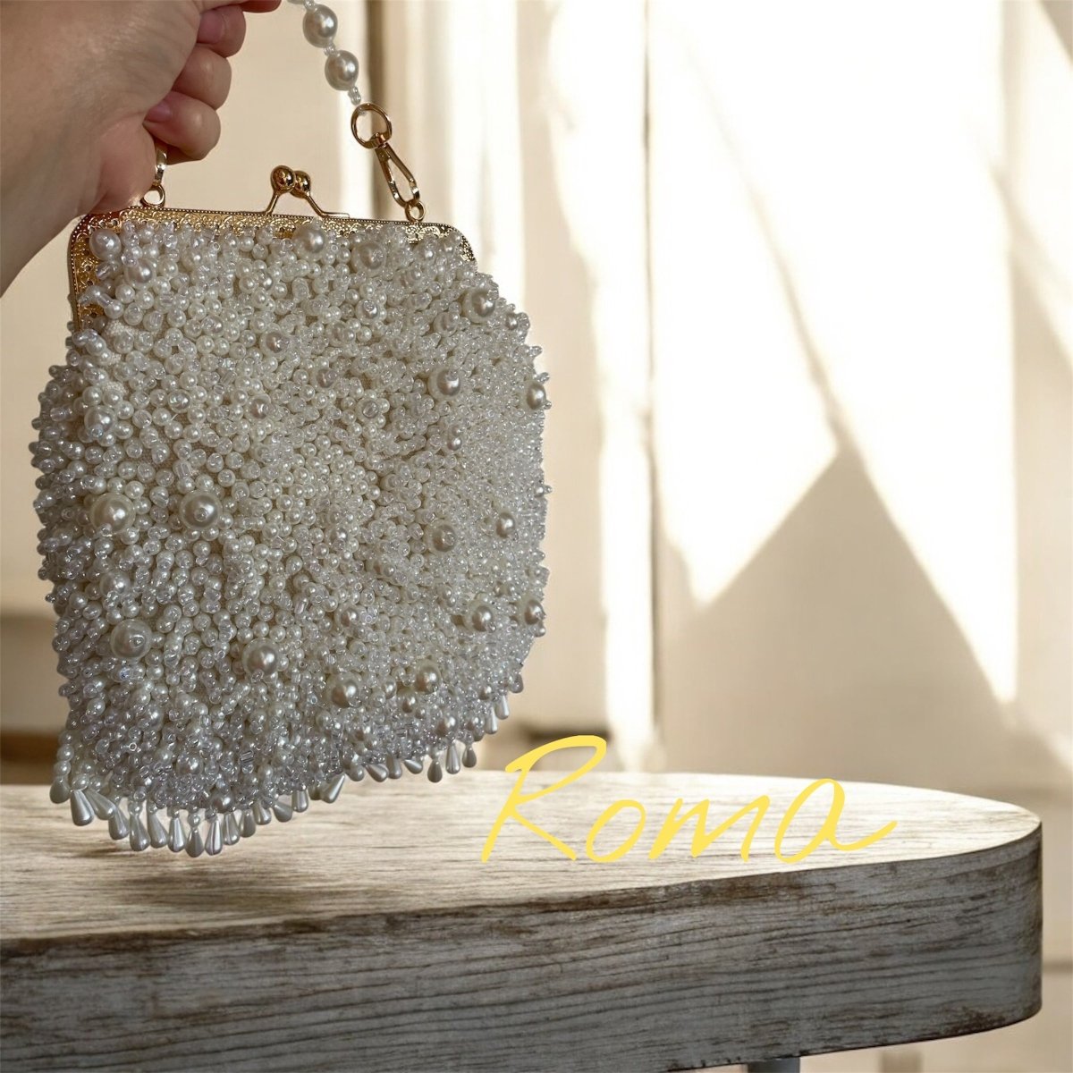 حقيبه سواريه صنعت يدويا من قماش الدك الكتان بداعم بوري لها بطانه من الستان المستورد مزينه بحبات اللؤلؤ ccb مختلف الأحجام مقاس الفريم ١٦ واسعه جدااا وعمليه تشيل فون وأكثر لها دراع من السلسله المعدن