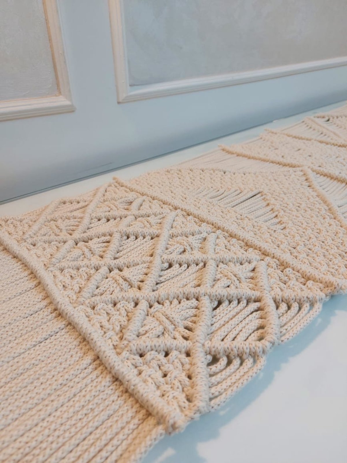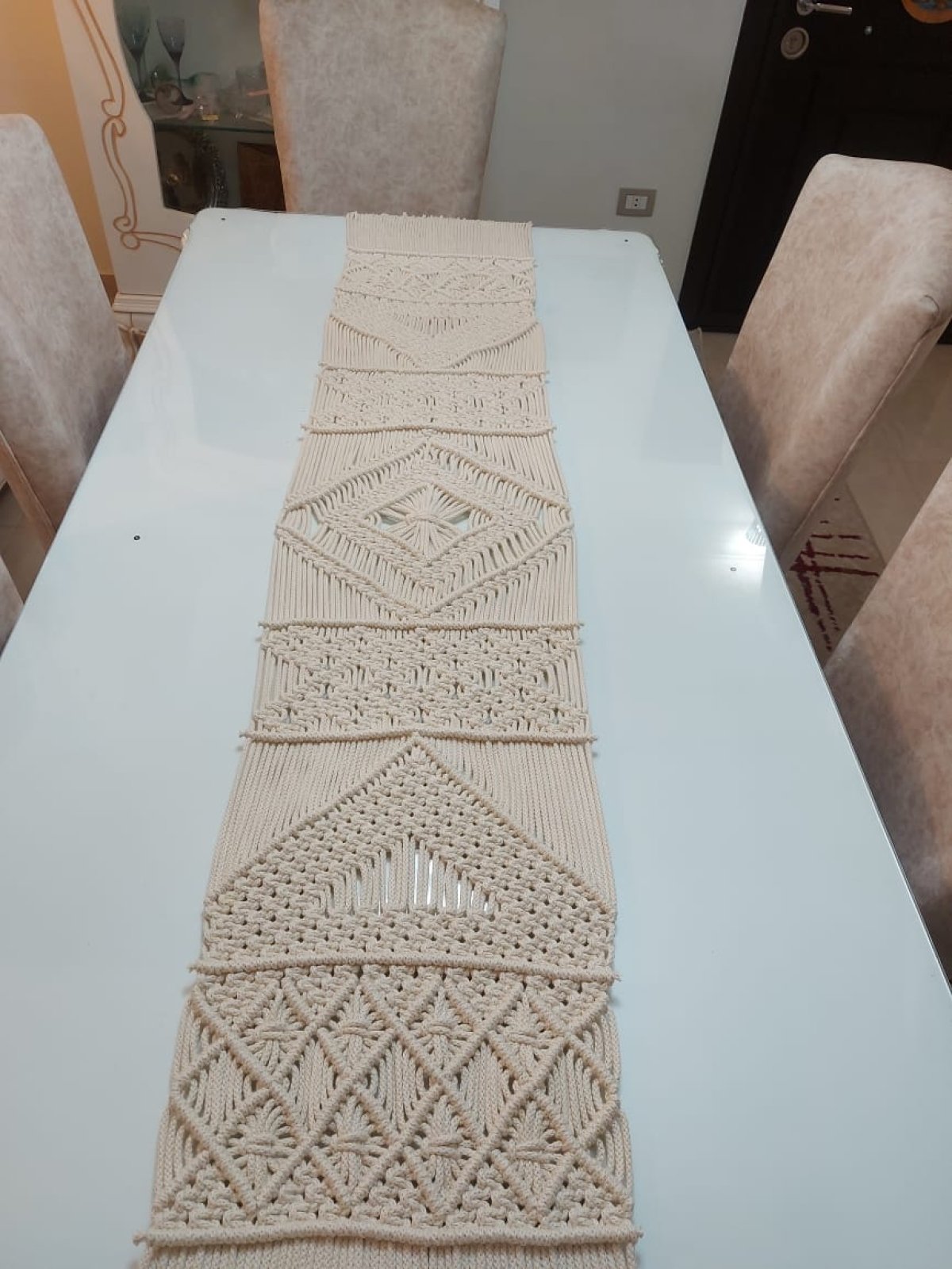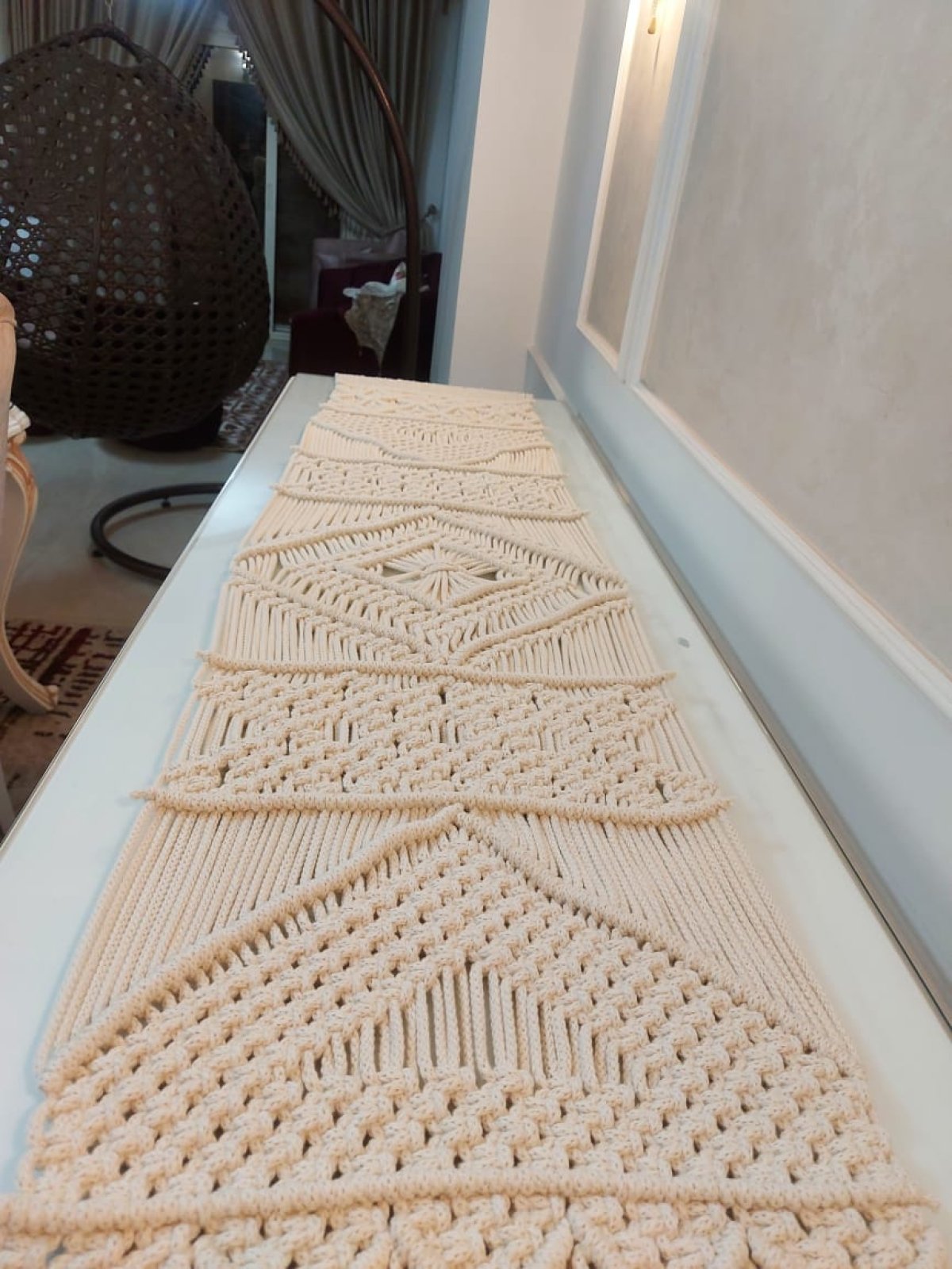 رانر سفره بعقد متنوعه من شغل المكرمية قطعه مميزه تضاف لديكور سفرتك