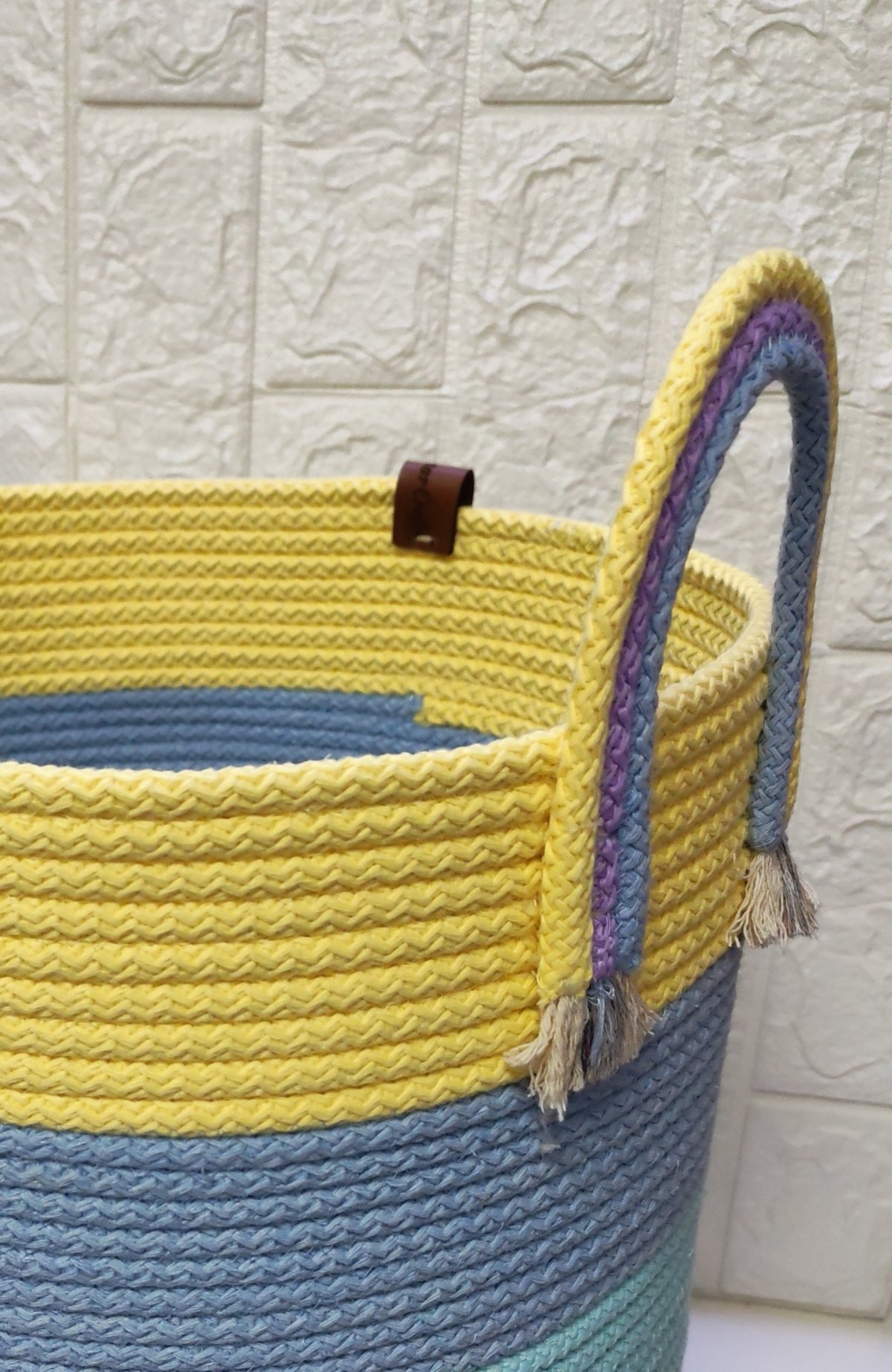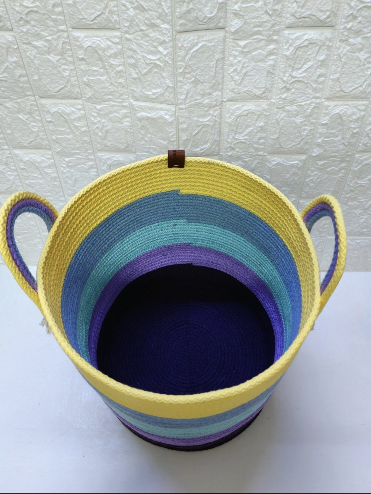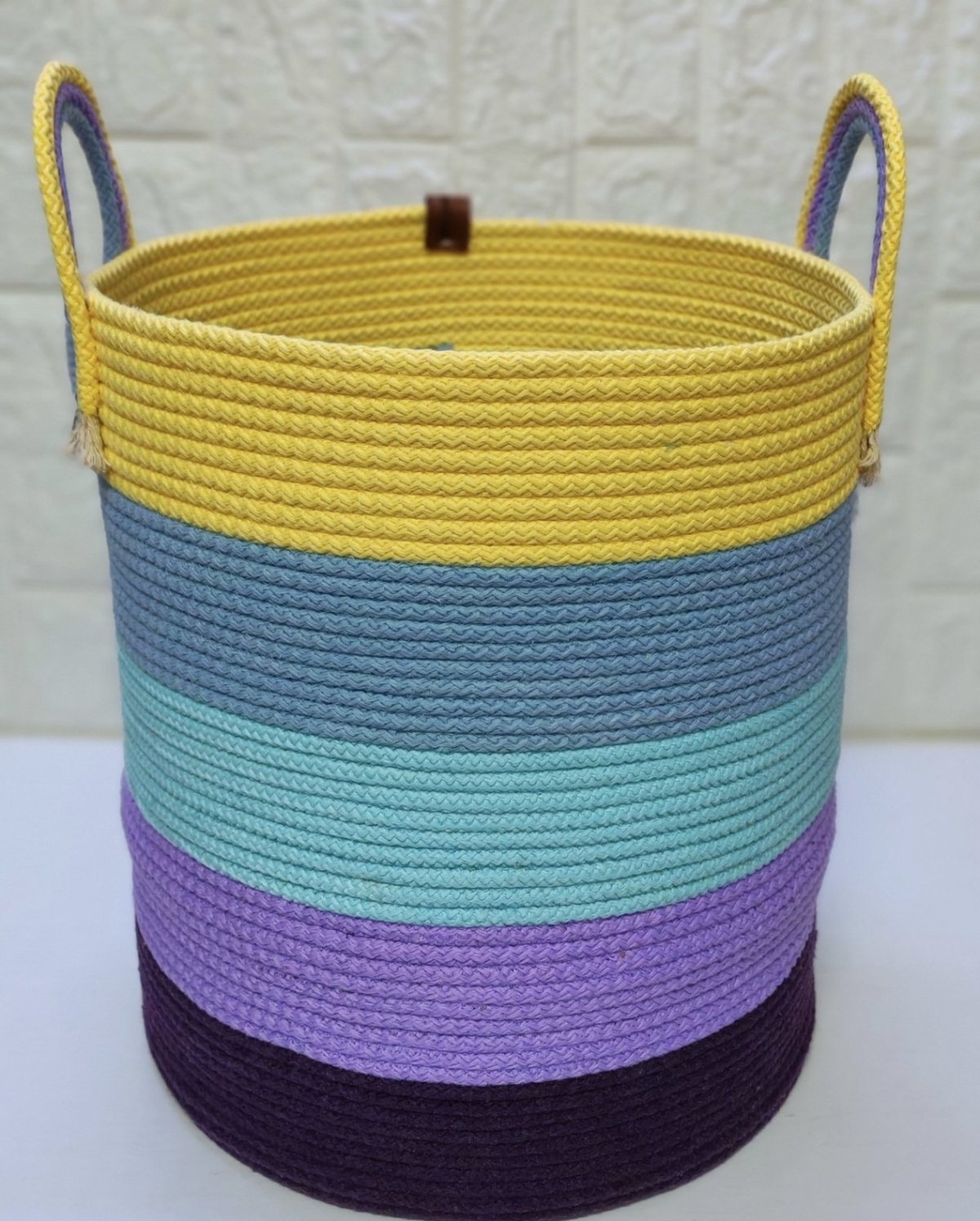 باسكت متعدد الاستخدام للتنظيم والتخزين بشكل ديكورى شيك مصنوع من خيوط الكوردون الزجزاج حجم كبير يستخدم للملابس، للعب الاطفال، بوت زرع، يسمح بجميع الاستخدامات حسب الحاجه المقاس القطر ٣٠ سم الارتفاع ٣٨ سم يمكن تغيير المقاس والالوان حسب الطلب