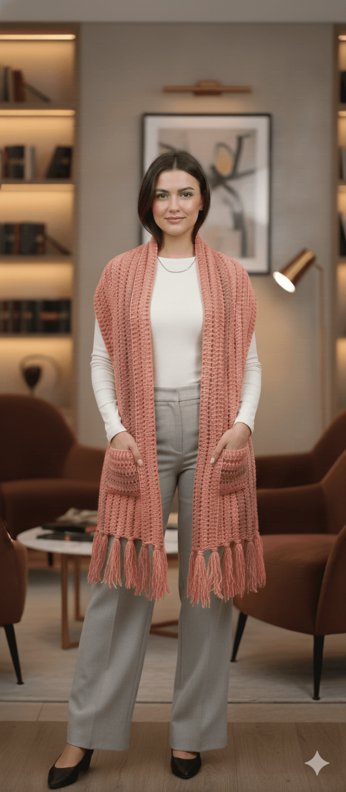 شال شتوي مصنوع من الصوف معالج ضد الوبرة به جيوب
