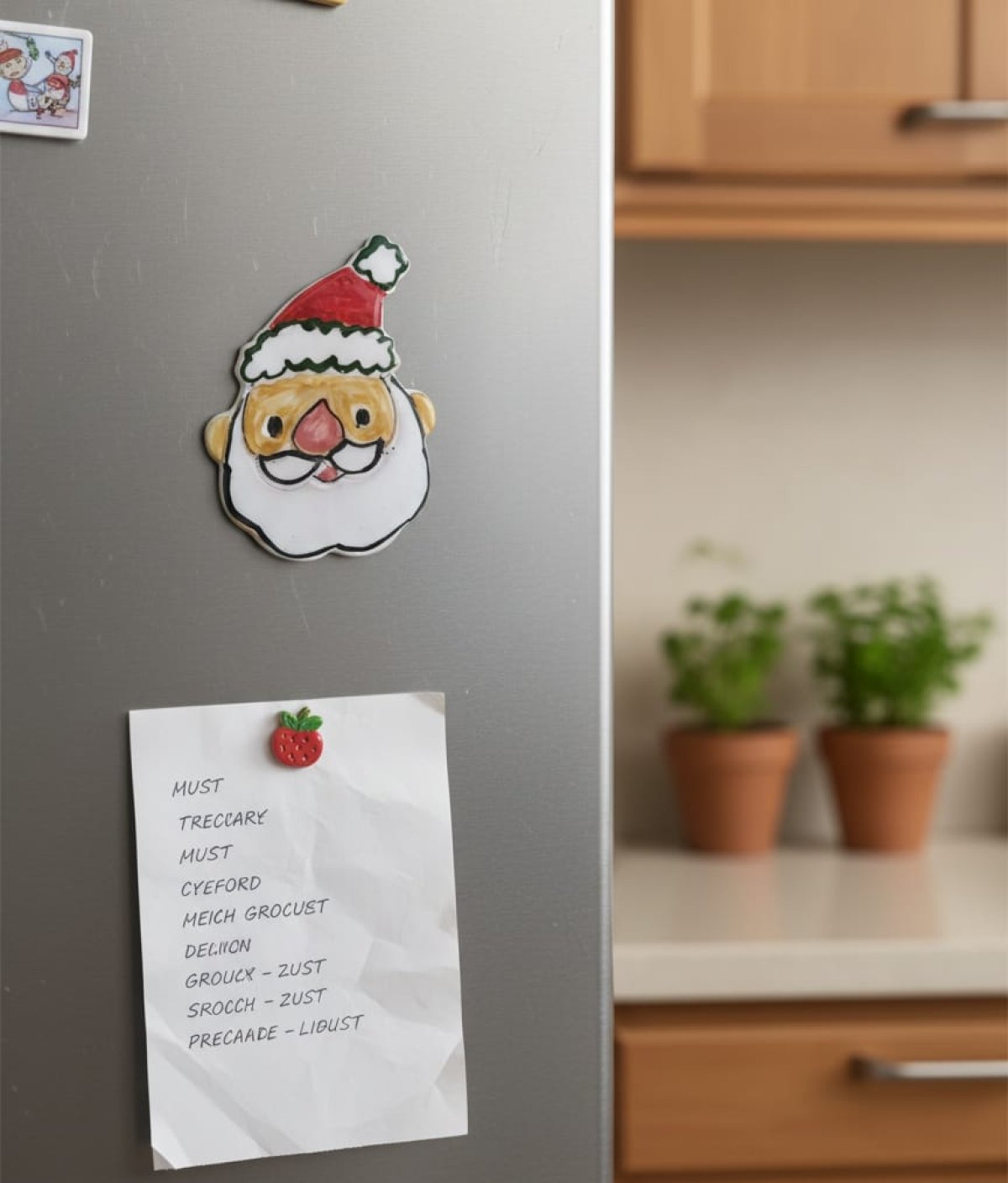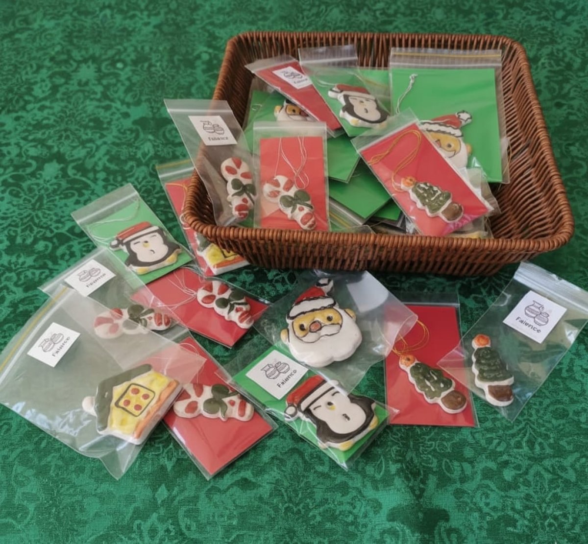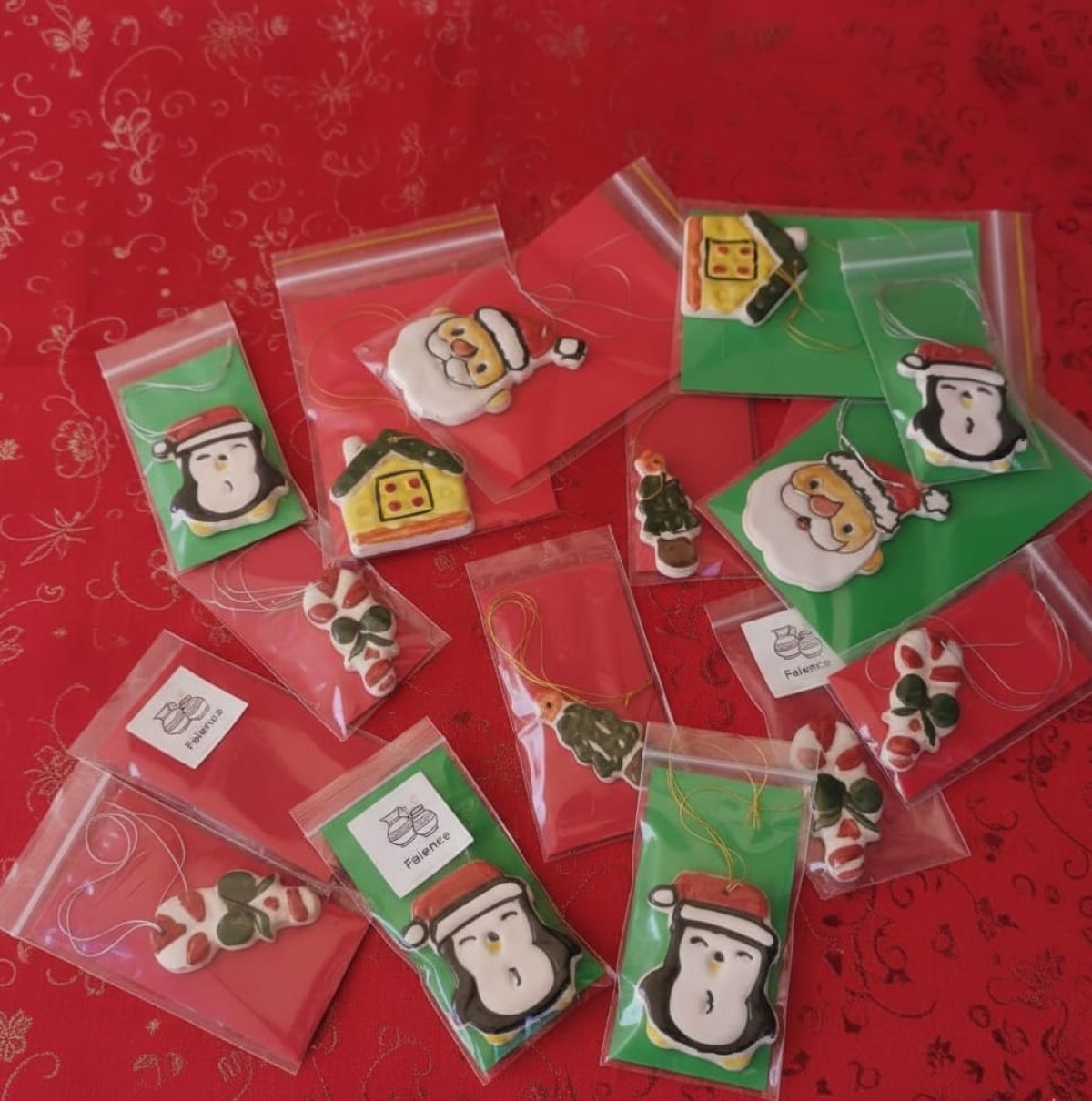 (أشكال ألعاب الكريسماس ، متوفر منها مغناطيس للثلاجة ومعلقات لشجرة عيد الميلاد ، مصنوعة من الخزف الهاند ميد والملون يدويا، متوفرة بخمس أشكال (بابا نويل، شجرة الكريسماس، البطريق، البيت، العصا