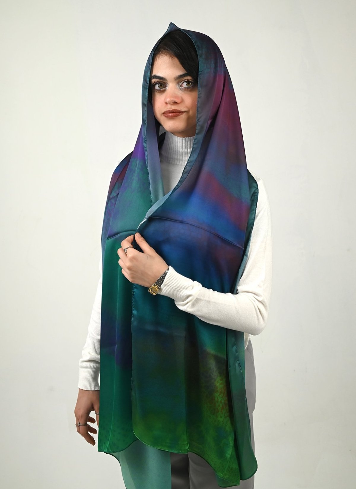 This artistic scarf features a refined snake skin pattern, blending natural allure with contemporary elegance. Designed as a statement accessory, it adds depth, texture, and confidence to any outfit—day or night. Available in silk, chiffon, and satin, each fabric offers a distinct experience: Silk: smooth, luxurious, and timeless Chiffon: lightweight, airy, and fluid Satin: soft sheen with graceful structure A bold yet sophisticated piece for those who see fashion as wearable art. Size: 200 x 75 cm