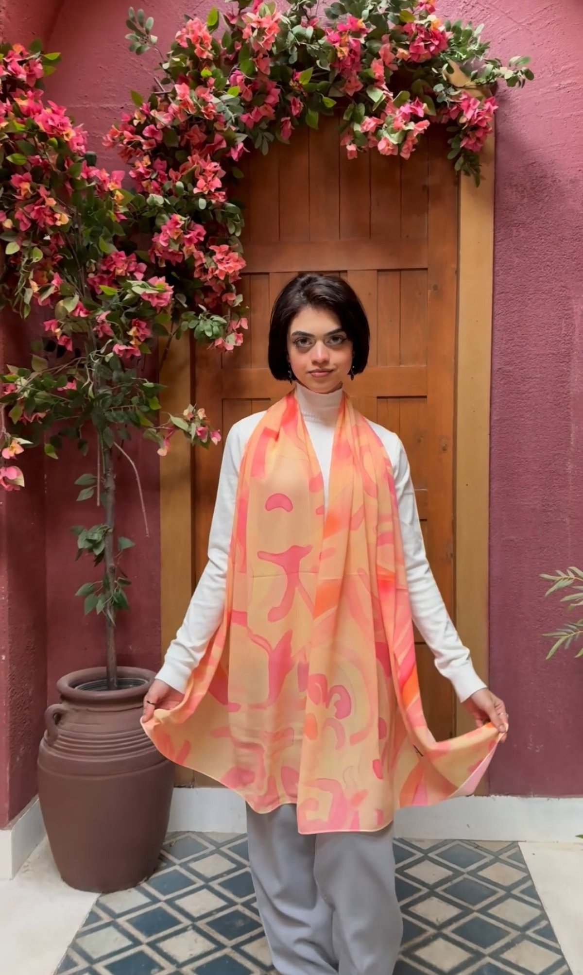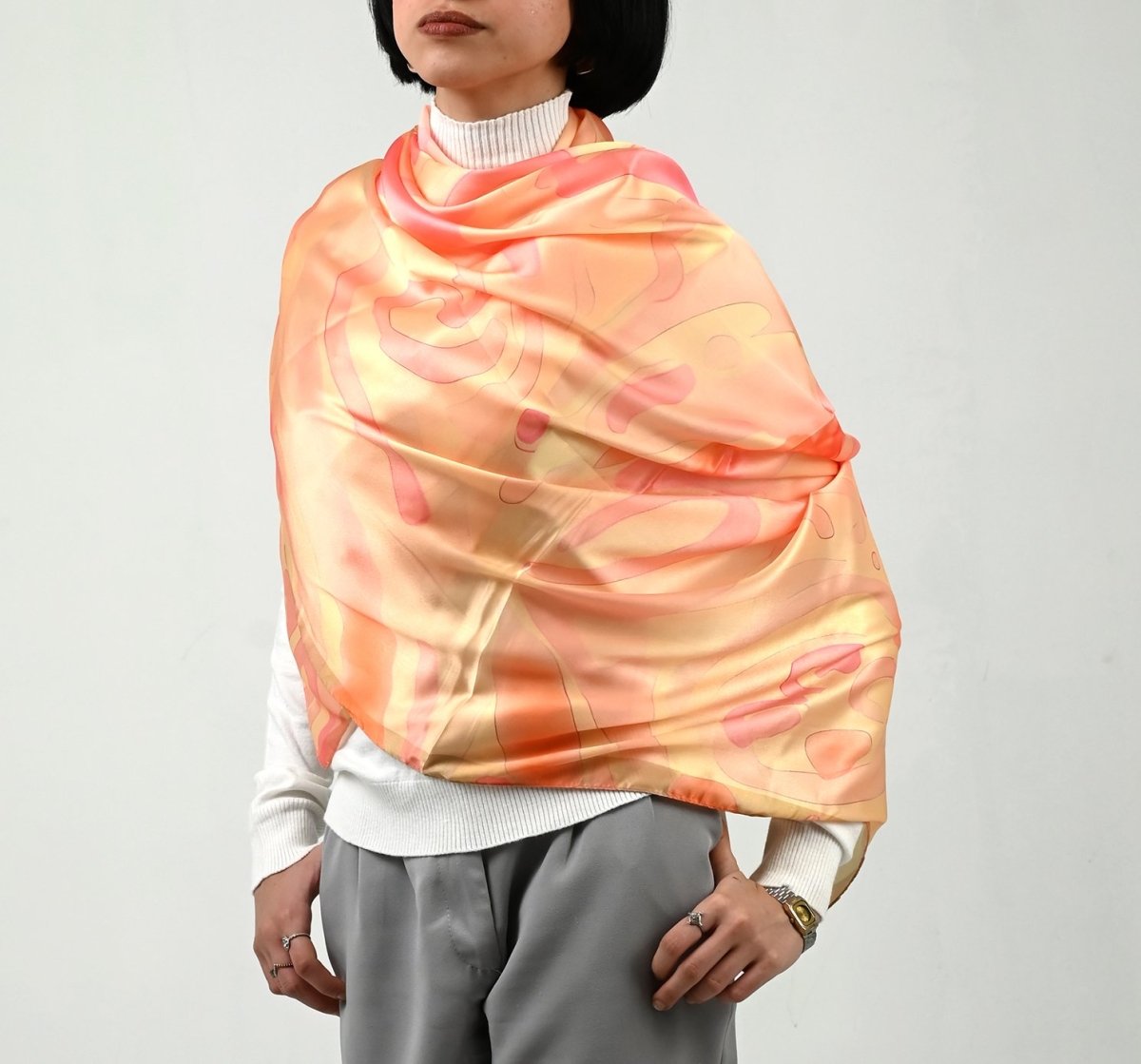 Delicate and timeless, this artistic scarf features soft watercolor roses painted in gentle, flowing hues. The design captures the romance of hand-painted art, creating an effortlessly elegant piece that adds grace and refinement to any look. Available in silk, chiffon, and satin, each fabric enhances the watercolor effect in a unique way: Silk offers a smooth, luxurious drape that deepens the richness of the colors Chiffon provides a light, airy feel, allowing the roses to appear soft and ethereal Satin adds a subtle sheen that brings a refined, polished finish Designed for those who appreciate understated beauty and artistic detail, this scarf is a wearable expression of softness, elegance, and modern femininity. Size: 200 x 75 cm