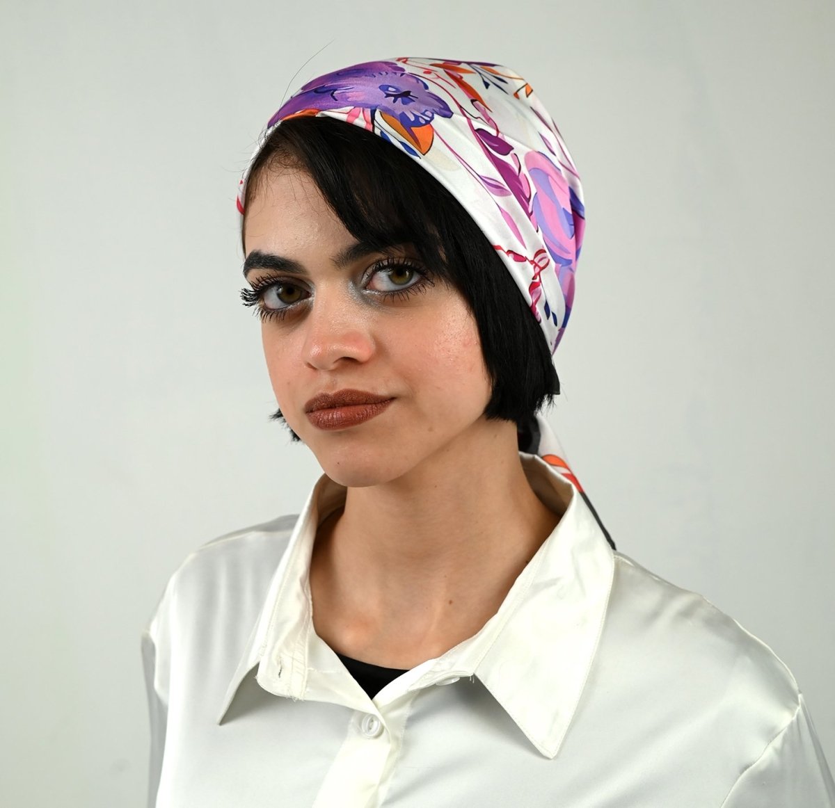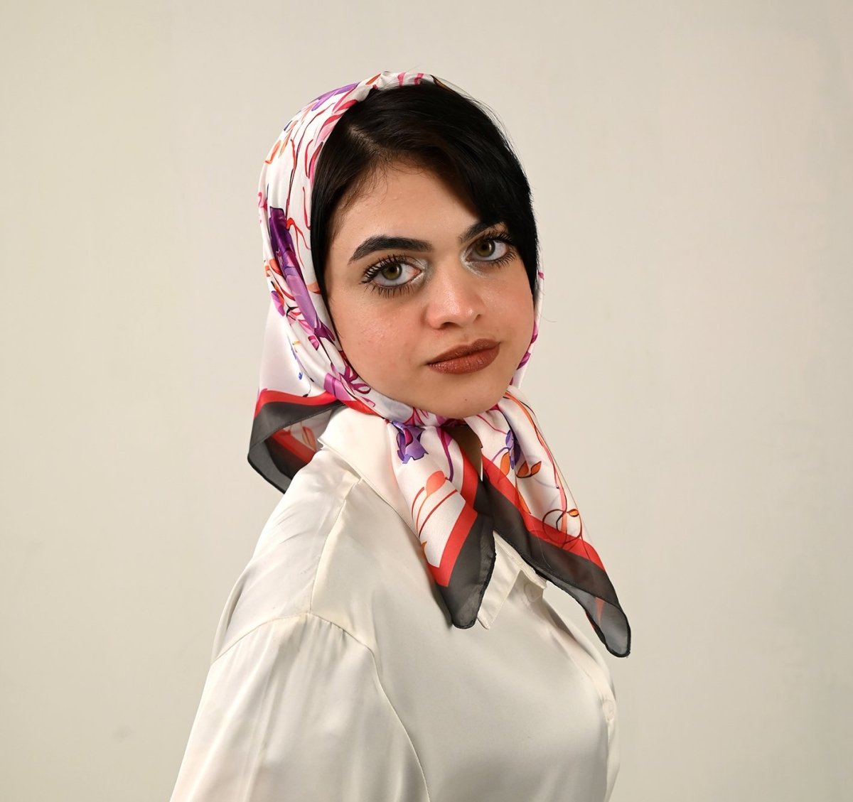 Fresh, cheerful, and effortlessly stylish, this artistic square scarf features a vibrant yet simple floral drawing, turning minimalist charm into a bold statement. Its lively design brings color, energy, and joy to any outfit. Measuring 75 × 75 cm, the square shape allows versatile styling—whether wrapped around the neck, tied on the wrist, or accenting a bag. Available in silk and satin, each fabric enhances the design beautifully: Silk offers a smooth, flowing drape with rich, vivid colors and natural elegance Satin provides a soft sheen and structured finish for a polished, luxurious look Perfect for those who love expressive yet refined accessories, this scarf transforms everyday style into a wearable piece of art.