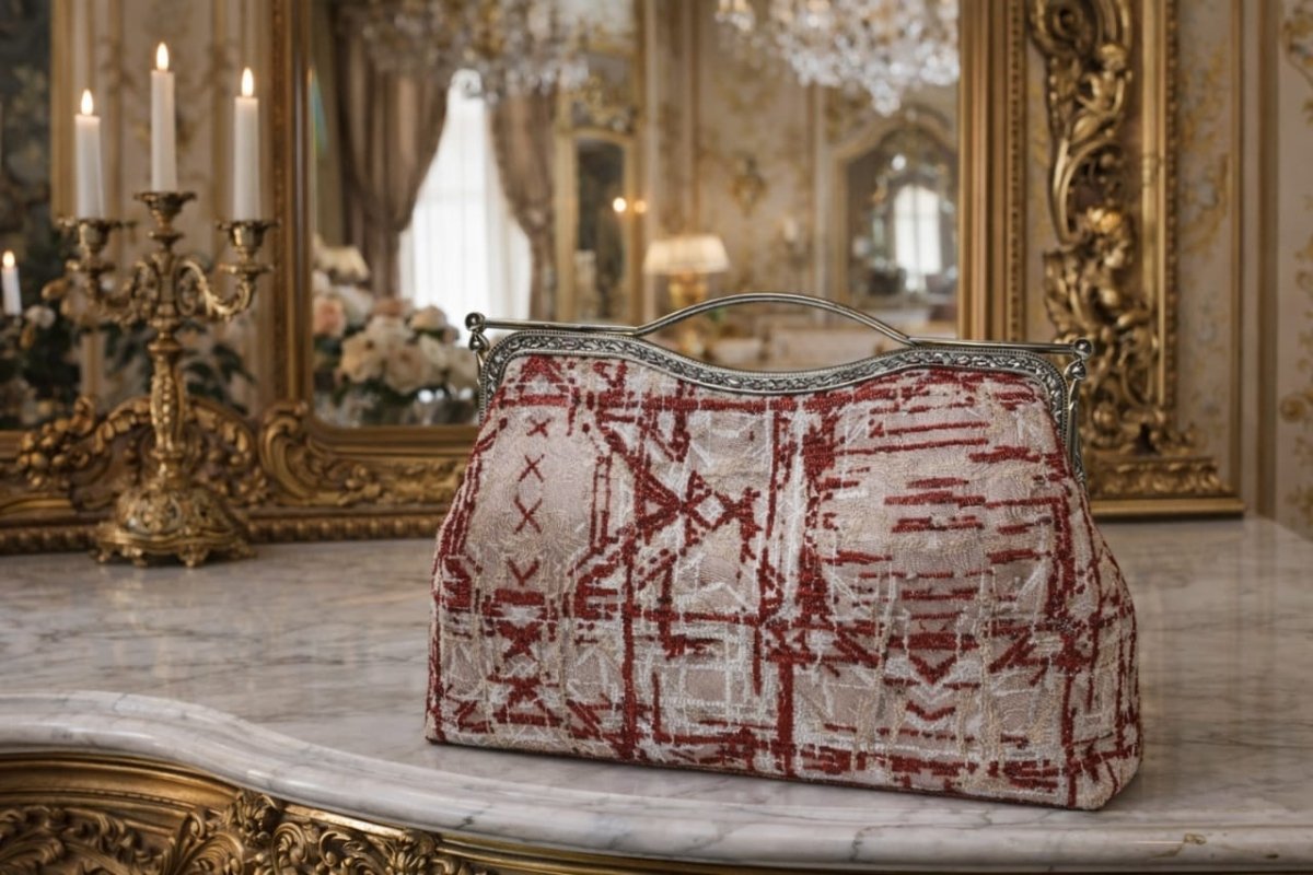 حقيبة أنيقة من المخمل والكتان بمقبض معدني المقاس: ٨ × ٣٠ × ٢١ سم