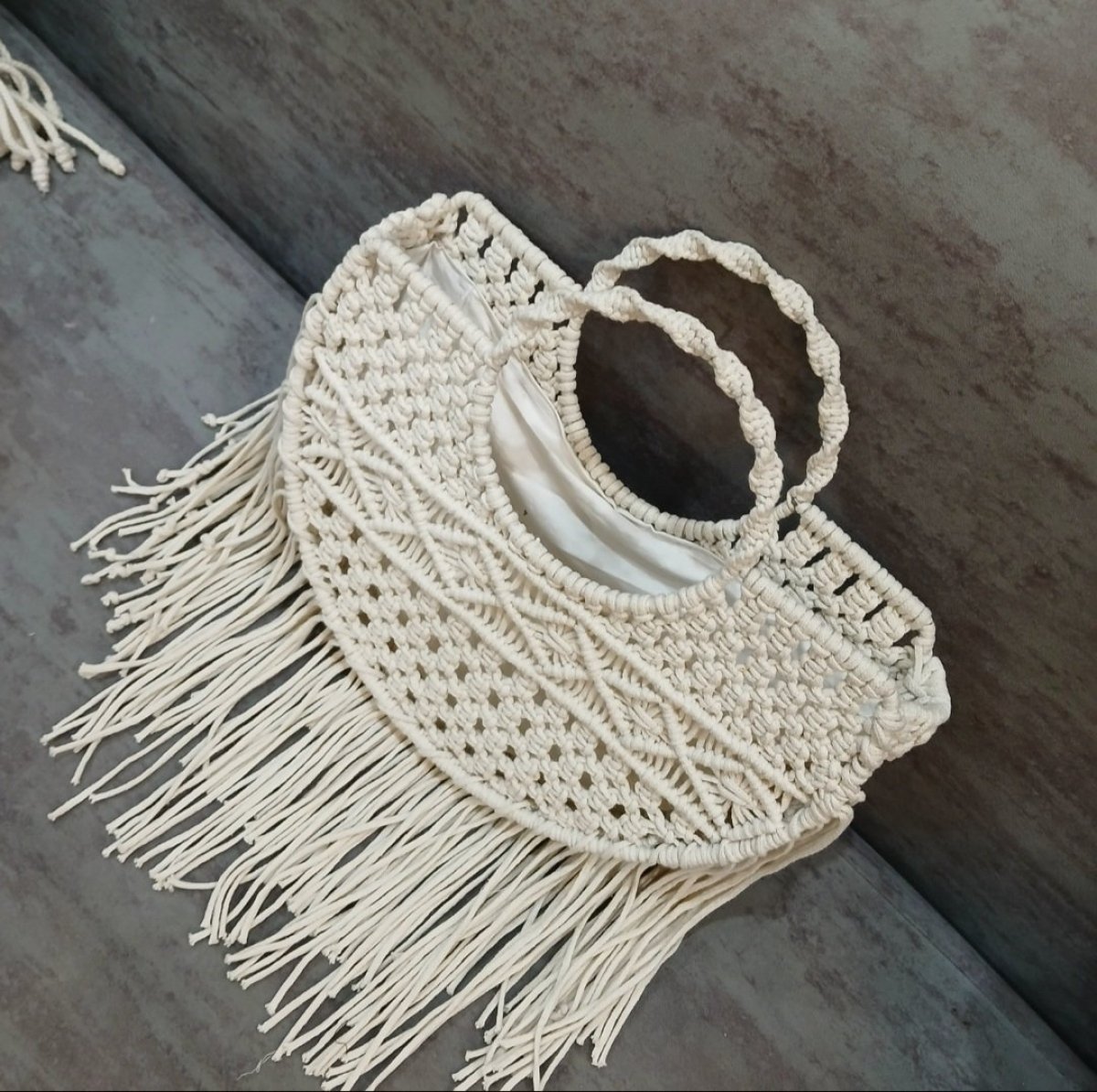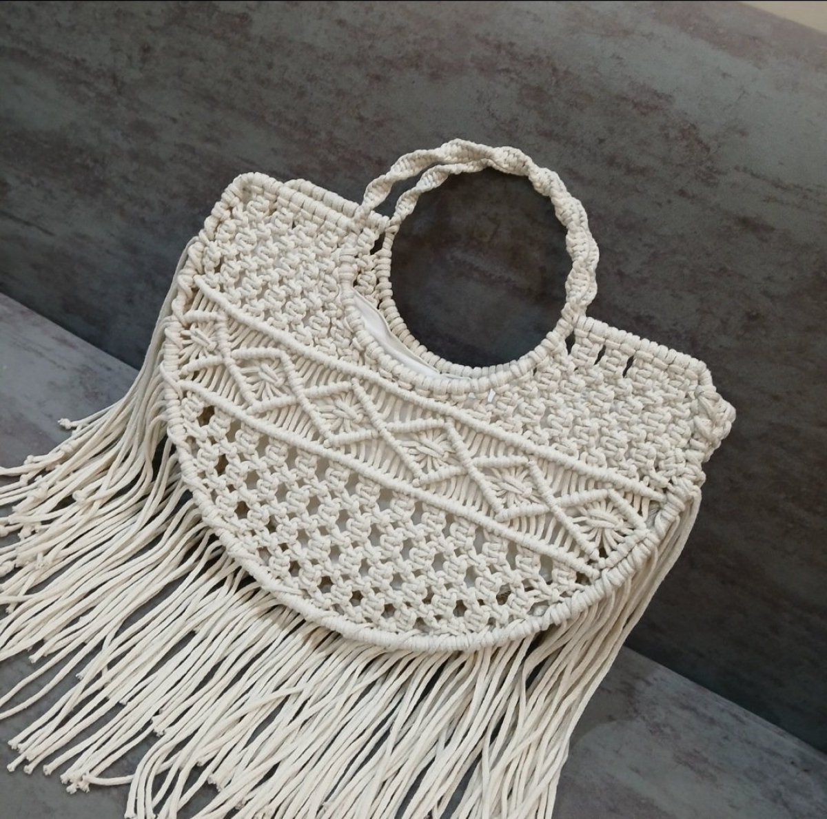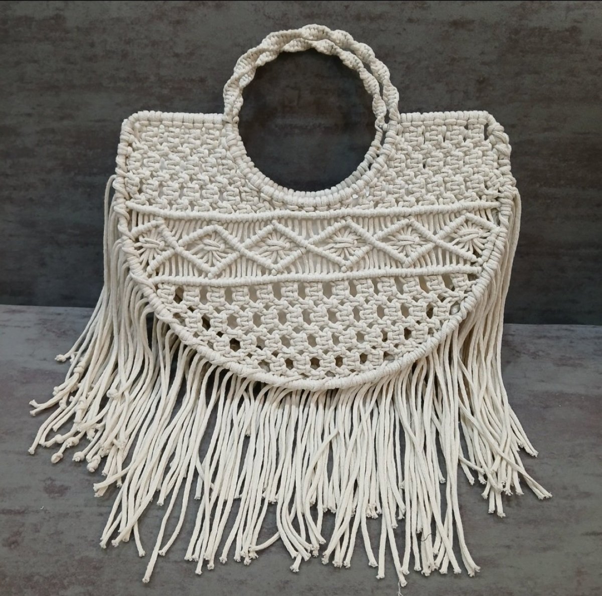 شنطه مكرميه مع شاسيه معدن و بطانه قطن ، بأجود انواع الخيط